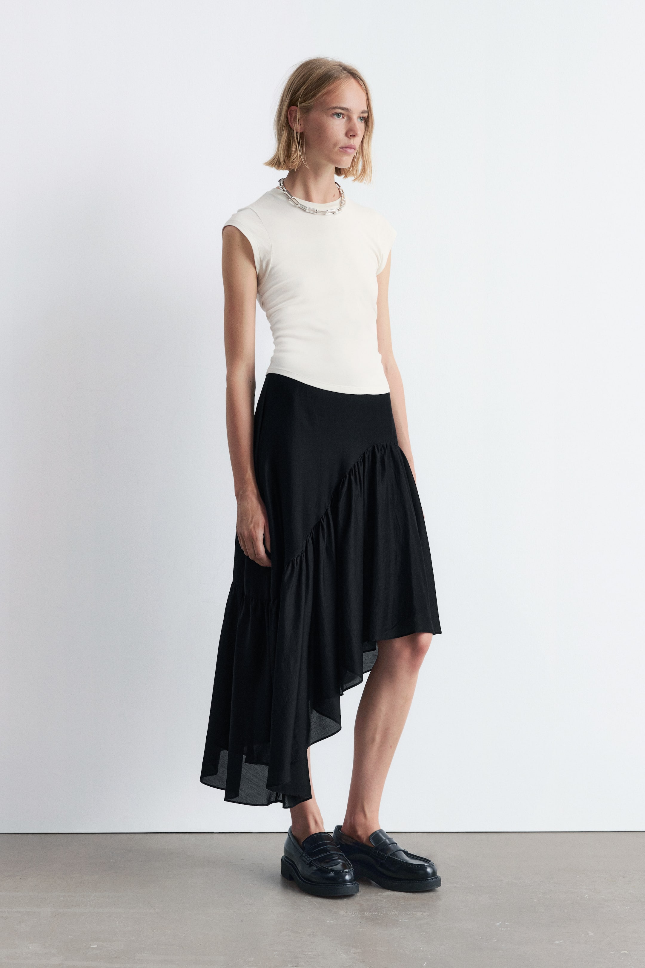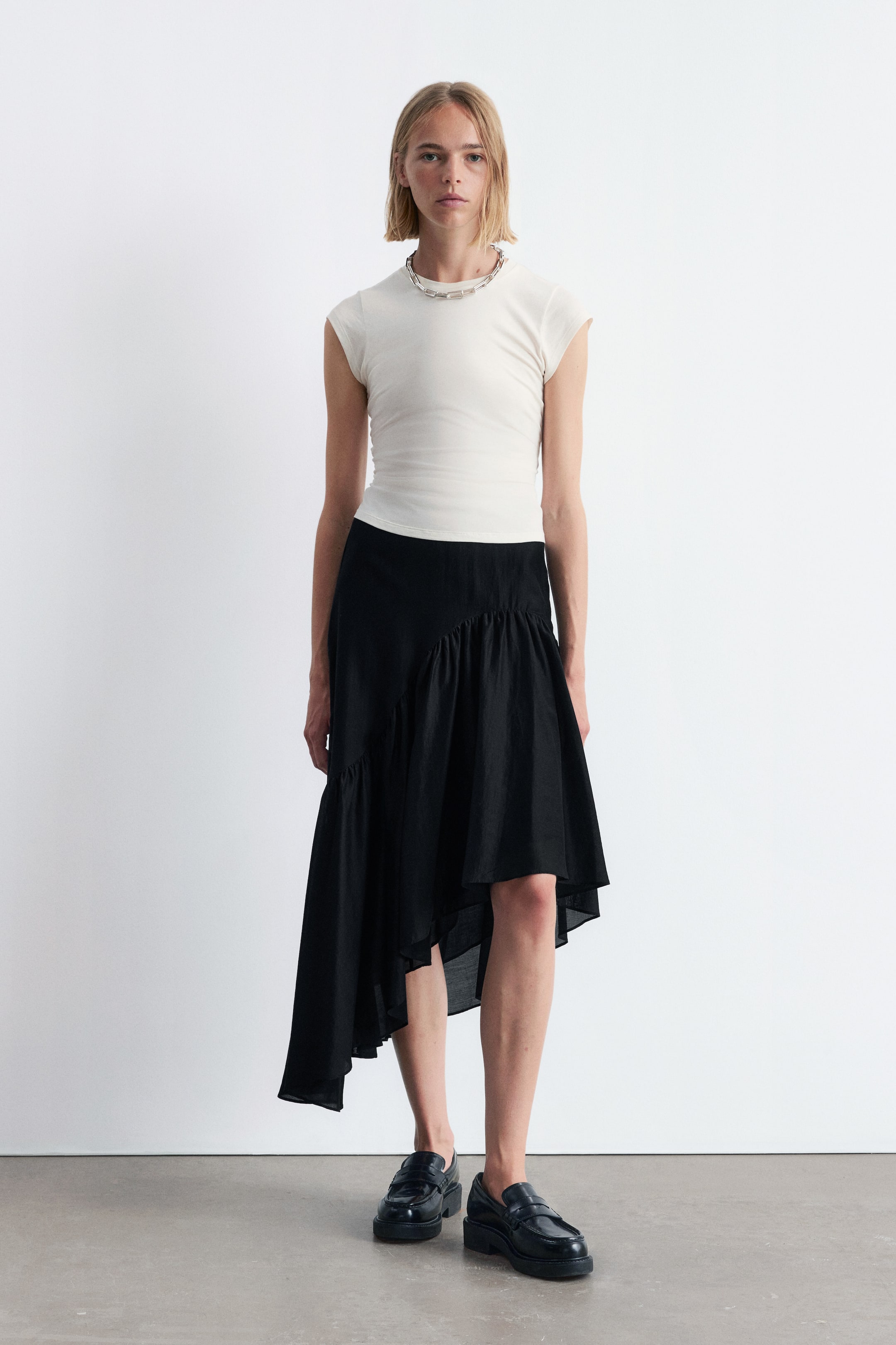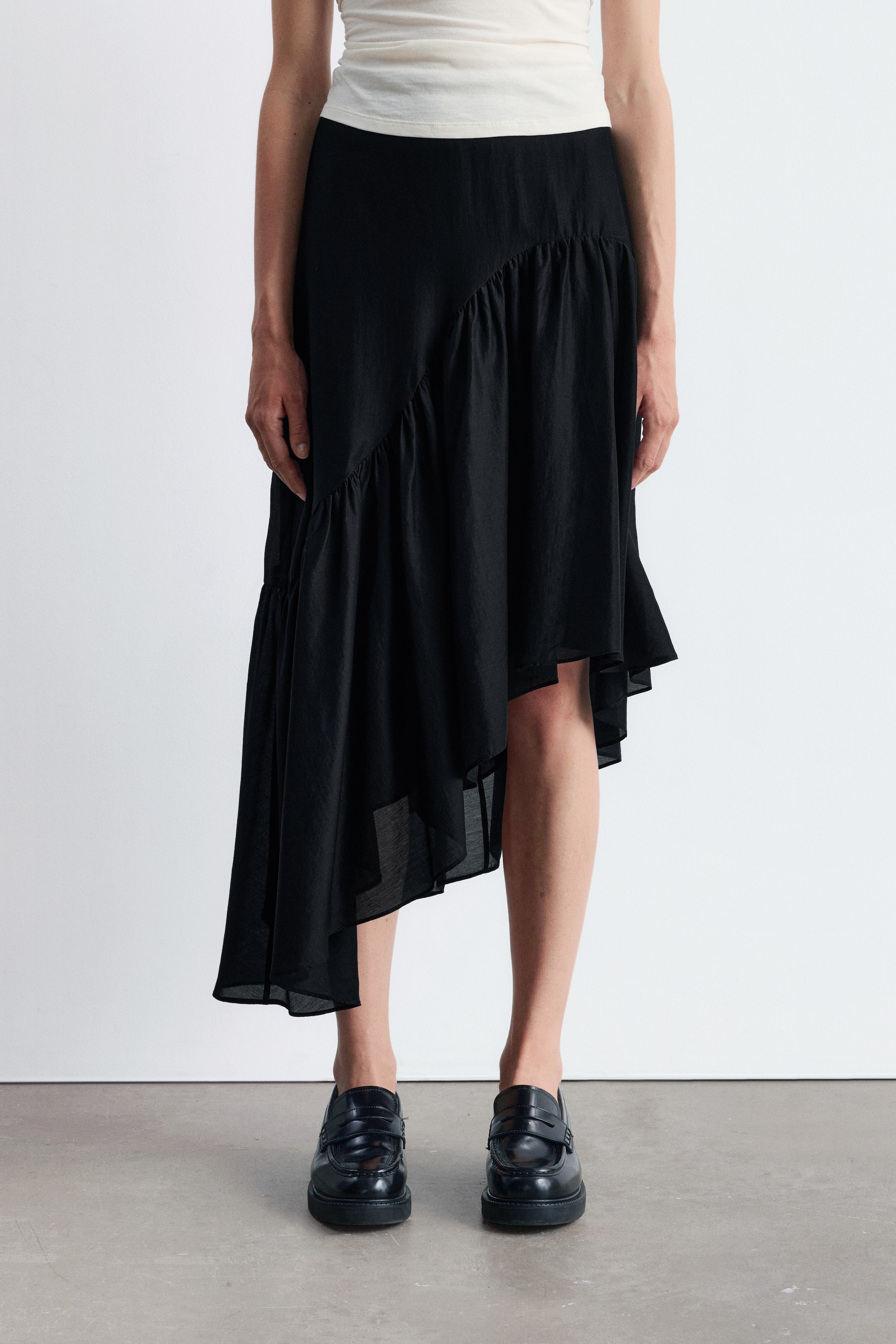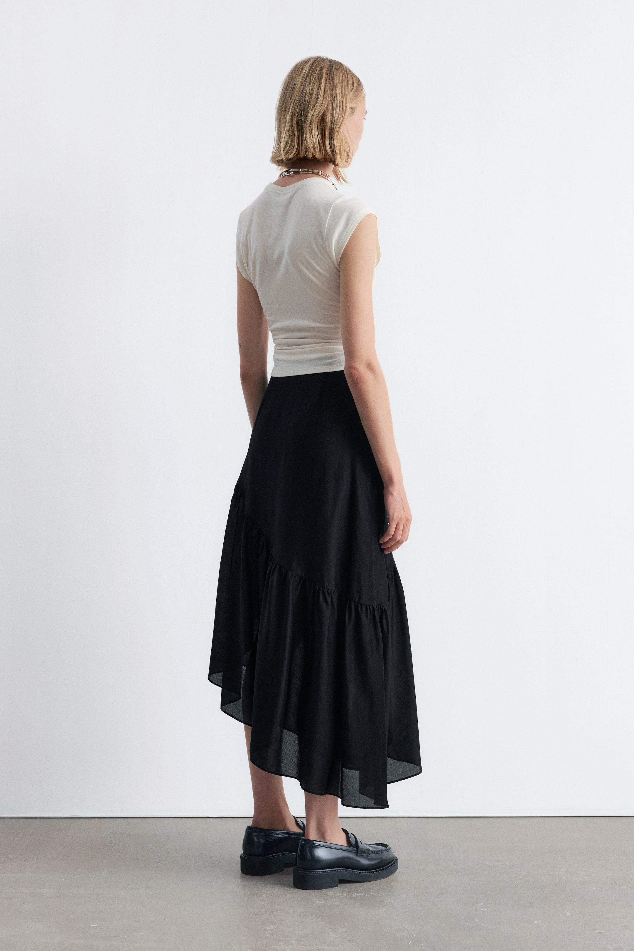 Нека тази пола бъде акцентът в гардероба ти. С асиметрична кройка и меки набрани волани, които се спускат като водопад, добавяйки плавност при всяка стъпка. Завършена с дискретен страничен цип. С пълна подплата Дължина на полата:84 см / 33" (EU 36 / UK 8 / US 4)