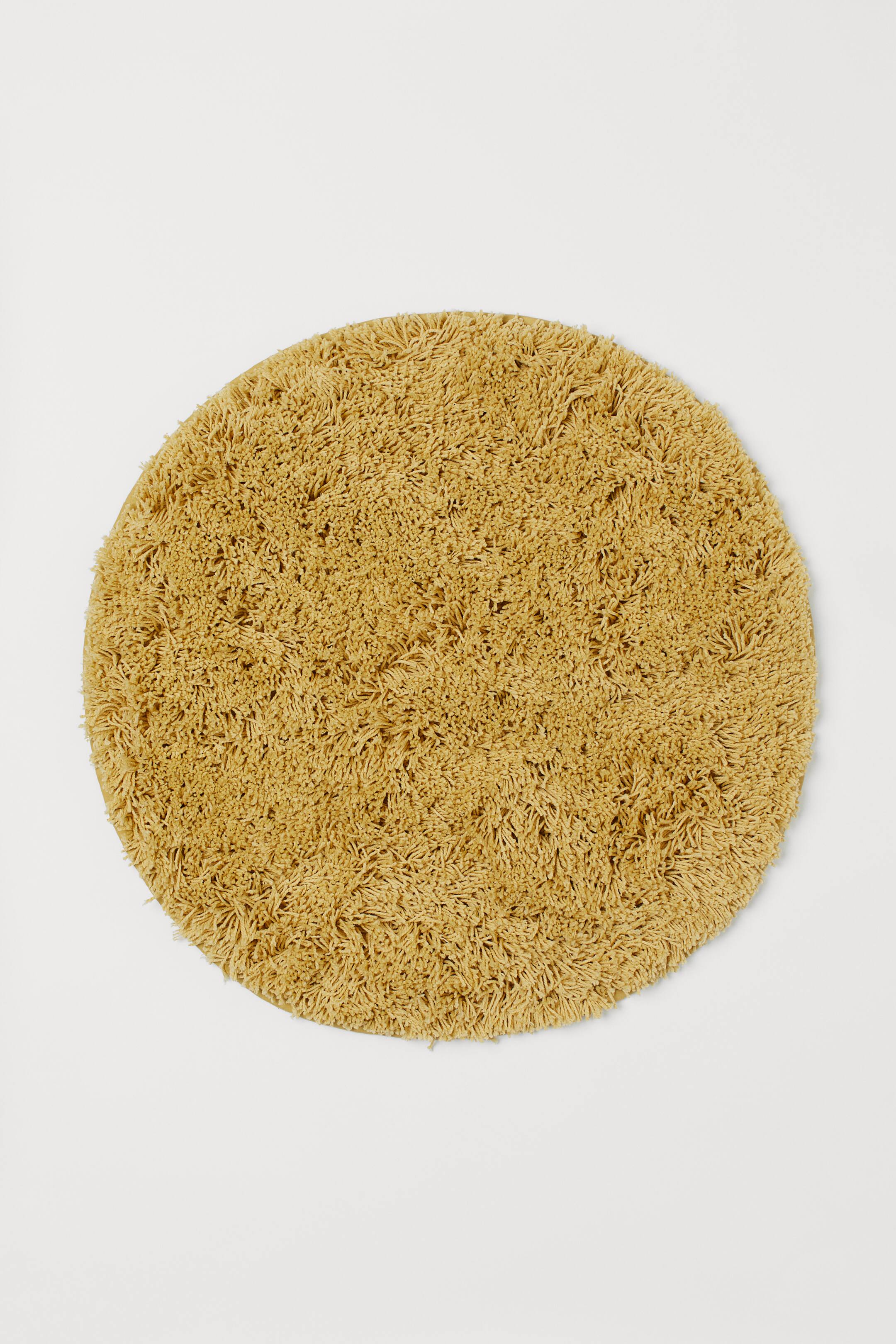Kulatá koupelnová předložka z měkké bavlněné směsi s dlouhým vlasem a lemovkou.