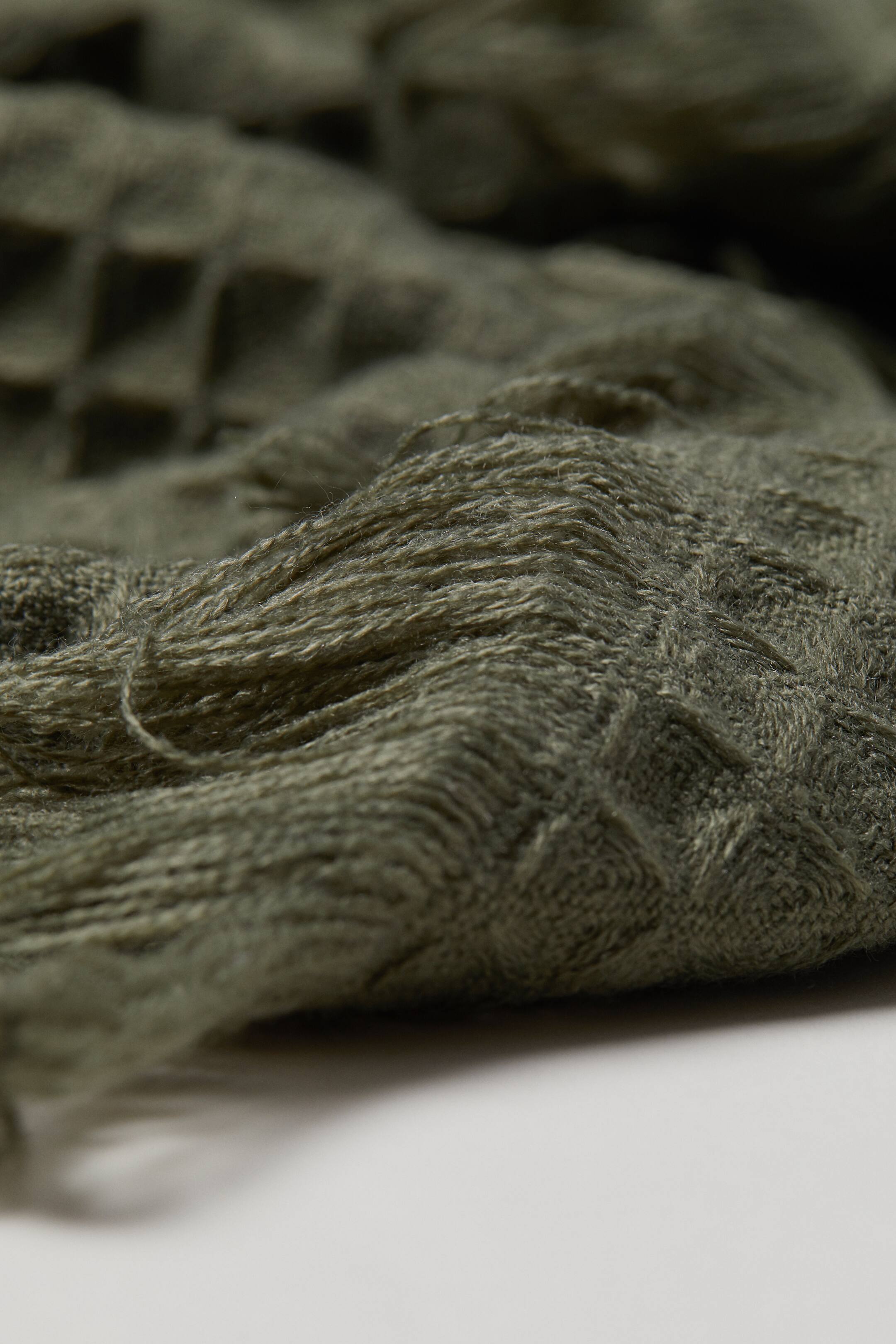 Pléd z měkké vaflové tkaniny. Na kratších stranách je lemovaný třásněmi.