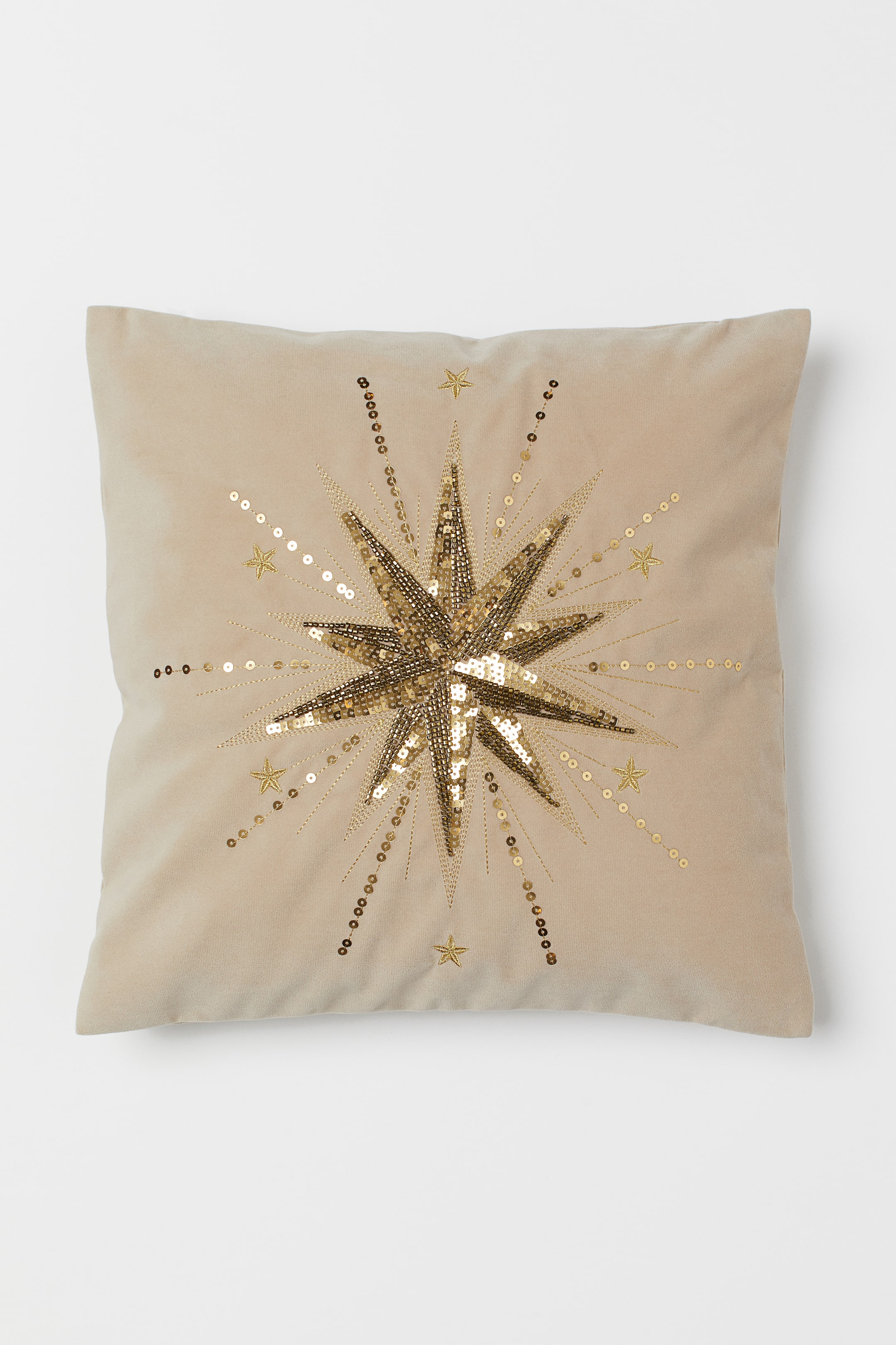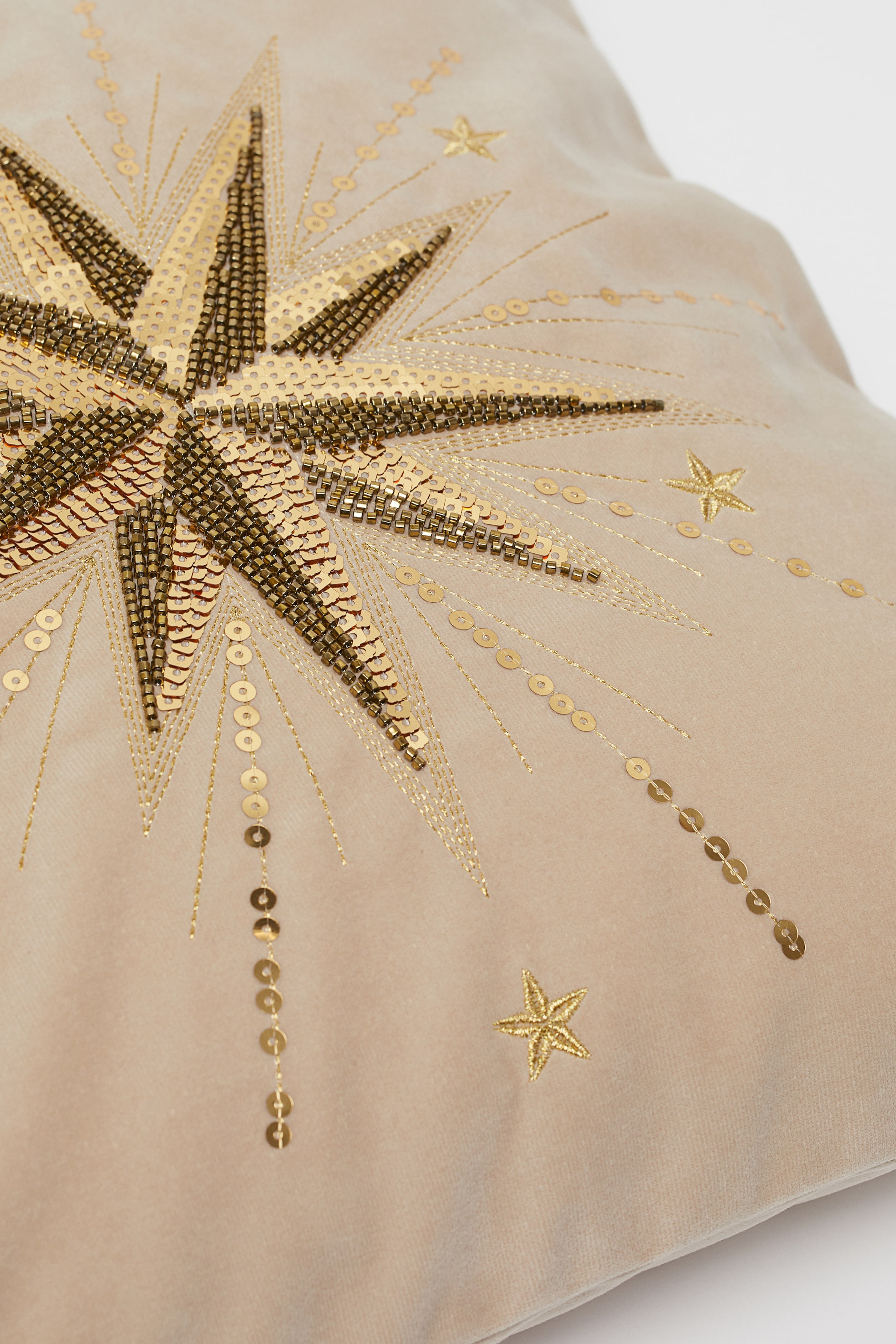 Sametový povlak na polštářek s vyšívaným flitrovým motivem. Skrytý boční zip.
