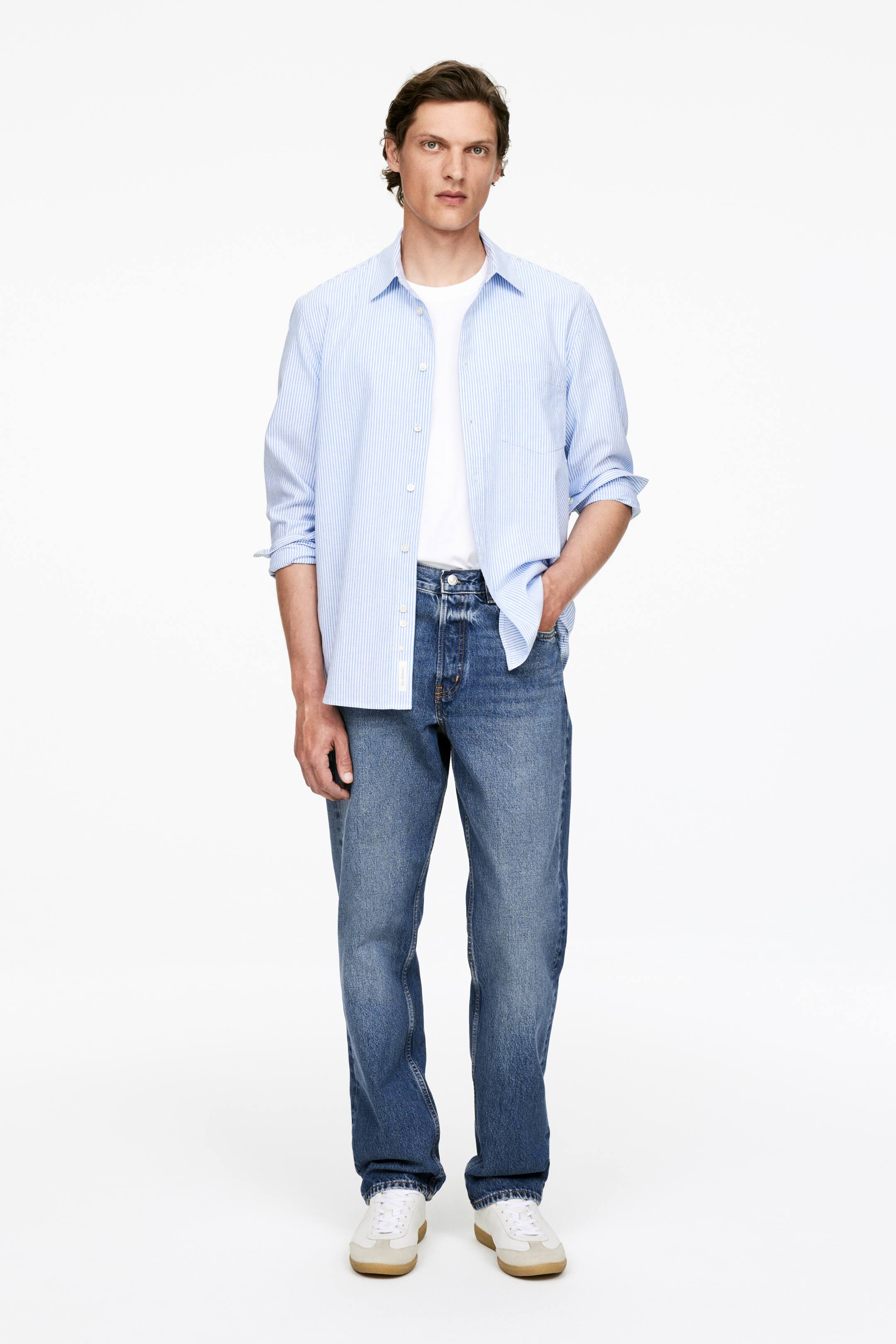 OCEAN má volný, pohodlný střih z nestrečového denimu s pasem střední výšky a rovnými, plnými nohavicemi. Zapínání na knoflíky.