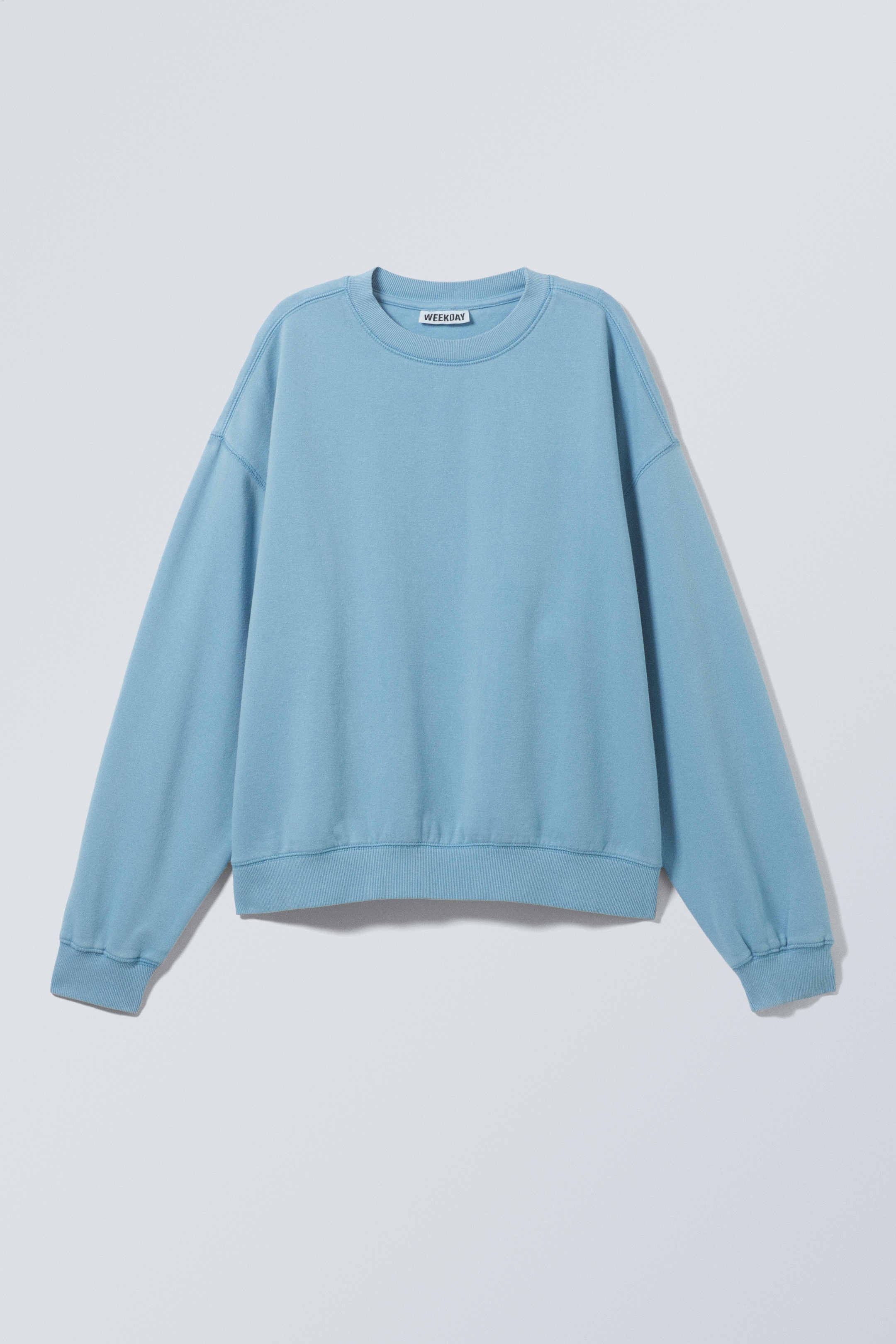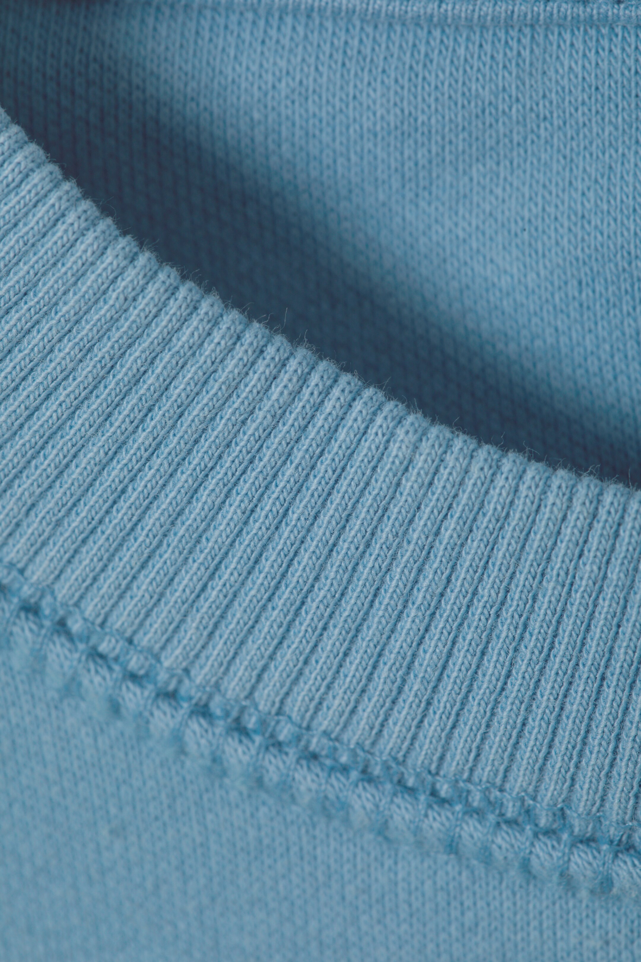 A classic sweatshirt with a relaxed fit made from a soft cotton fleece jersey enhanced with recycled polyester. This everyday layer has dropped shoulders, a crew neck with a reinforced half moon panel in the back, and gathered ribbed hems. The model wears size S that measures 125 cm in chest circumference, 61,5 cm in length, and 48 cm in sleeve length.