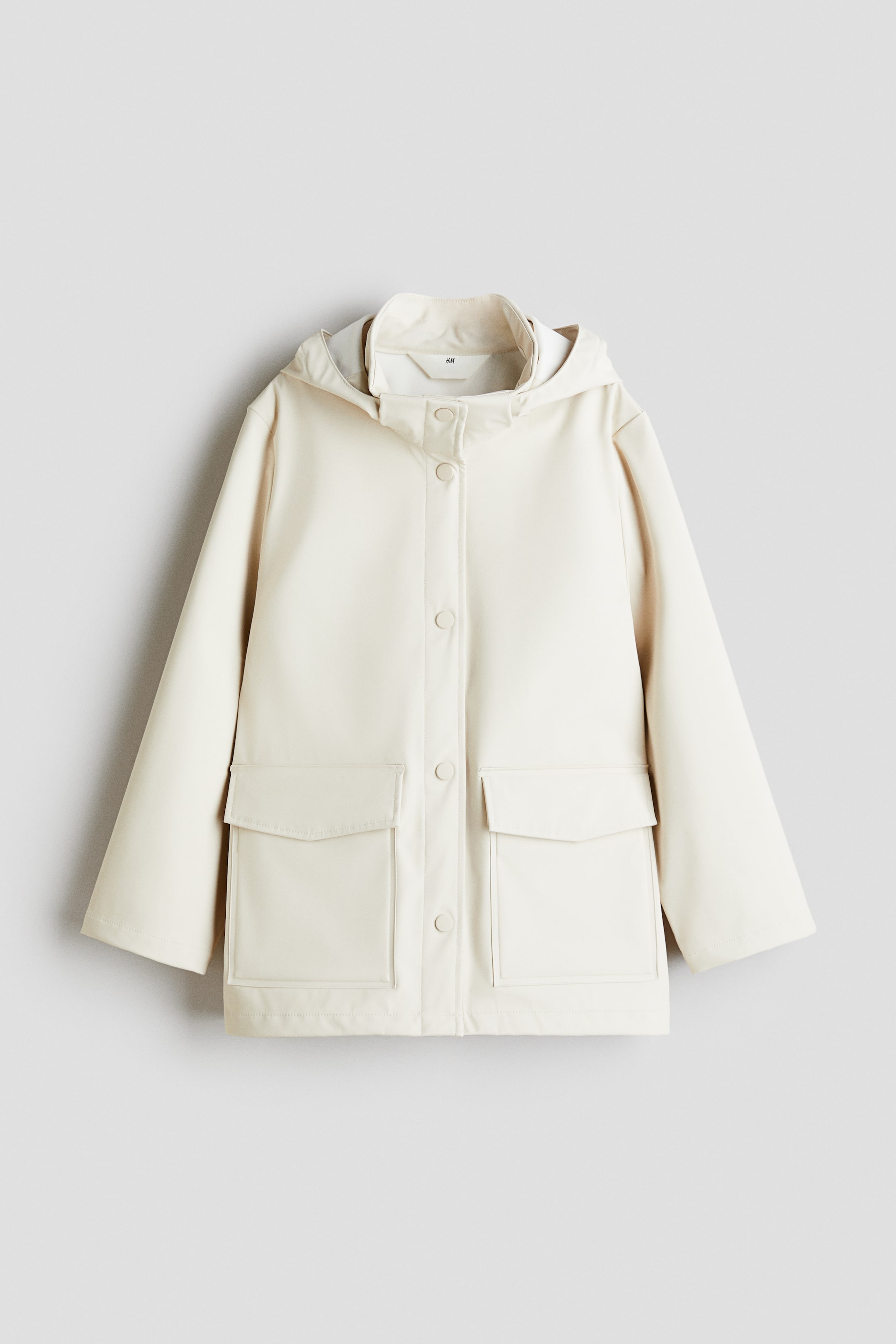 Pláštěnka z větruvzdorného a nepromokavého funkčního materiálu se zalepenými švy. Má odepínací kapuci, stojáček, přední zapínání na druky a patkové přední kapsy se skrytým drukem.