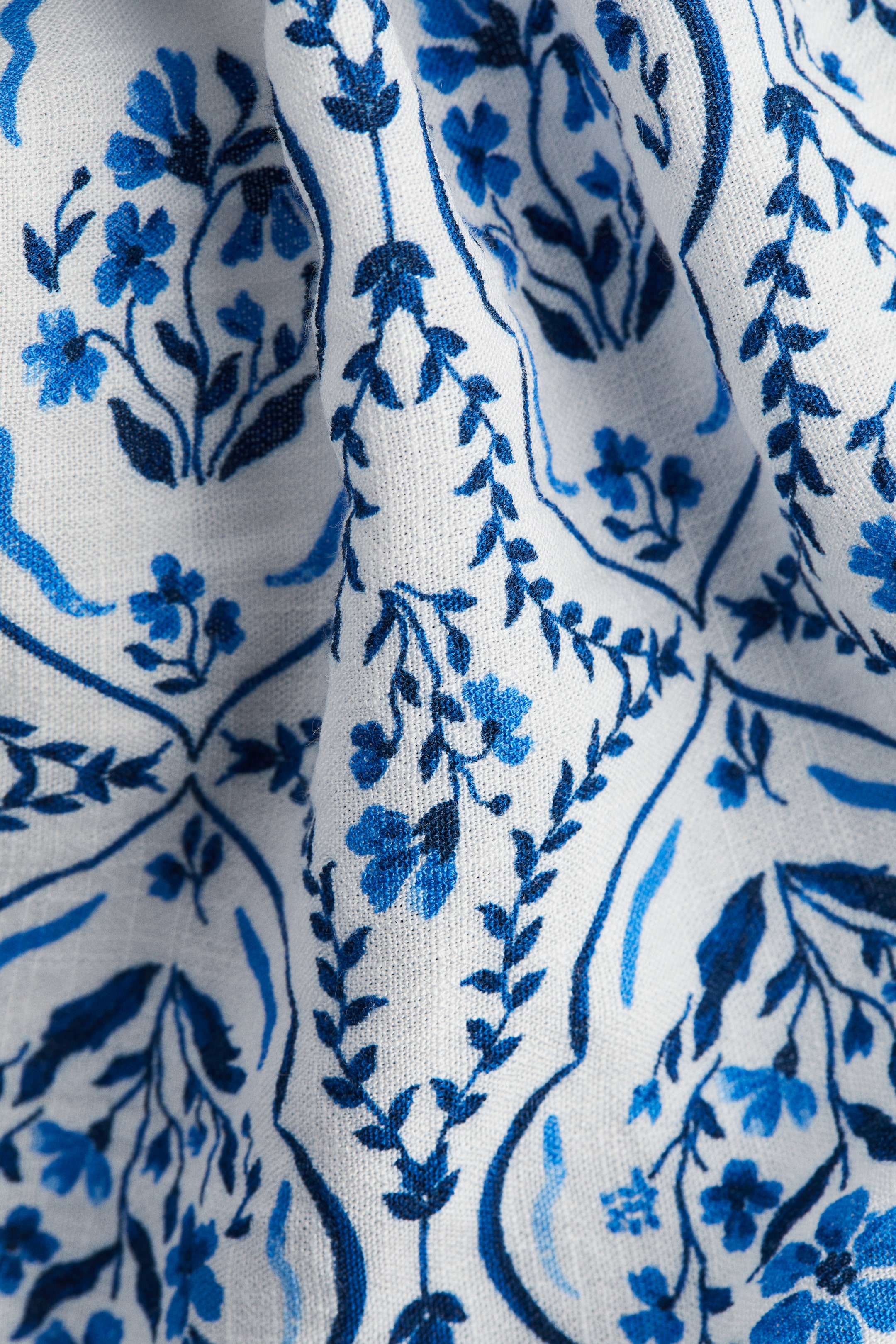 Šaty z tkaniny. Jsou dlouhé ke kotníkům. Střih bez rukávů. Mají kulatý výstřih a odhalují záda. Volánkové lemy vedou zepředu přes ramena dozadu. Skryté zipy podél předního dílu usnadňují kojení. Vzadu žabkování a skrytý zip. Sukně se směrem dolů rozšiřuje a je sešitá z širokých nabíraných volánů, které jí dodávají objem. Bez podšívky.