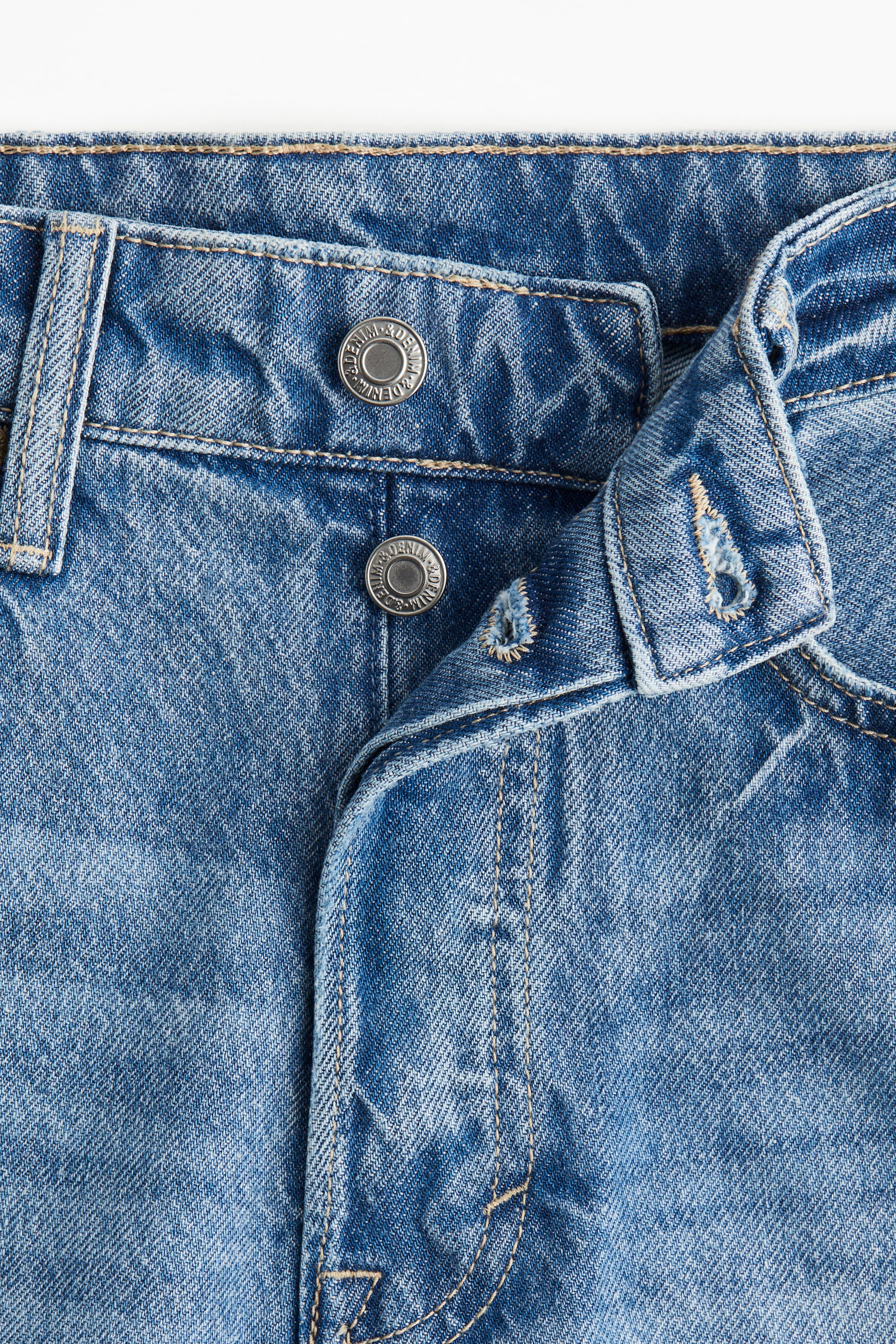 Šortky s 5 kapsami z pevného bavlněného denimu. Mají vysoký pas a poklopec na knoflíky.
