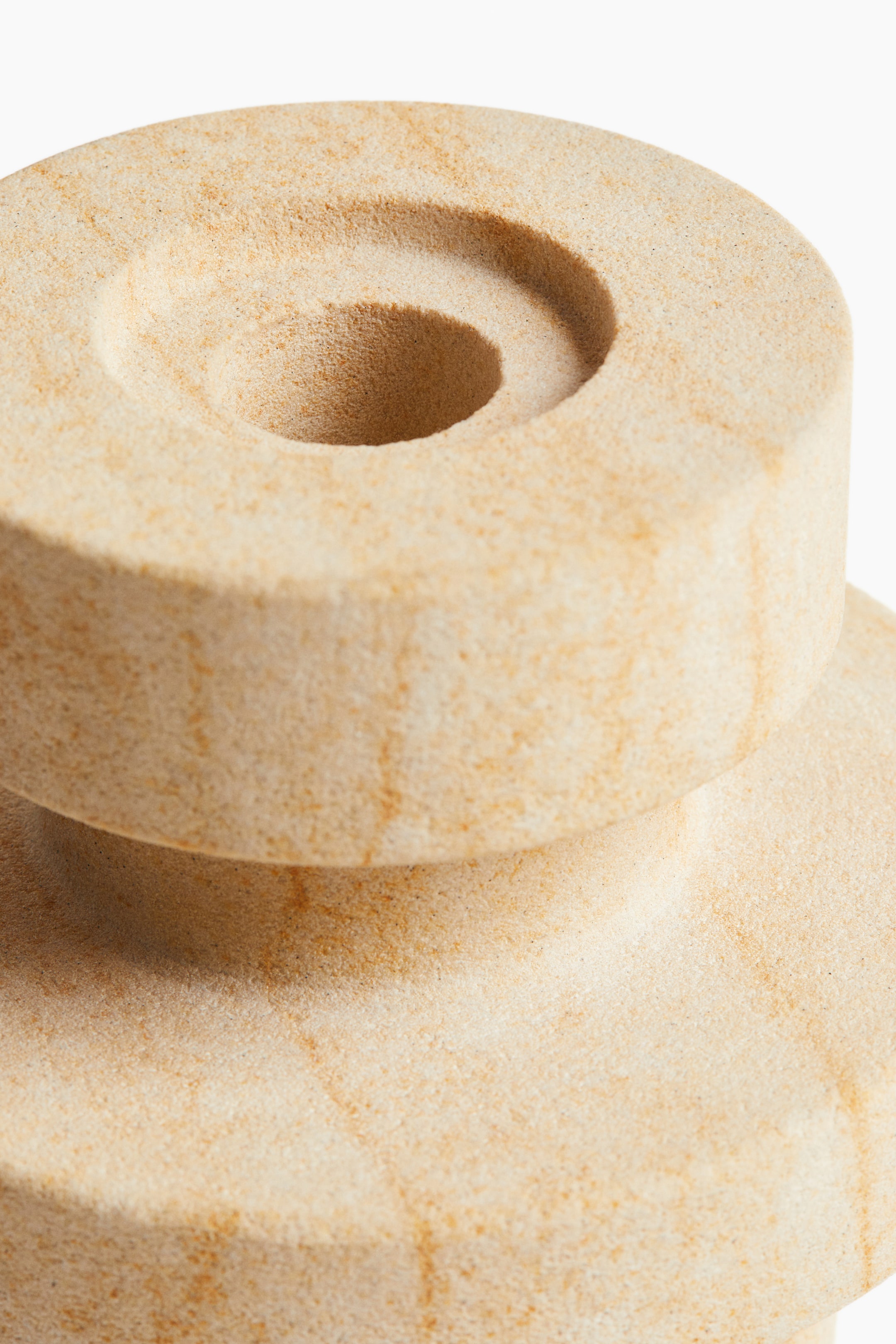 PALM HEIGHTS x H&M HOME. Malý pískovcový svícen. Má odvážný a zároveň vytříbený design, který kombinuje přírodní materiály s geometrickou siluetou, a představuje poctu okouzlujícímu stylu 70. let. Osvětlete místnost stylově pomocí jednoho kusu, který vytvoří výrazný prvek, nebo zkombinujte dva svícny v různé výšce. Pískovec je přírodní materiál, a tak je každý kus jedinečný svou barvou a vzorem. Vneste do svého domova luxus resortu Palm Heights s touto kolekcí inspirovanou Karibikem, která se vyznačuje hravým designem a retro šarmem. Je navržená ve spolupráci s kreativní ředitelkou Gabriellou Khalil. Průměr v nejširším bodě 11 cm. Výška 13,5 cm.