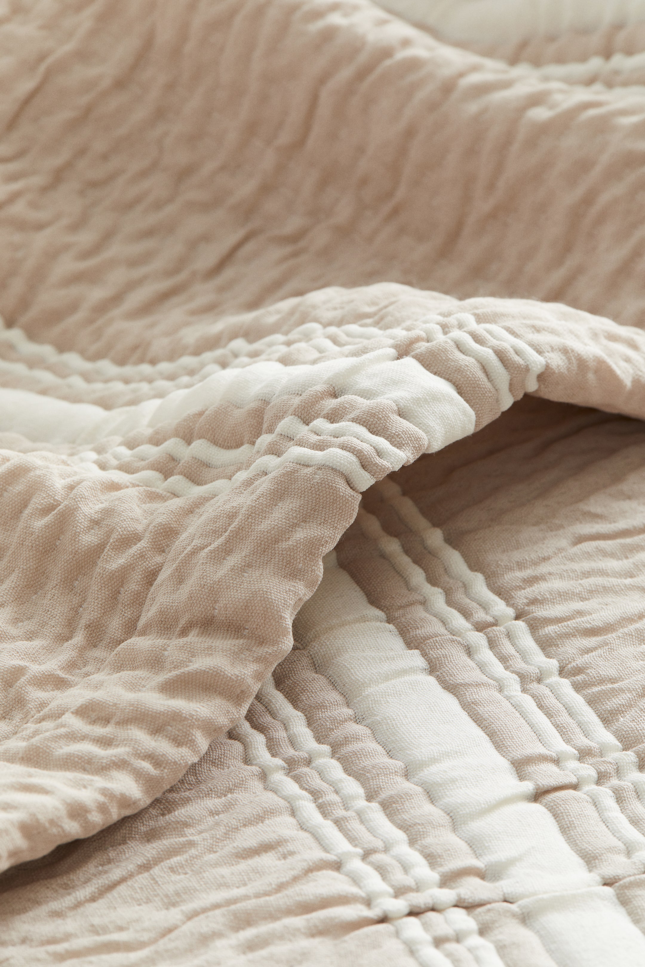 Přehoz na postel z žakárové tkaniny s prošívanou, mačkanou texturou.