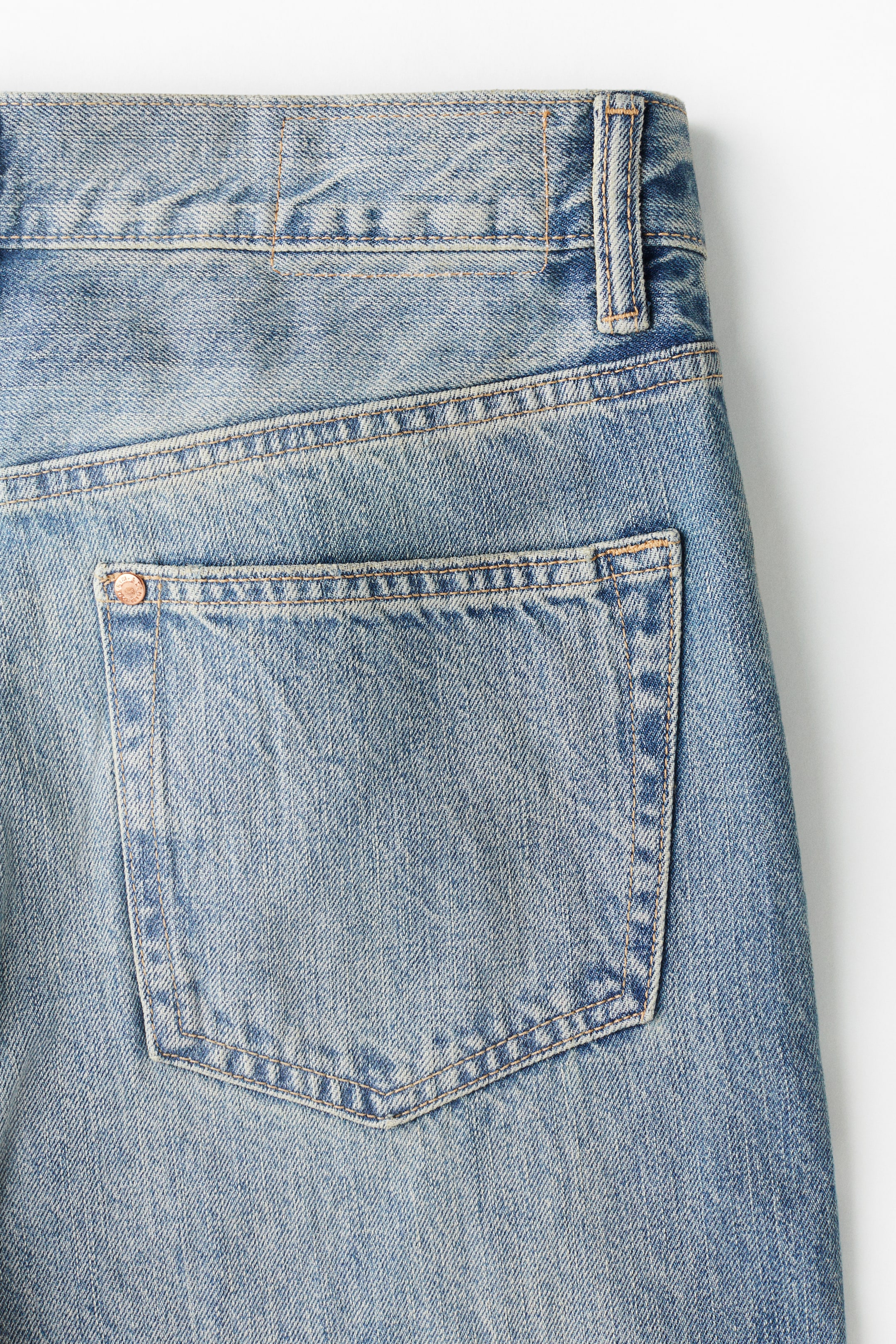 Džínové kalhoty s 5 kapsami z pevného bavlněného denimu. Mají rovné nohavice a od sedla až dolů volný střih. Spuštěný sed. Po celé délce nohou jsou obzvlášť prostorné. Klasický pas a poklopec na knoflíky. K dokonalému džínovému looku nic jiného nepotřebujete.