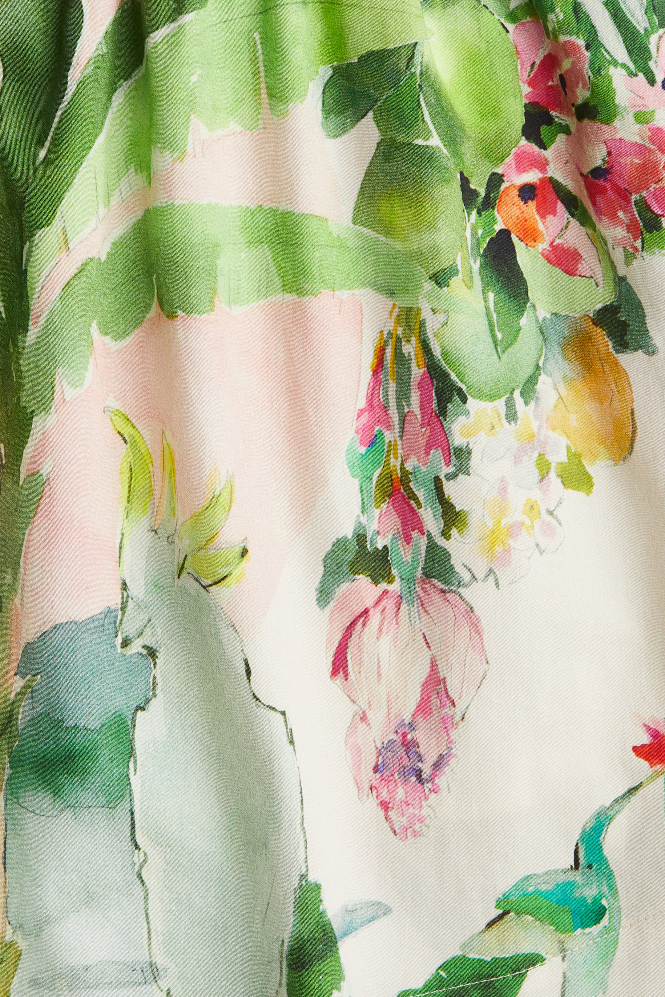 - Světle růžová/bílá/růžová/zelená/žlutá, Vzorek, Parrots, palm trees, flowers, pineapples