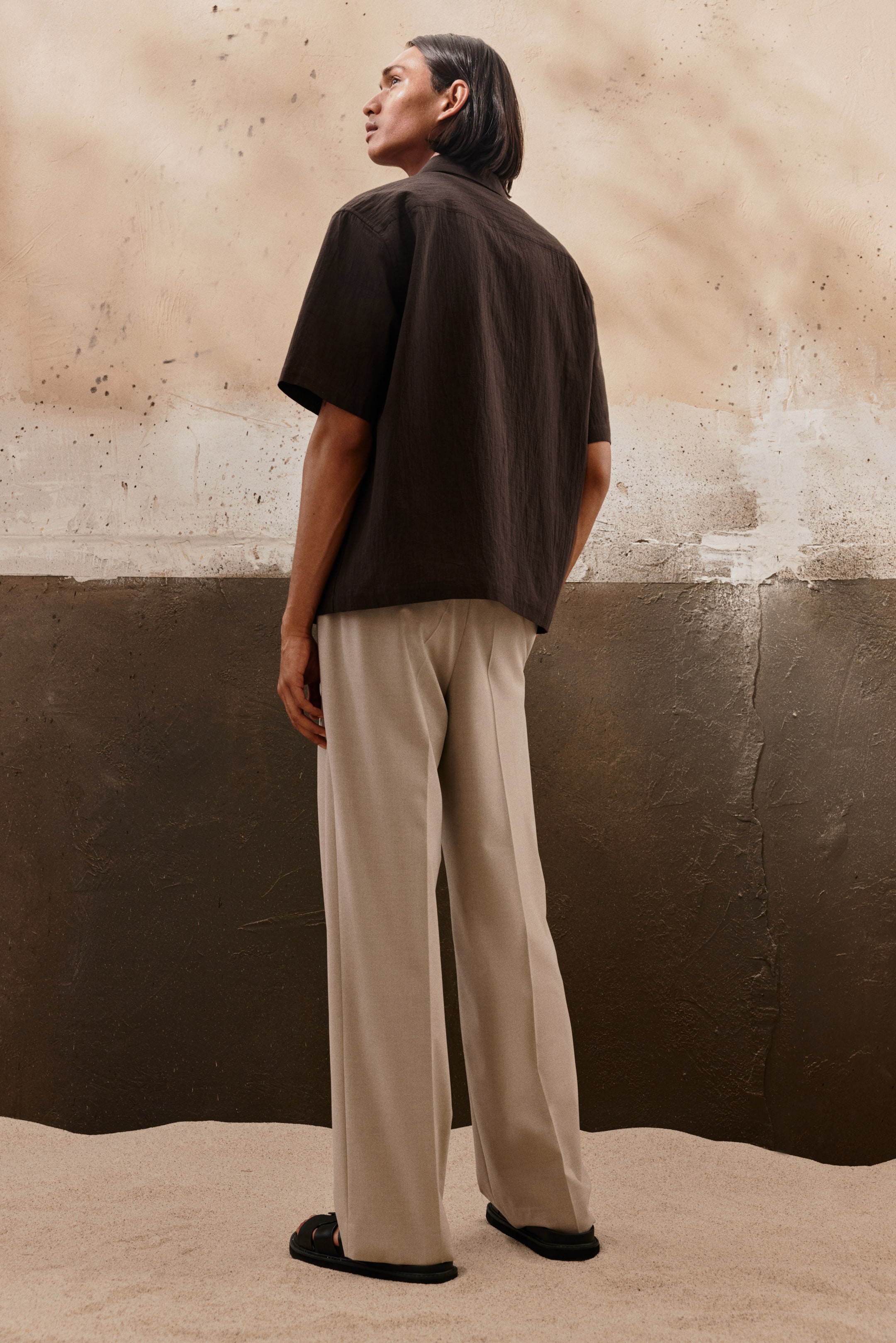 Žerzejová košile z bavlněné směsi. Má krátké rukávy, límeček s rozhalenkou typu resort, hladkou knoflíkovou légu, náprsní kapsu s knoflíkem, zadní sedlo a rovný dolní lem. Díky klasickému střihu se oděv pohodlně nosí a vytváří klasickou siluetu.