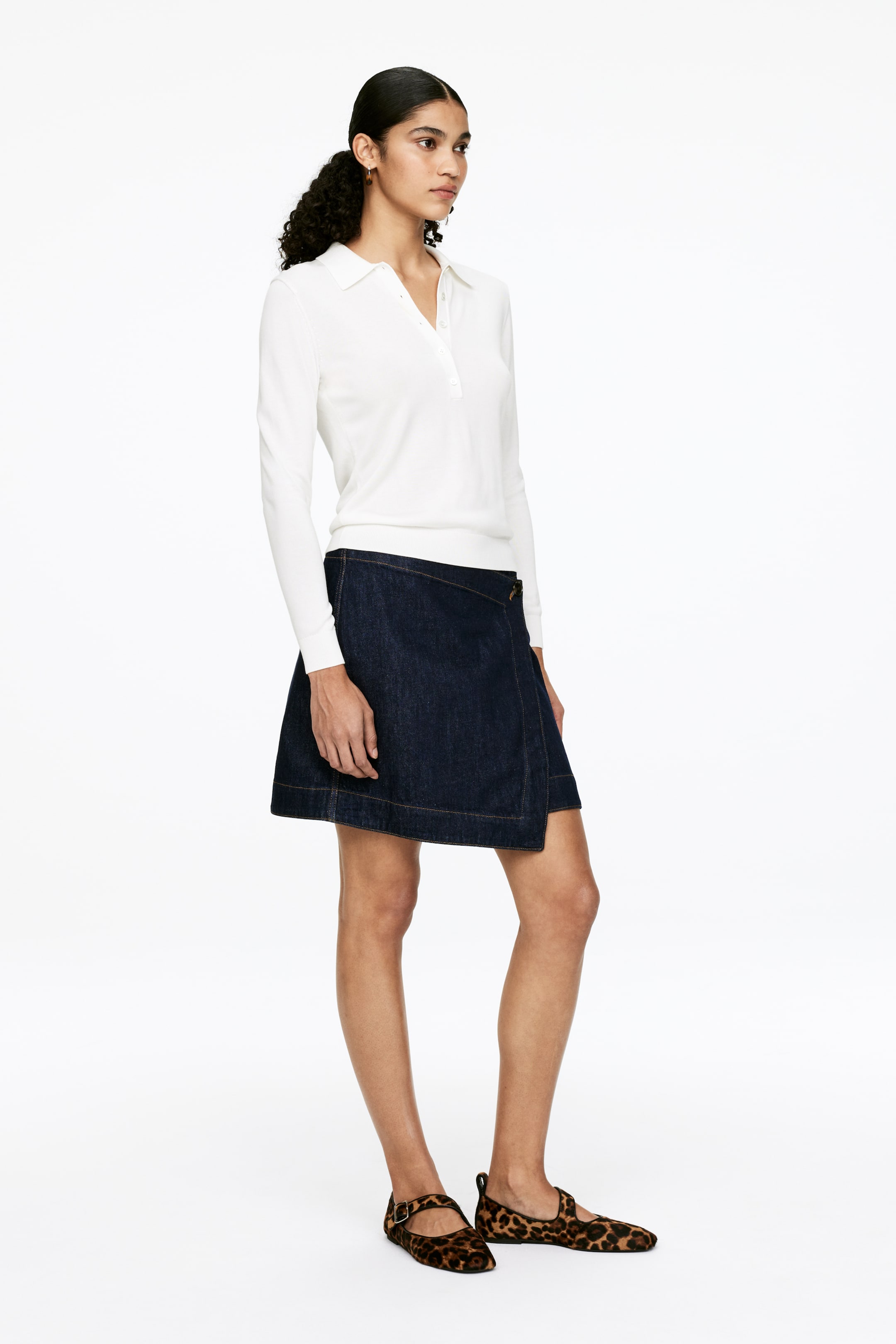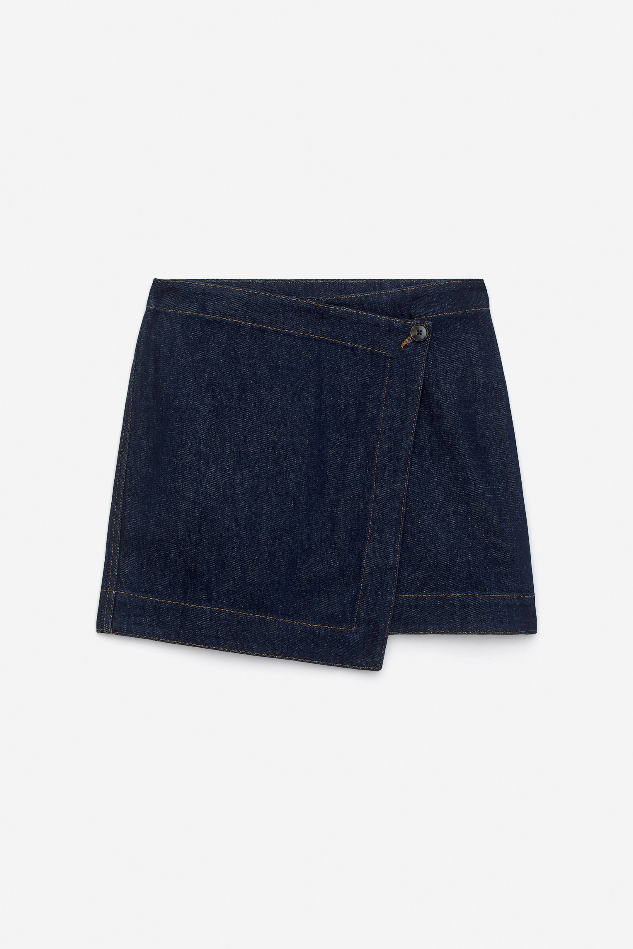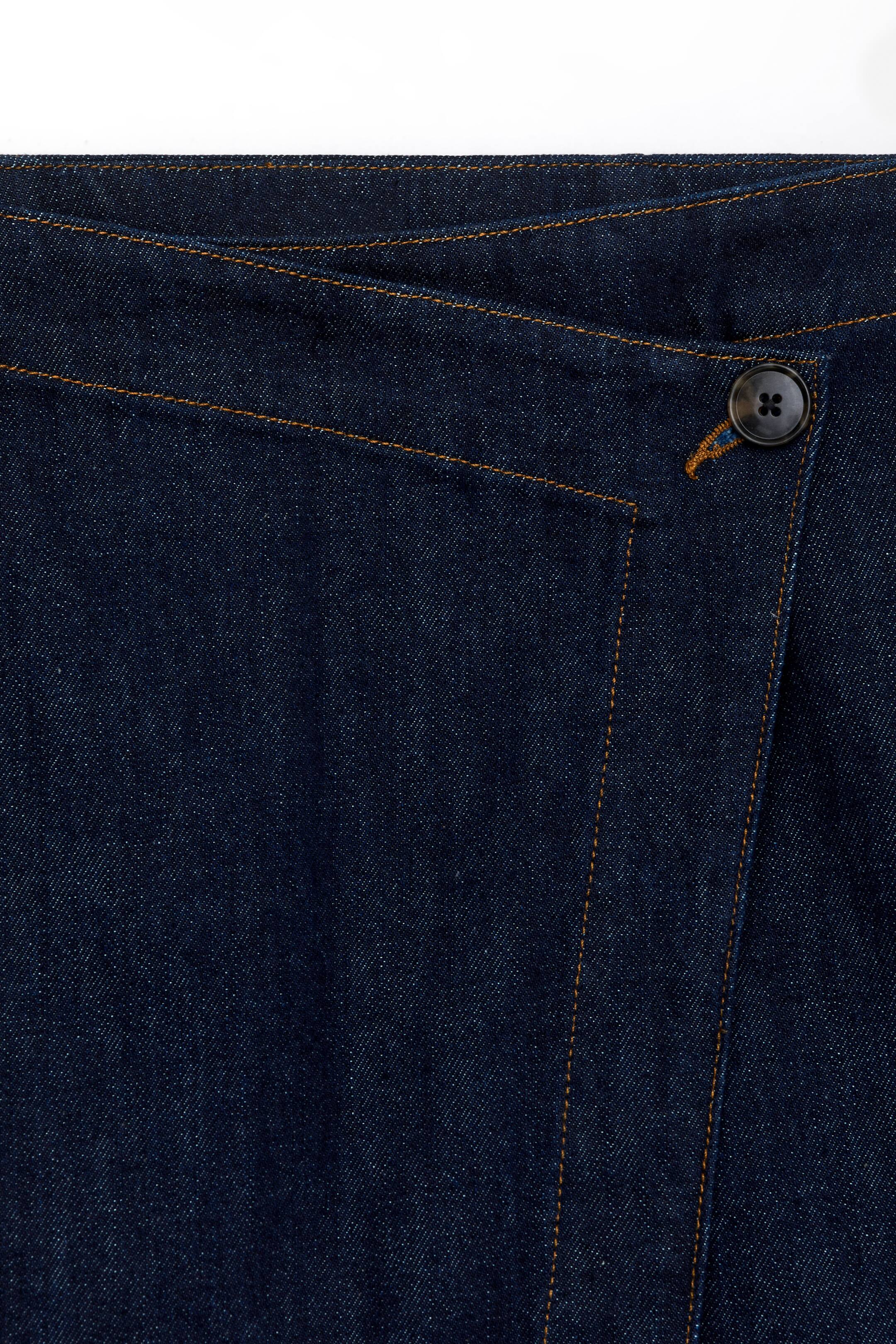 Zavinovací sukně z bavlněného denimu se zapínáním na knoflíky a klasickým střihem.