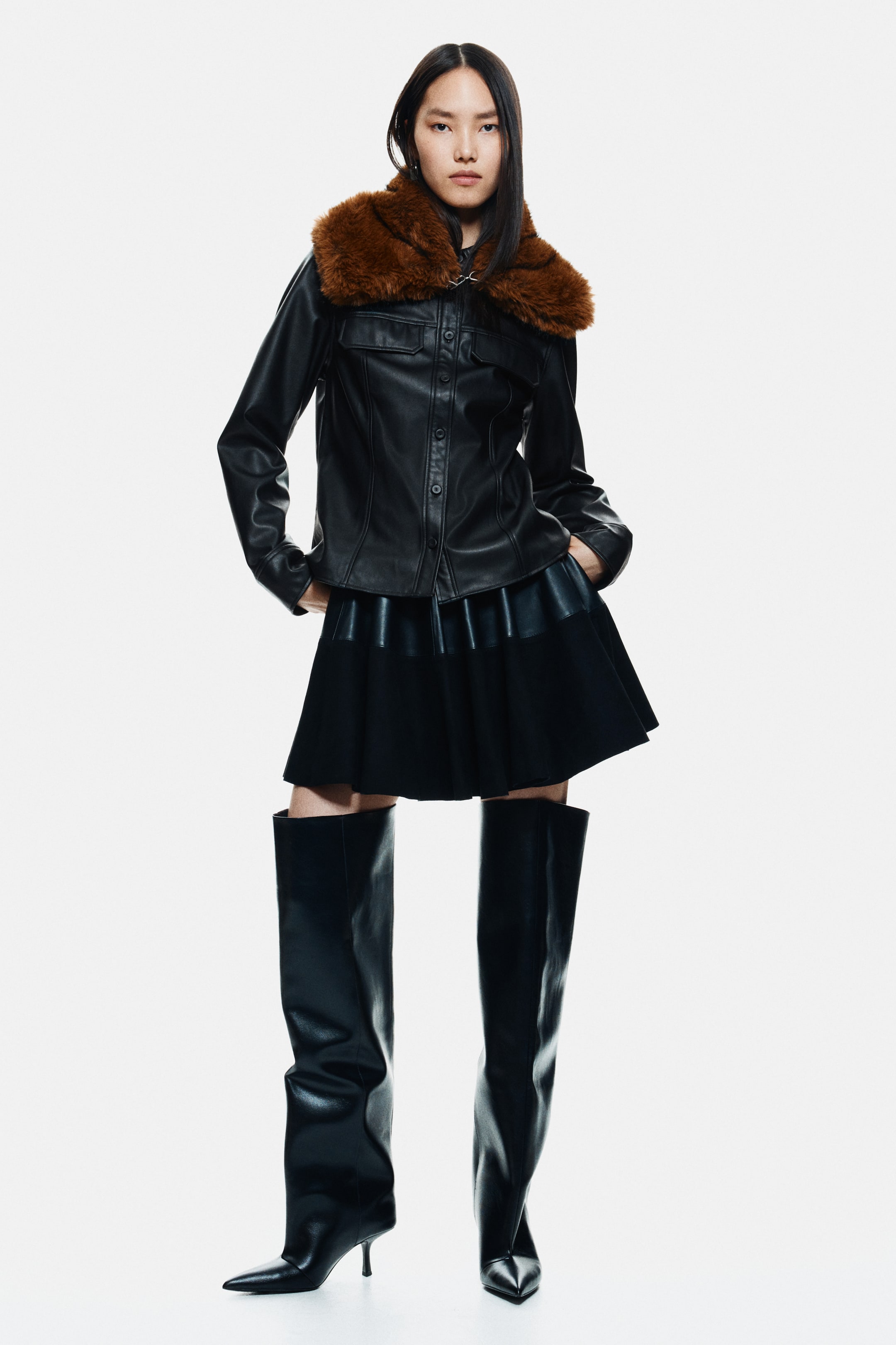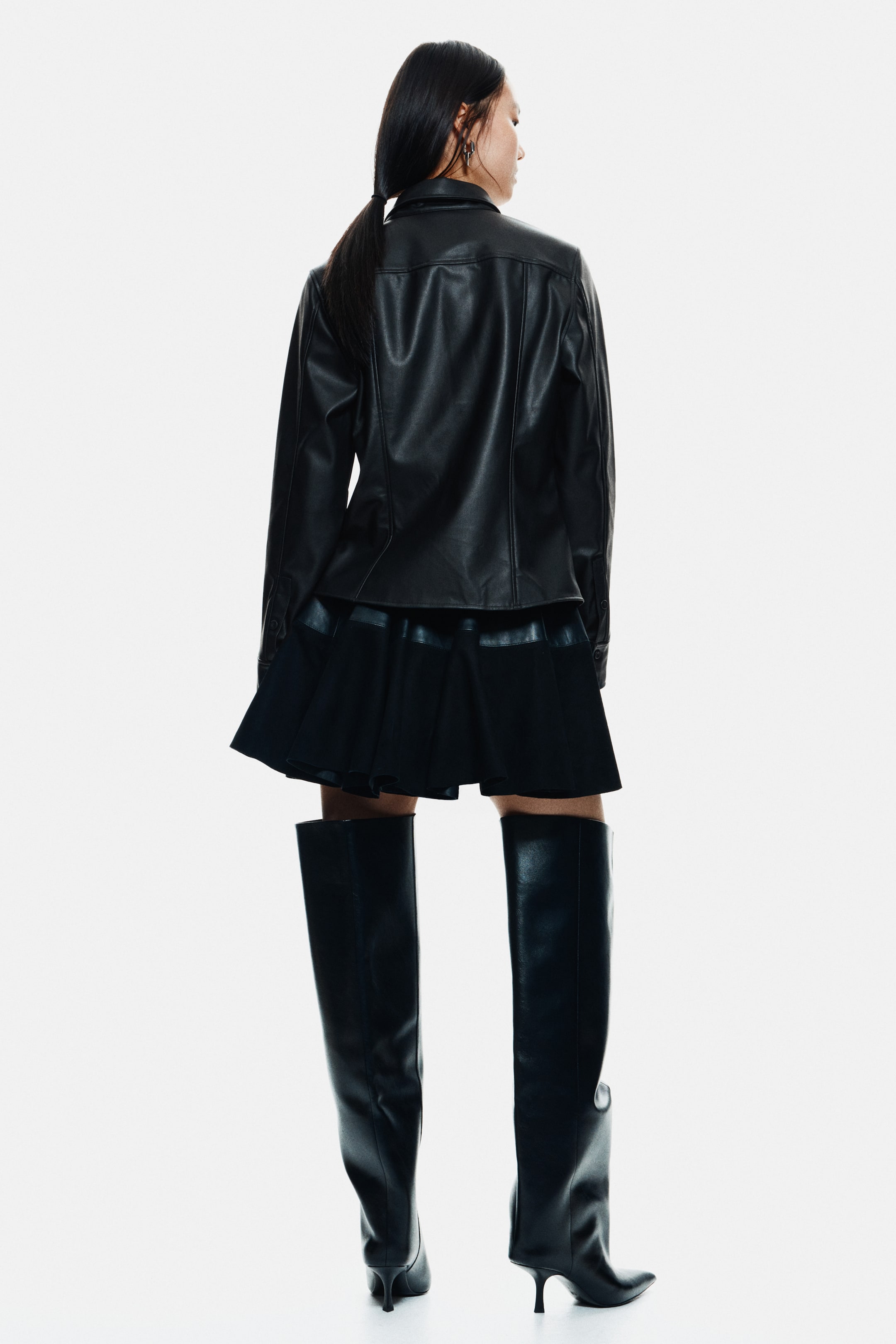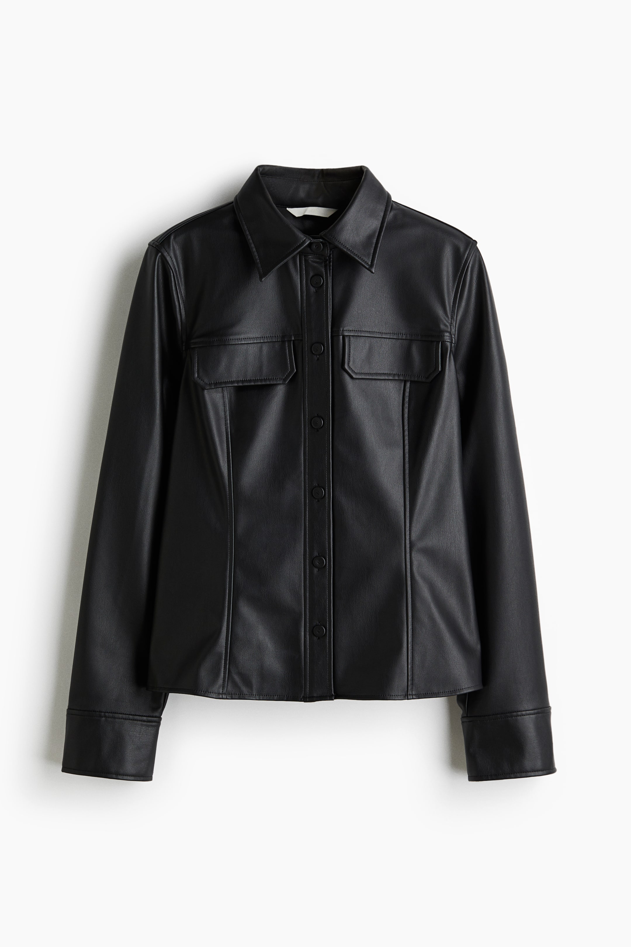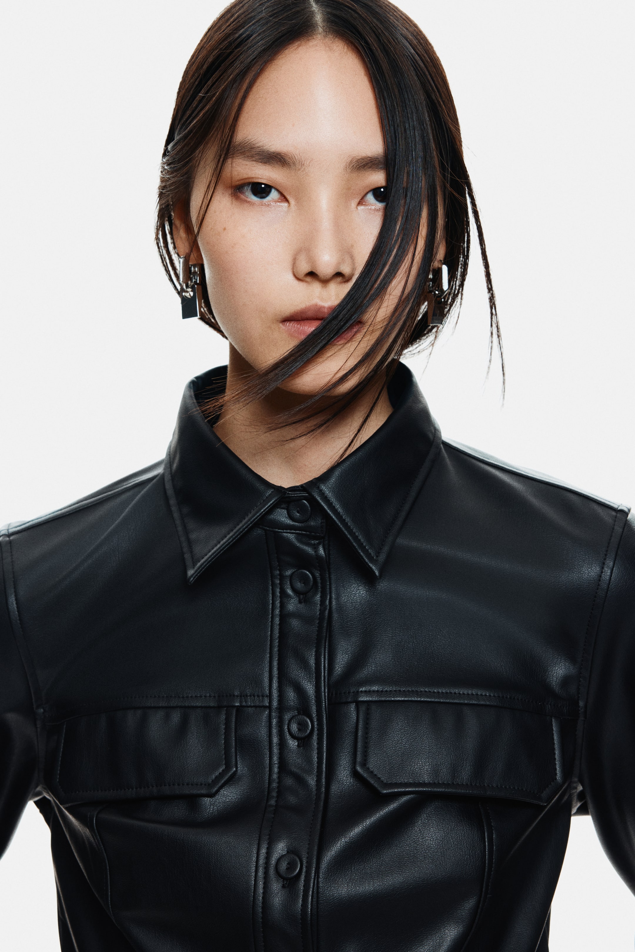 Přiléhavá košile z potažené látky. Má límec, přední zapínání na potažené knoflíky, ozdobné kapsové patky na prsou, tvarující švy vpředu i vzadu a zadní sedlo. Dlouhé rukávy jsou zakončené légou se spojovacím knoflíkem a manžetou s knoflíkovým zapínáním.