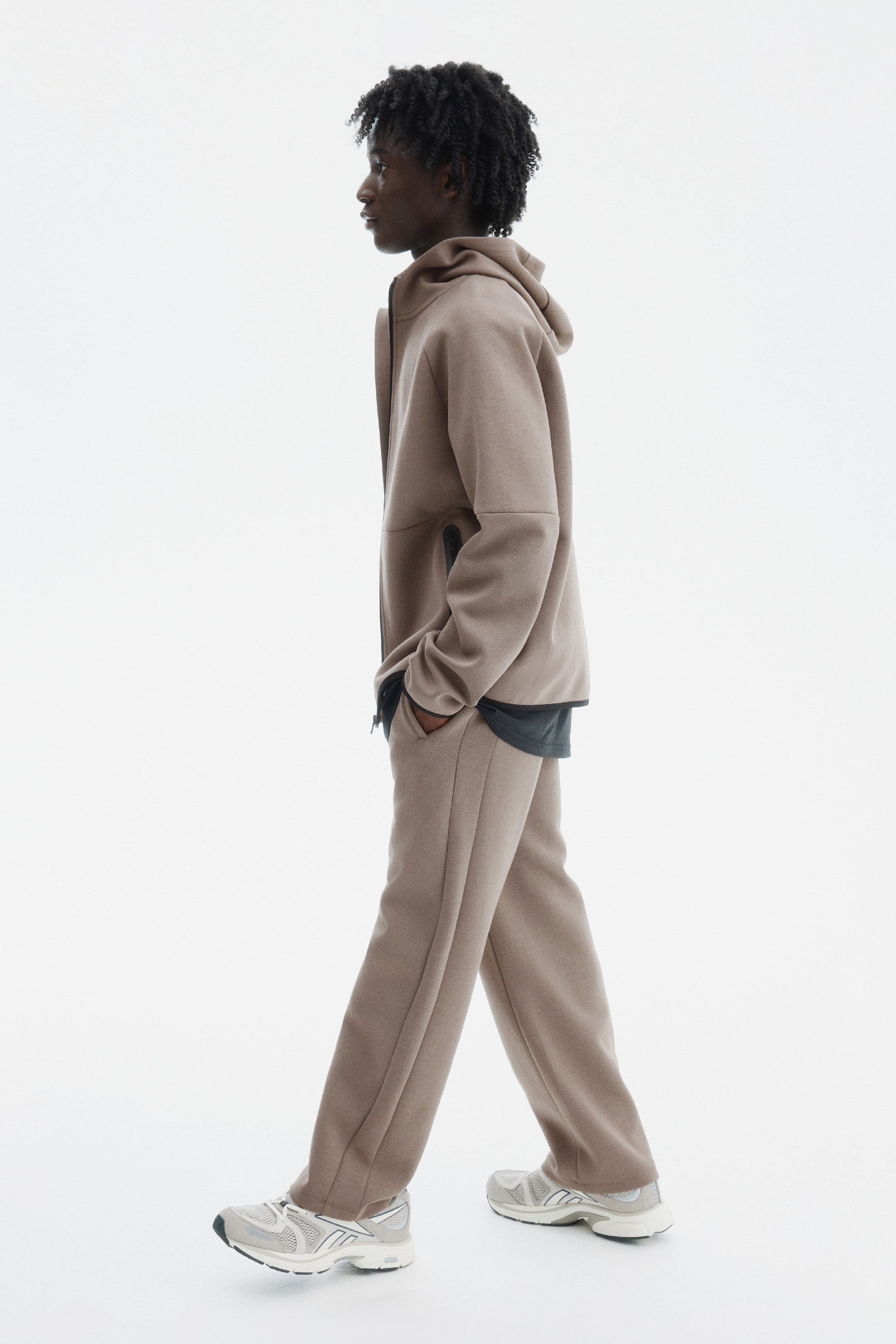 Sportovní kalhoty jogger z funkčního žerzeje vyrobeného technologií DryMove™, který pomáhá odvádět vlhkost od pokožky a udržuje vás tak při pohybu v příjemném suchu. V pase mají krytou gumu a stahovací šňůrku. Boční výpustkové kapsy a rovné nohavice s předsunutými bočními švy.