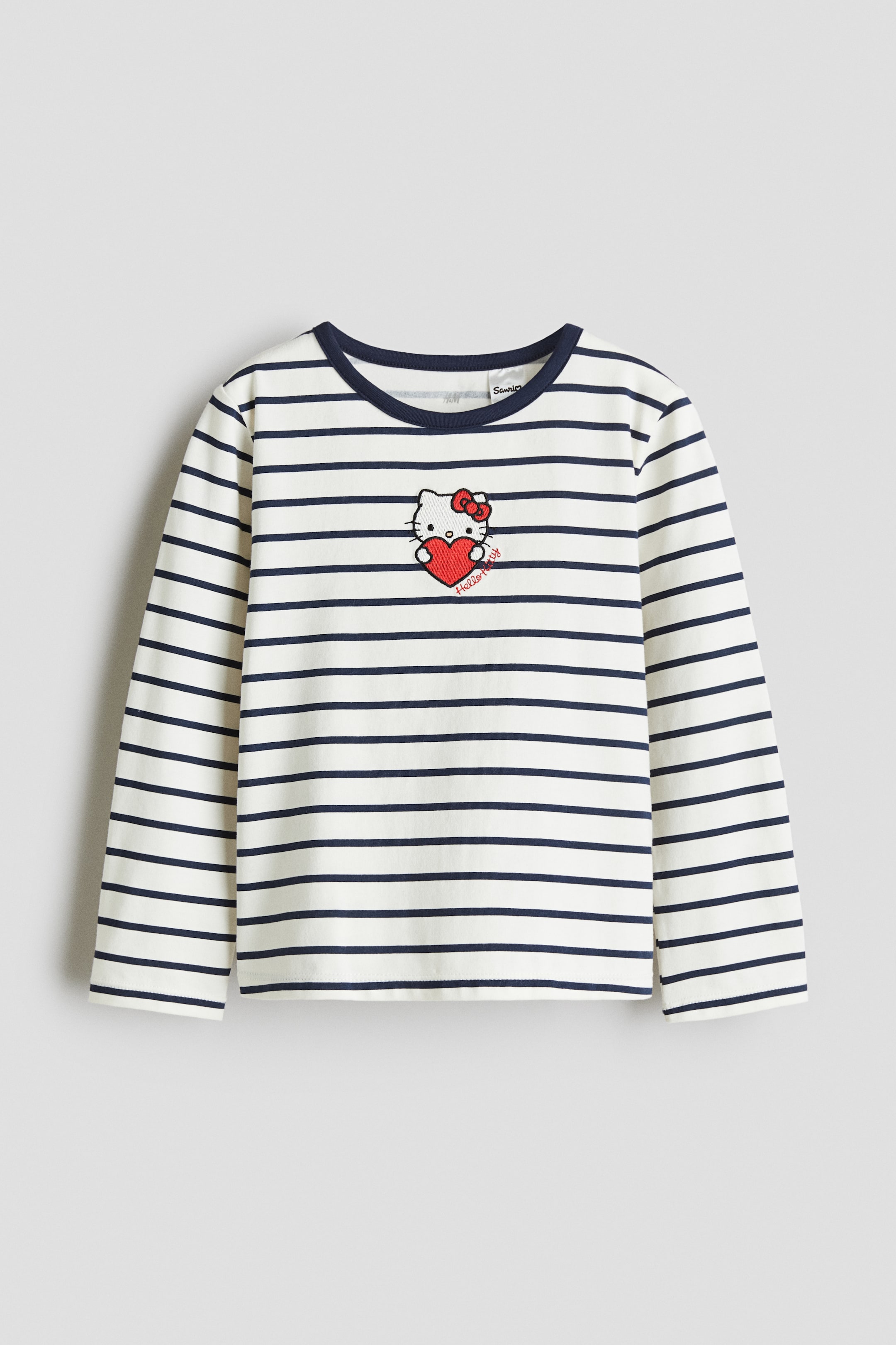 Triko z měkkého bavlněného žerzeje s předním motivem. Dlouhé rukávy. Má kulatý výstřih s úzkou lemovkou.