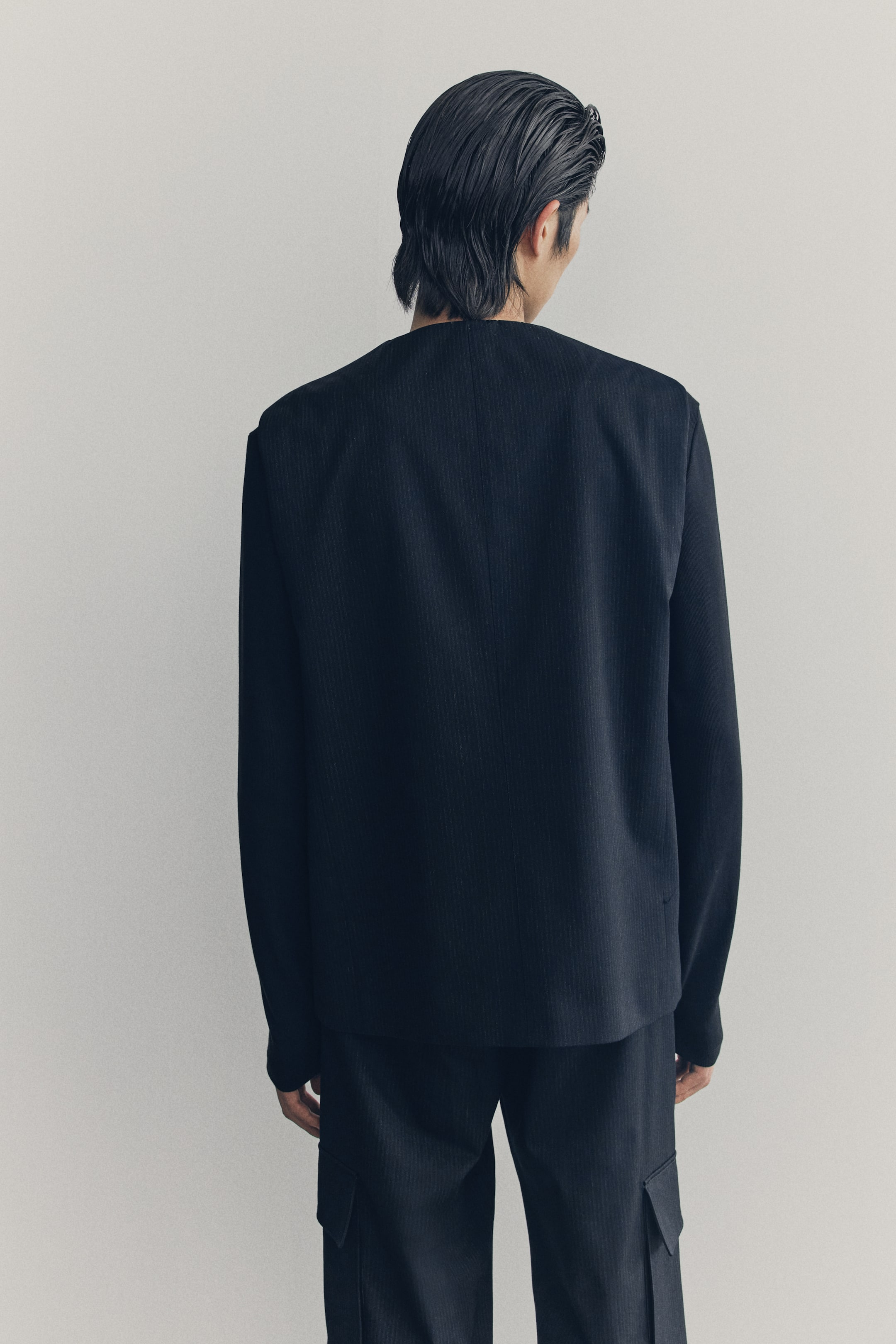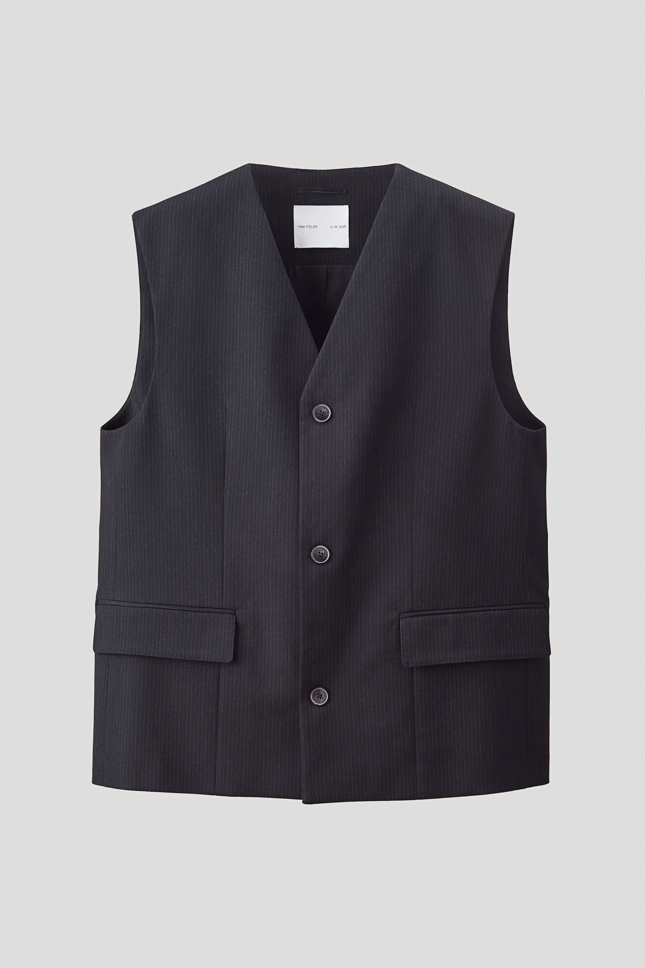 Vesta z tkané směsi vlny a bavlny od italského výrobce látek Manifattura Emmetex. Klasický střih. Má přední zapínání na knoflíky a přední výpustkové kapsy s patkou. Podšívka z viskózového saténu.