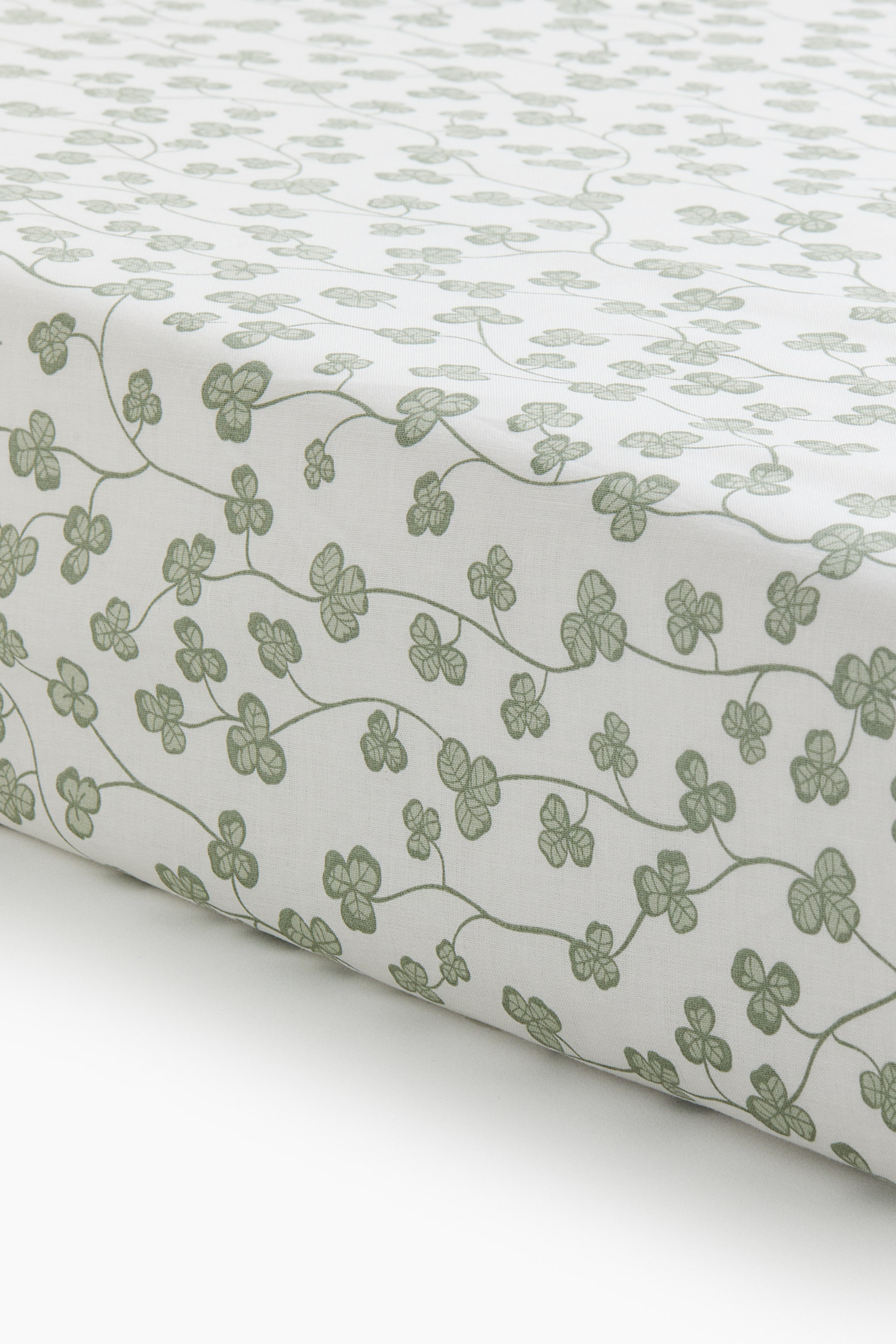 Faconsyet lagen i vævet bomuldskvalitet med trykt mønster. Passer til madrasser op til 23 cm i højden.