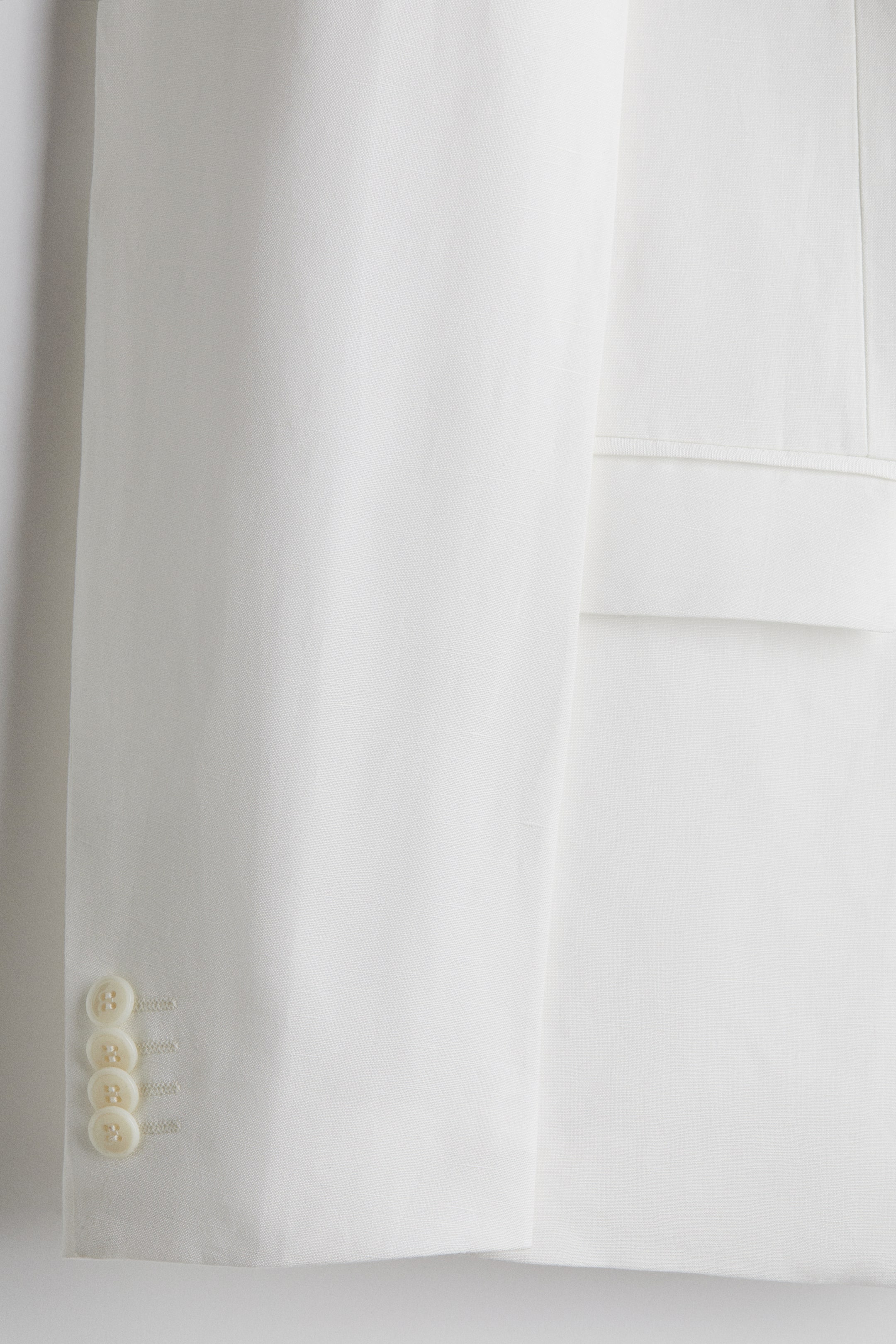Enkeltradet jakke i vævet kvalitet af hør- og viskoseblanding med spidsrevers, dekorativt knaphul og to knapper foran. Jakken har brystlomme, forlommer med klap og tre inderlommer. Dekorative knapper nederst på ærmerne samt dobbelt slids bagpå. Regular fit, som er behagelig at have på og giver en klassisk silhuet. Med for.