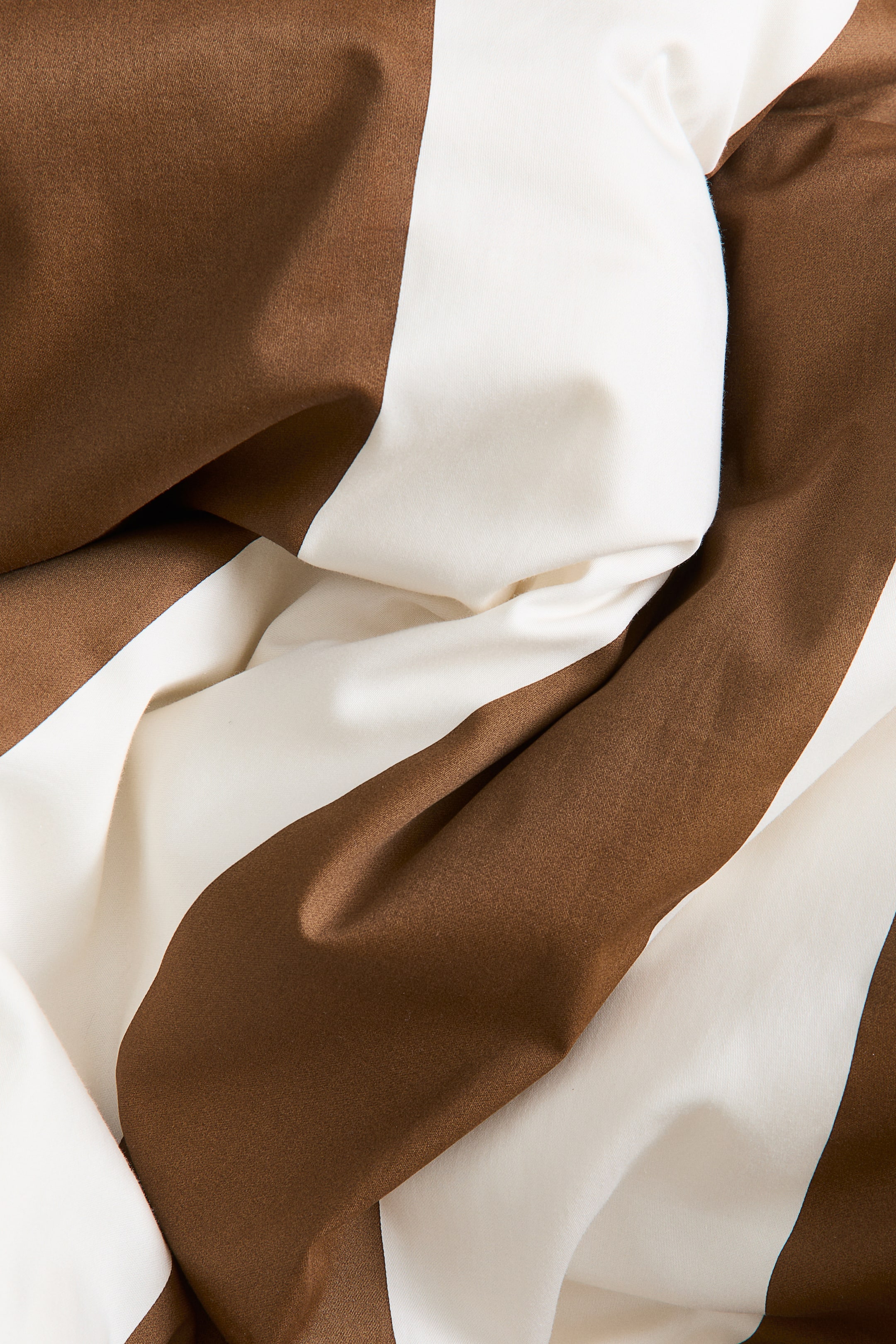 Dobbelt/kingsize sengesæt i luksuriøs bomuldssatin med stribet mønster og kantstribe på hovedpudebetrækkene og dynebetrækket. Hovedpudebetrækkene har kuvertåbning, og dynebetrækket har åbning i bunden. Bomuldssatin giver dig en mere behagelig nattesøvn og har en diskret glans, der tilfører dit sengetøj et luksuriøst udtryk og en blød fornemmelse.