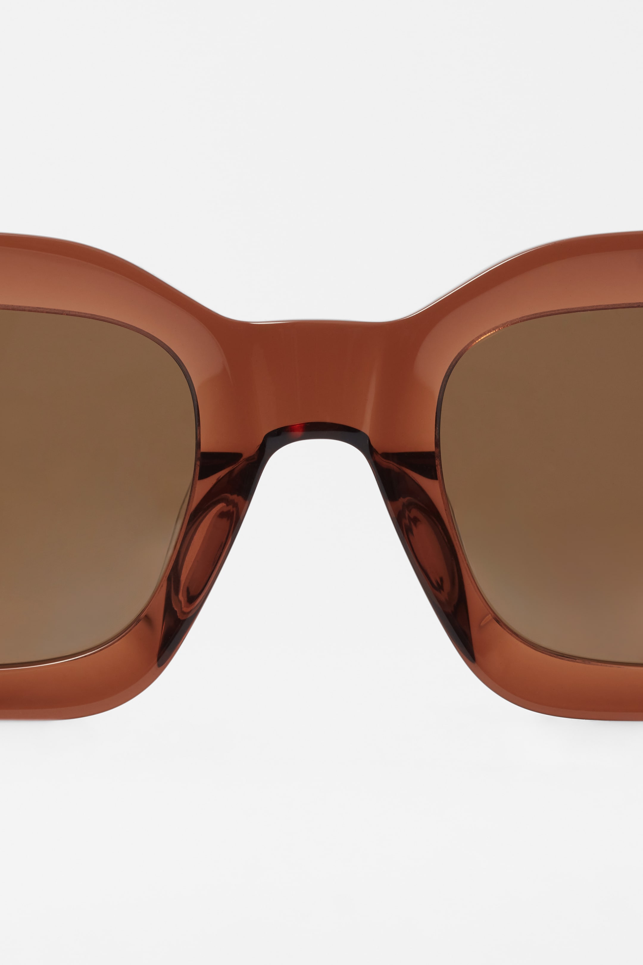 Chunky solbriller med et rektangulært vintage-inspireret stel og vinklede stænger, der løsner op for det bastante look og tilføjer et strejf af lethed til designet. Solbrillerne er fremstillet af acetat og udstyret med tonede linser, der giver en stilsikker beskyttelse mod solens stråler. 100 % UV-beskyttelse