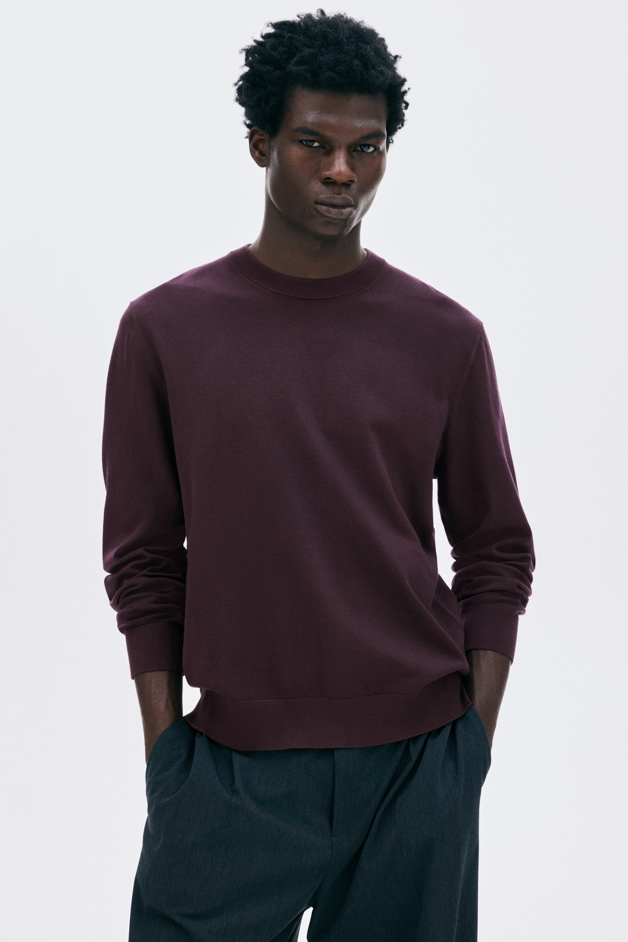 Finstrikket trøje med rund hals med ribkant og lange ærmer. Ribkant på ærmerne og forneden. Regular fit, som er behagelig at have på og giver en klassisk silhuet.