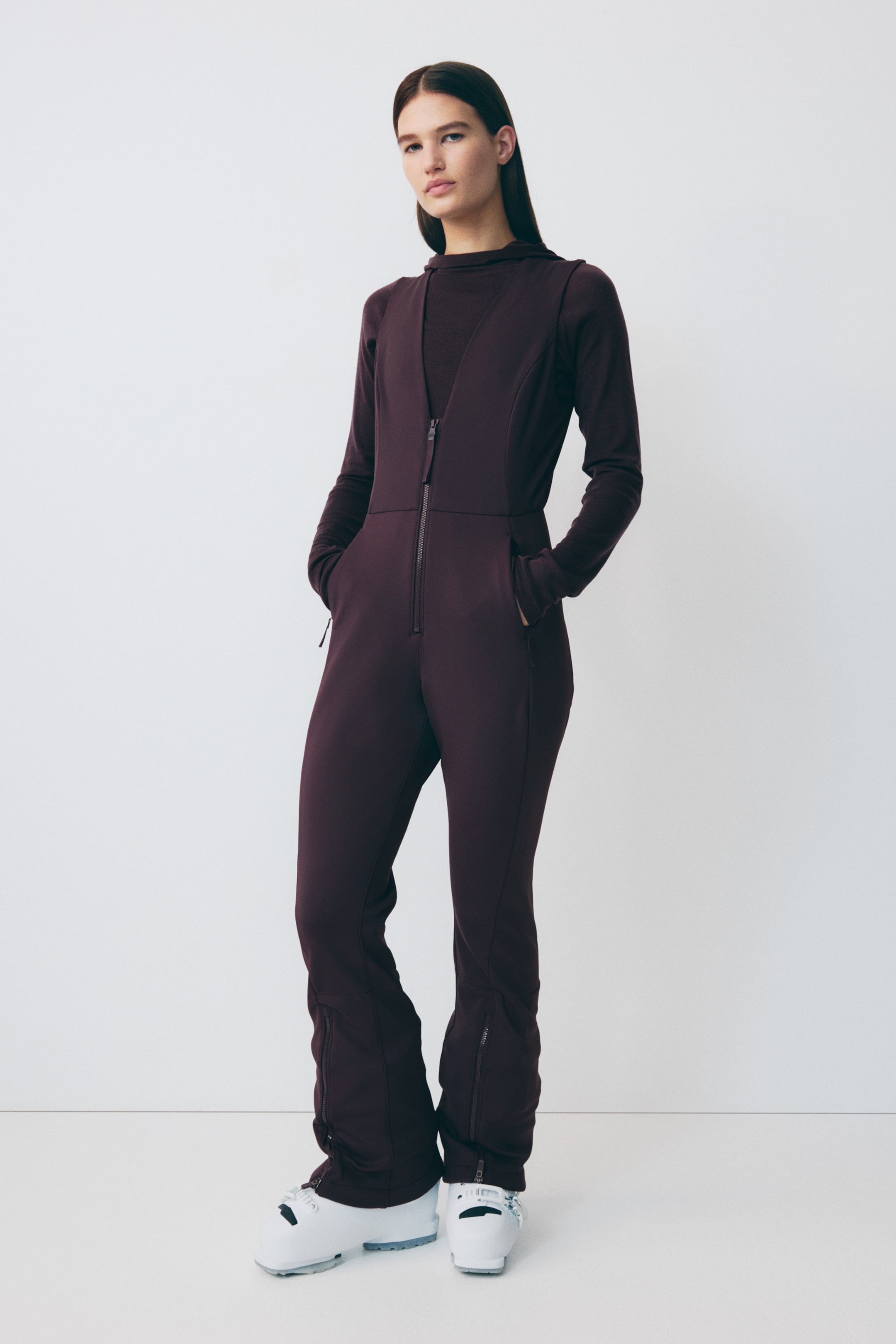 Skioveralls i vandafvisende, vindtæt funktionsmateriale, som er åndbart under alle vejrforhold. Smal pasform med brede skulderstropper foroven, V-udskæring og lynlås foran. Håndvarmerlommer med skjult lynlås. Let svaj forneden på benene, som har lynlås foran og indbyggede snegaiters, som slutter tæt til skistøvlerne. Blød, børstet inderside. Udstyret med teknologien RECCO®, som gør dig synlig over for redningsmandskab.
