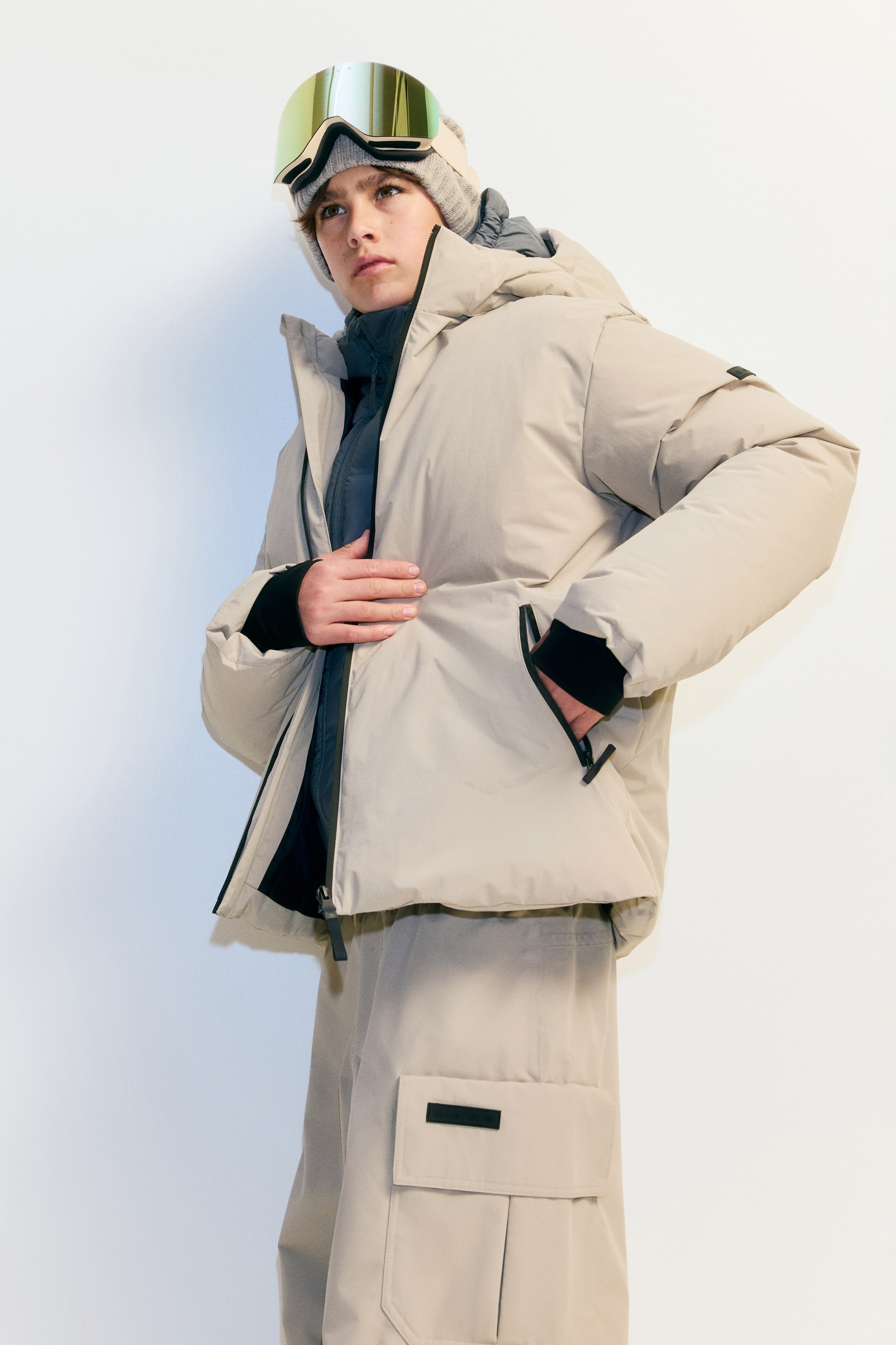 Vatteret træningsjakke i vindtæt og vandafvisende funktionsmateriale med ThermoMove™, som holder dig varm, når temperaturen falder. Jakken har aftagelig hætte, opretstående krave og lynlås foran med hagebeskytter, som modvirker friktion mod huden. Forlommer med lynlås samt en ærmelomme med lynlås. Lav skuldersøm, indvendig ribkant med hul til tommelfingeren og skjult, elastisk snøre i kanten forneden. Med for.