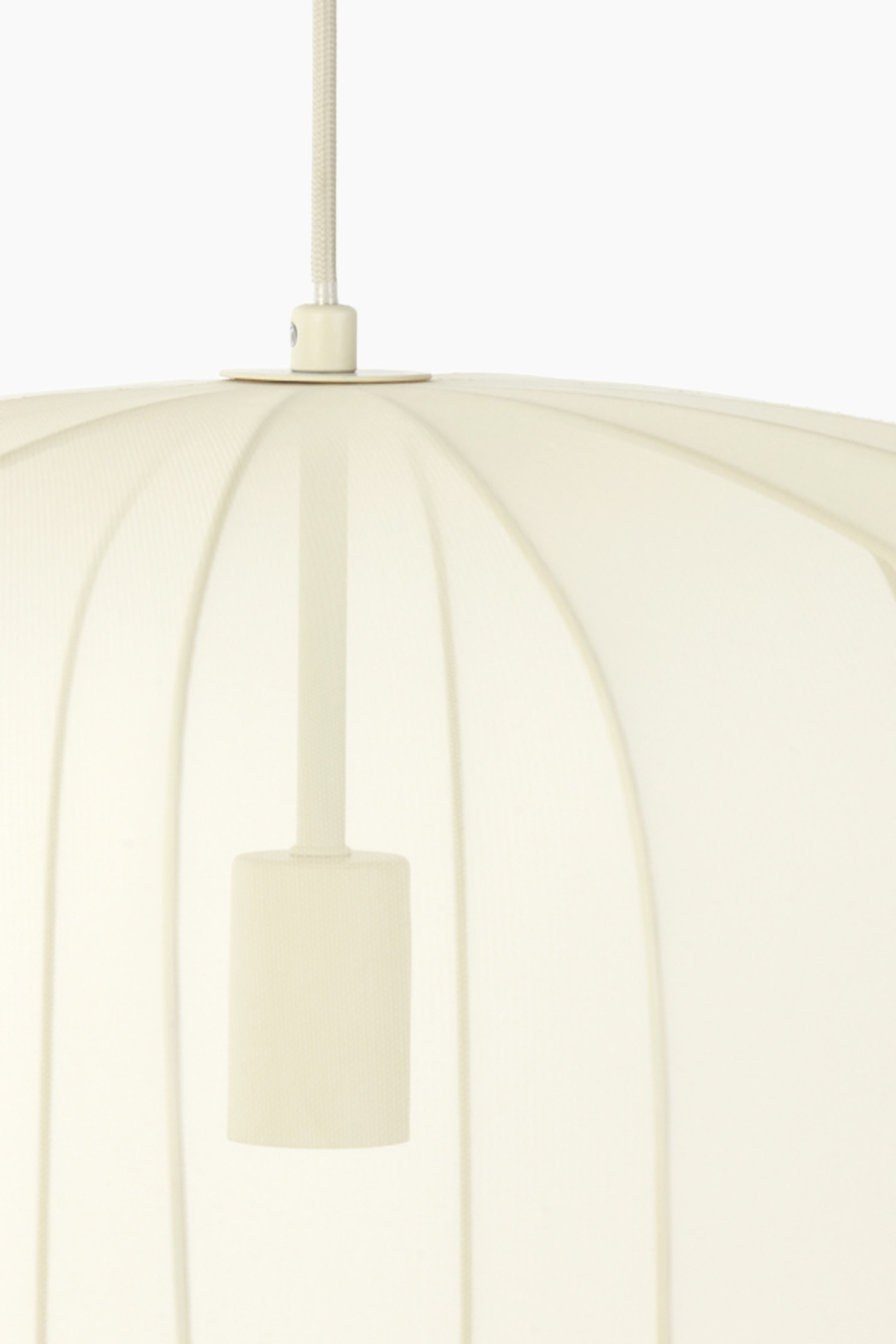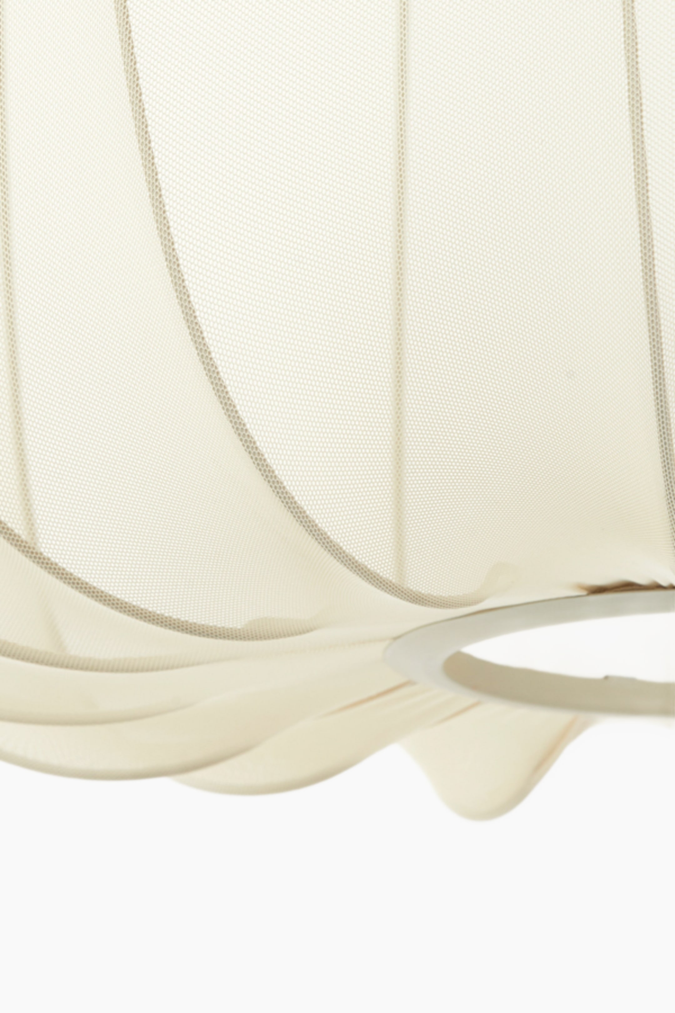 Tauchen Sie ein in eine warme und einladende Atmosphäre mit der Hängelampe Plumeria. Diese elegante Lampe zeichnet sich durch ein einzigartiges Schirmdesign aus, bei dem das weiche, weiße Textil um einen robusten Metalldrahtrahmen herum gewickelt ist. Mit einem Durchmesser von 60 cm erzeugt die Lampe Plumeria ein angenehmes, diffuses Licht, das im Schlafzimmer für Entspannung sorgt und im Wohnzimmer einen Hauch von Eleganz verleiht. Die Kombination aus der natürlichen Textur des Stoffes und dem industriellen Touch des Metallrahmens schafft ein visuell faszinierendes Stück, das zu einer Vielzahl von Einrichtungsstilen passt. Größe: 60 x 60 x 45