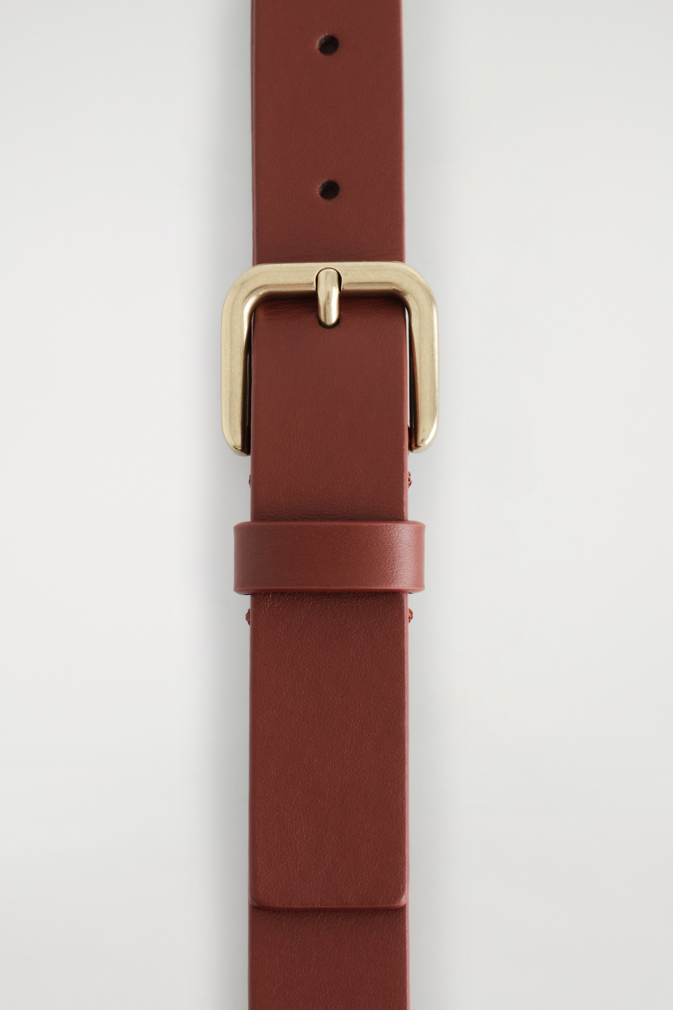 Der Ledergürtel ist ein unverzichtbarer Bestandteil der Herrengarderobe. Dieses Modell aus geschmeidigem, chromfreiem Leder in Braun hat eine gebürstete, goldfarbene Schnalle, die ihm eine moderne Raffinesse verleiht. Schnallenverschluss COS unterstützt eine verantwortungsvolle Fertigung über die Leather Working Group Obermaterial und Futter: 100 % Leder. Details ausgenommen