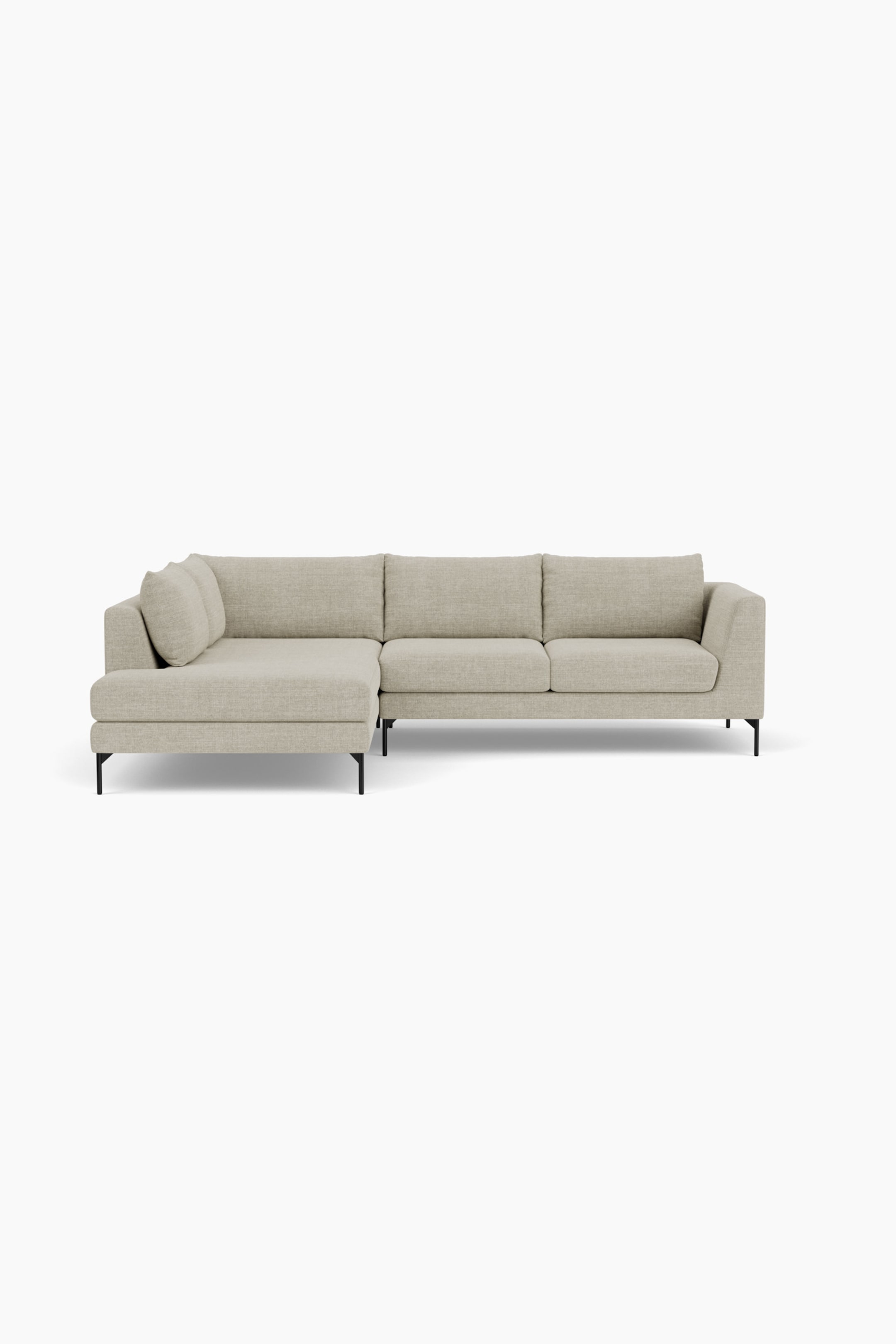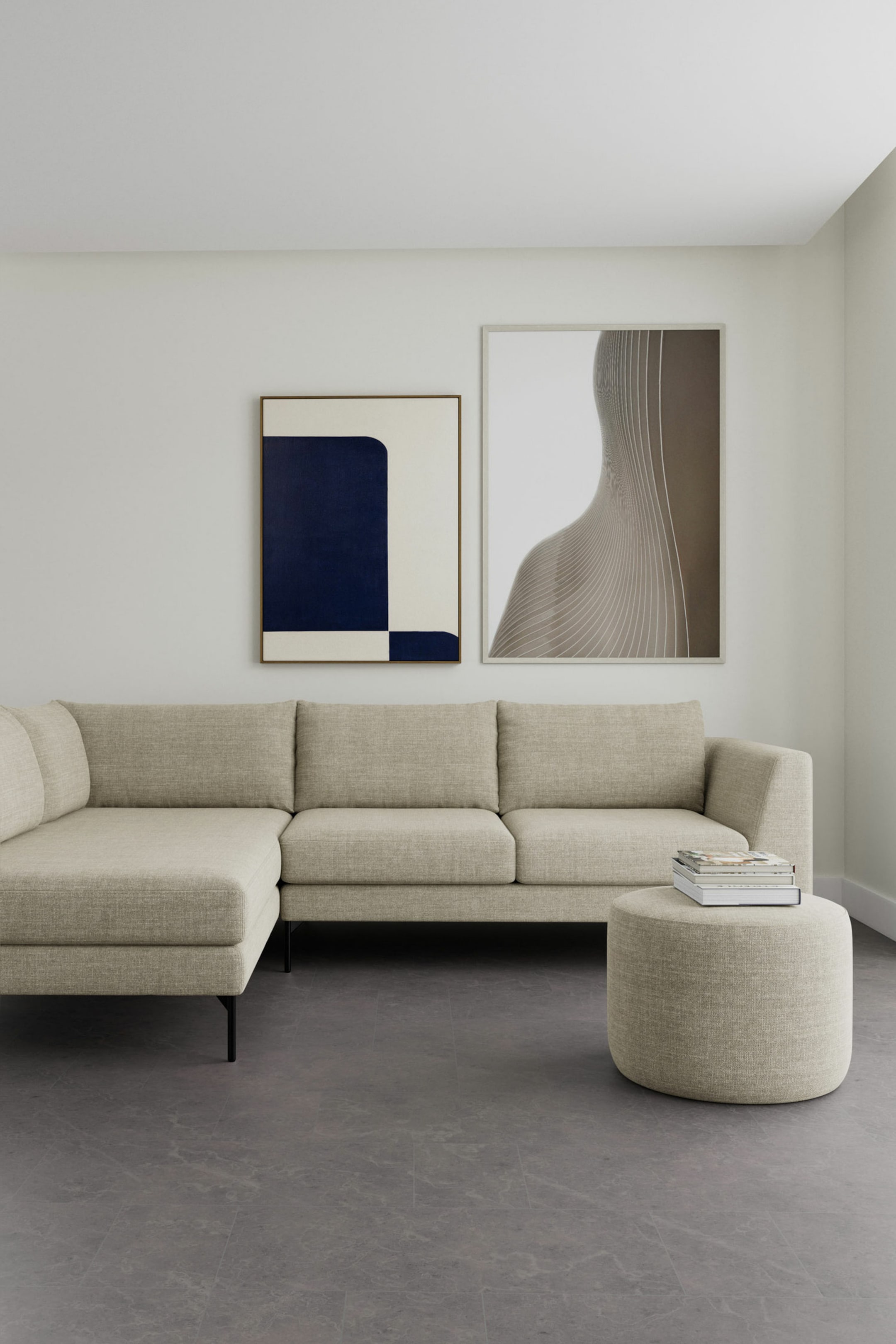 Das Noa-Sofa von SOFACOMPANY hat ein elegantes und architektonisches Design. Die Armlehnen haben auf der Innenseite eine dezente Neigung, die dem Sofa eine offene Ausstrahlung verleiht, und die schmalen Metallbeine schaffen einen Kontrast zu den weichen Formen und verleihen dem Sofa eine leichte und moderne Optik. Noa ist mit einem leinengewebten Stoff in einer Melange aus Beige, Grau und Offwhite bezogen.L: 263cm D: 95cm H: 84cm