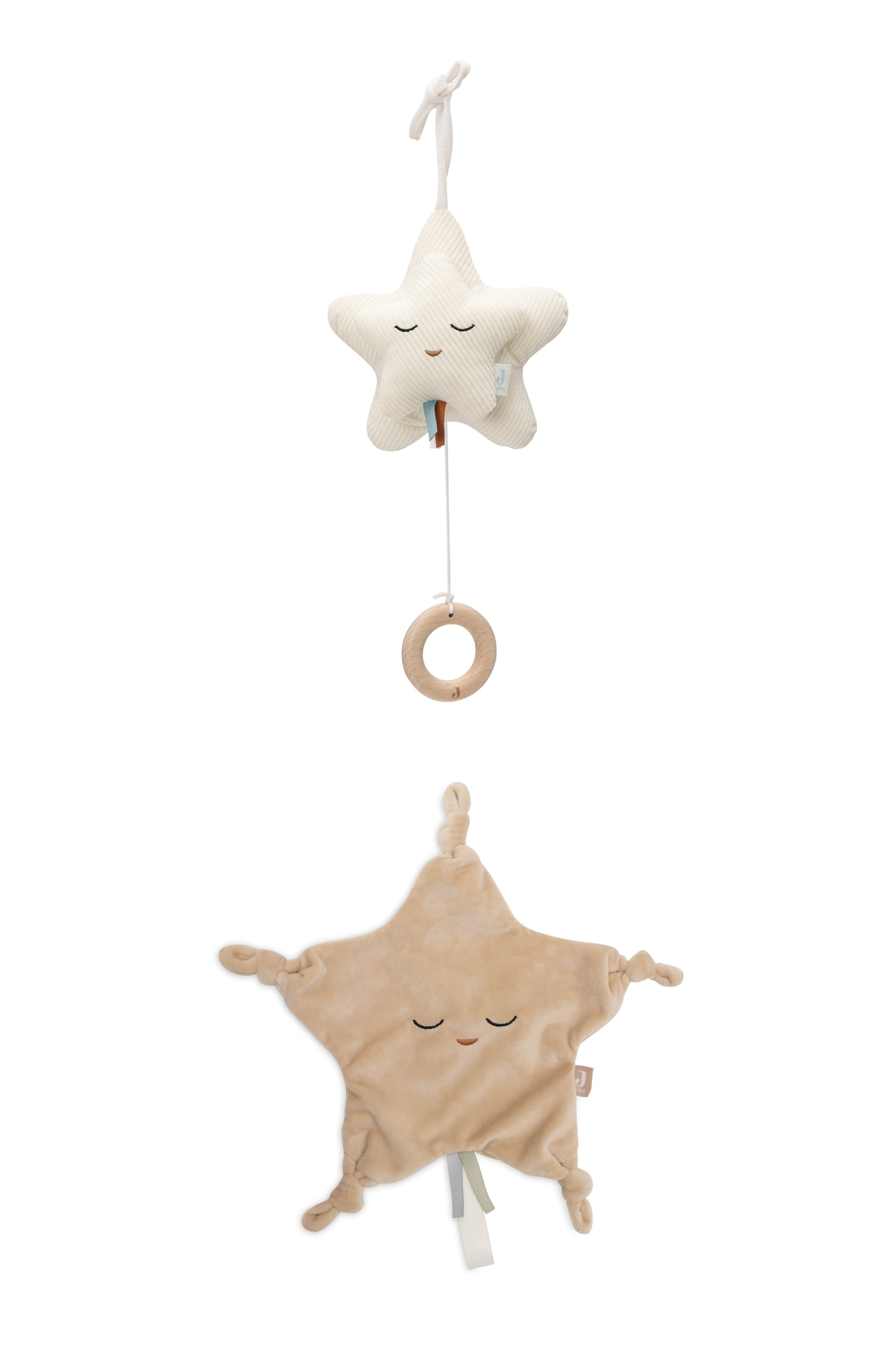 In diesem Star-Set finden Sie 2 schöne Artikel, die dabei helfen, sich zu entspannen und Ihren Kleinen zu unterhalten. Das Schmusetuch in Sternform ist aus wunderbar weichem Samtstoff gefertigt, die Rückseite ist aus Rippstoff. Das Gesicht ist wunderschön bestickt und mit der handlichen Kordel kannst du diesen niedlichen Stern ganz einfach am Schnuller befestigen. So kann dein Baby seinen Schnuller nicht so schnell verlieren und es hat gleichzeitig ein Kuscheltier zum Schmusen! Und spiele deinem Kind die schönen Klänge von Schuberts Wiegenlied vor. Das Spieluhr in Form eines großen und eines kleineren Sterns haben bunte Kordeln, bestickte Augen und einen Kordelzug, um die Musik abzuspielen. Größen; Schmusetuch: 25x25x0.1cm und Spieluhr: 60x20x9.5cm.