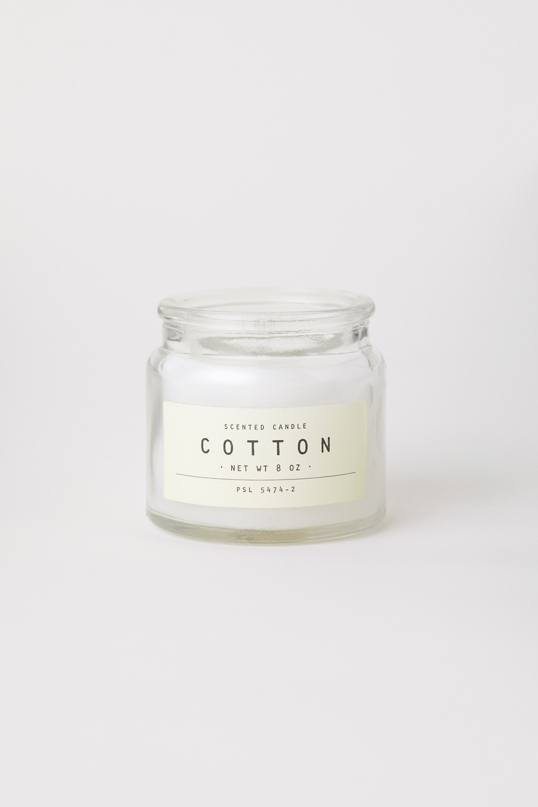 Kleine Duftkerze aus Wachs und Paraffin in einem Glasbehälter mit Etikett. Durchmesser oben 5 cm, Höhe 6 cm. Brenndauer 14 Stunden.