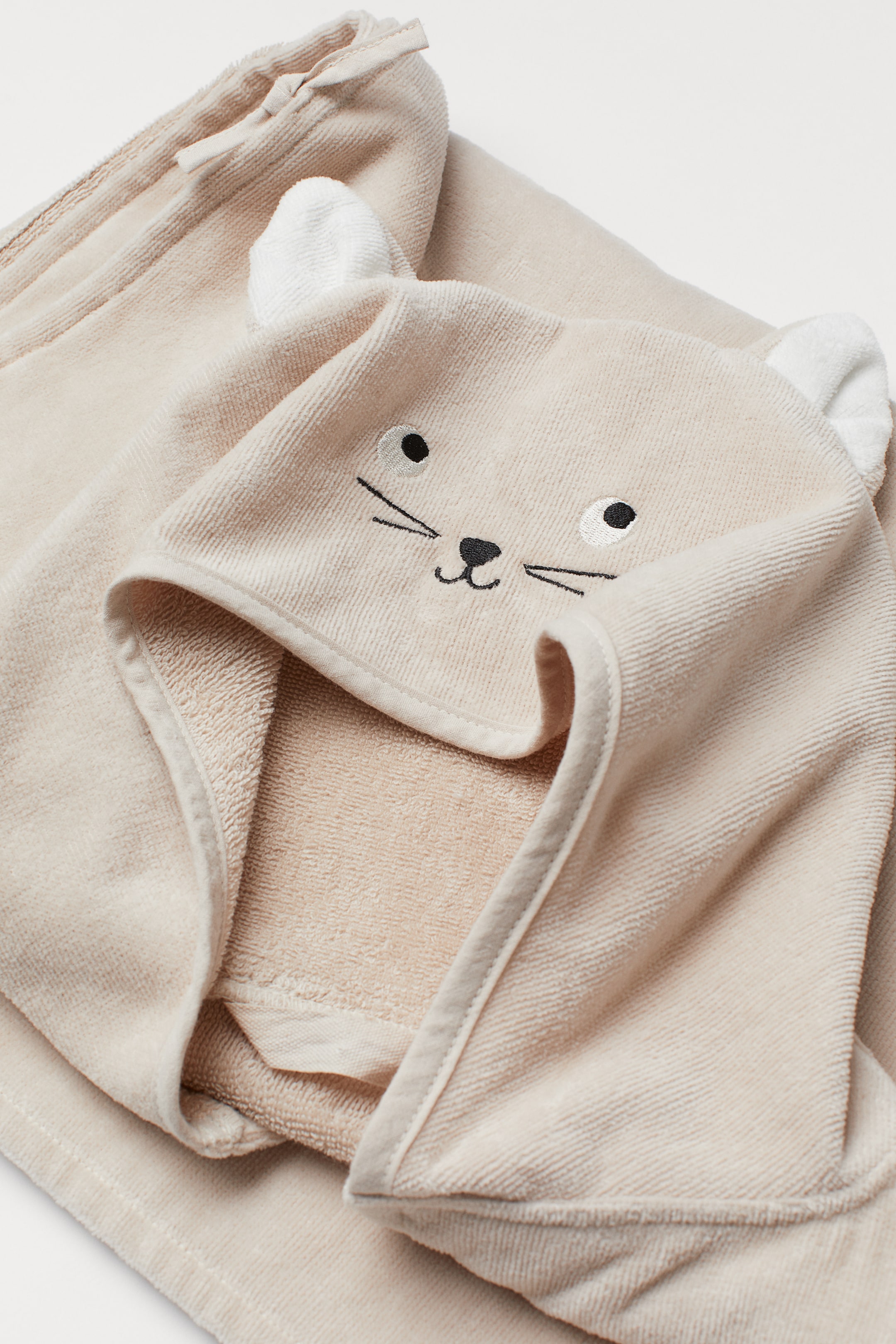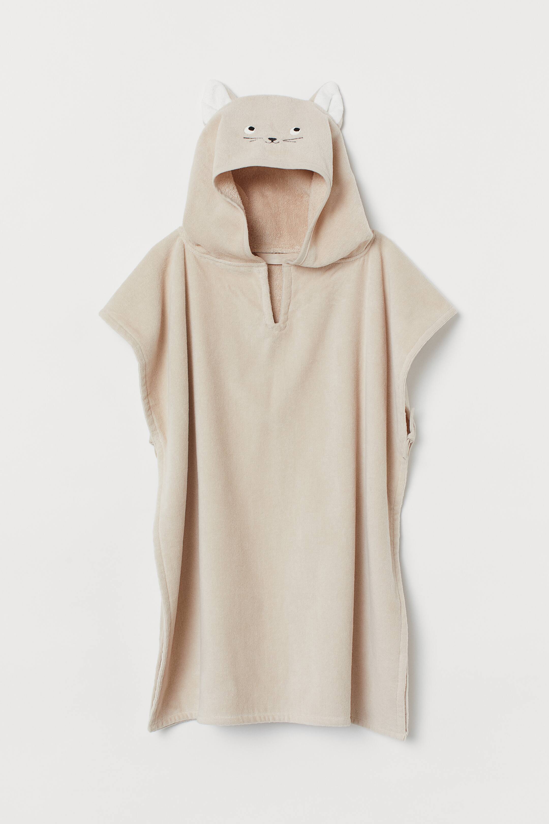 Badeponcho aus weichem Baumwollfrottee. Modell mit Stickdetails und Applikationen auf der Kapuze und seitlichen Bindebändern.