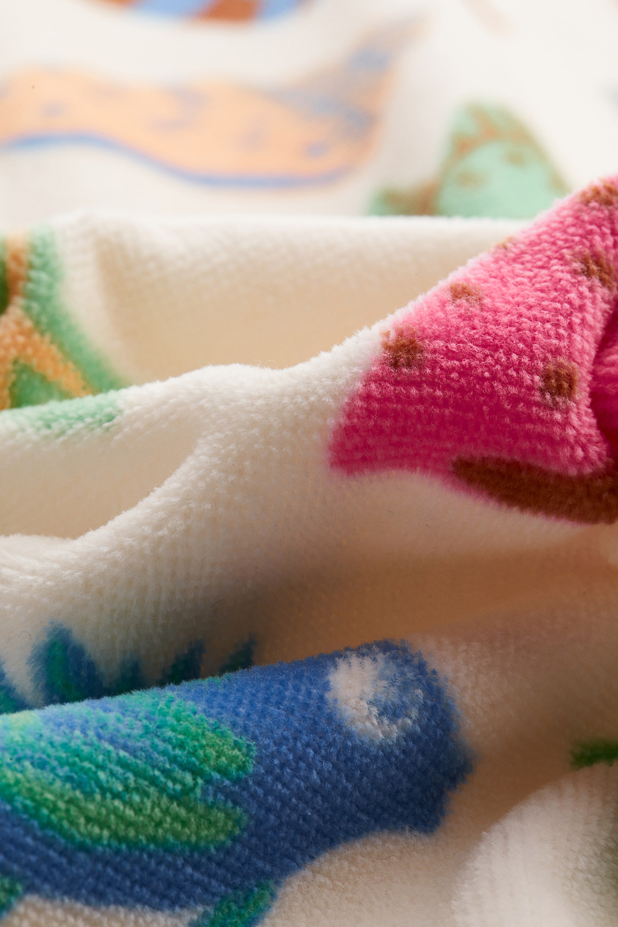 Badetuch aus weicher Baumwolle. Vorderseite aus Velours mit Printmotiv und Rückseite aus Frottee. Mit Aufhänger an den kurzen Seiten.