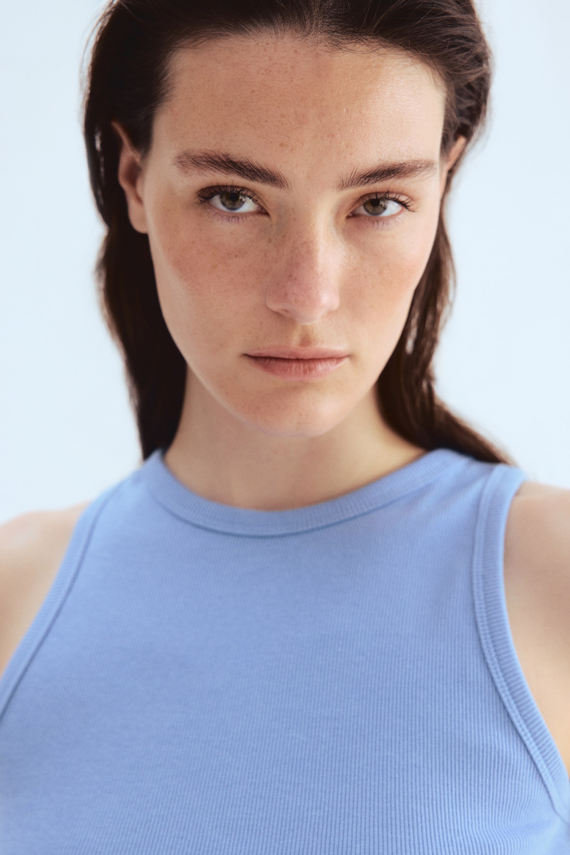Kurzes figurnahes Tanktop aus geripptem Baumwolljersey mit schmalen Einfassungen an Halsausschnitt und Armöffnungen.