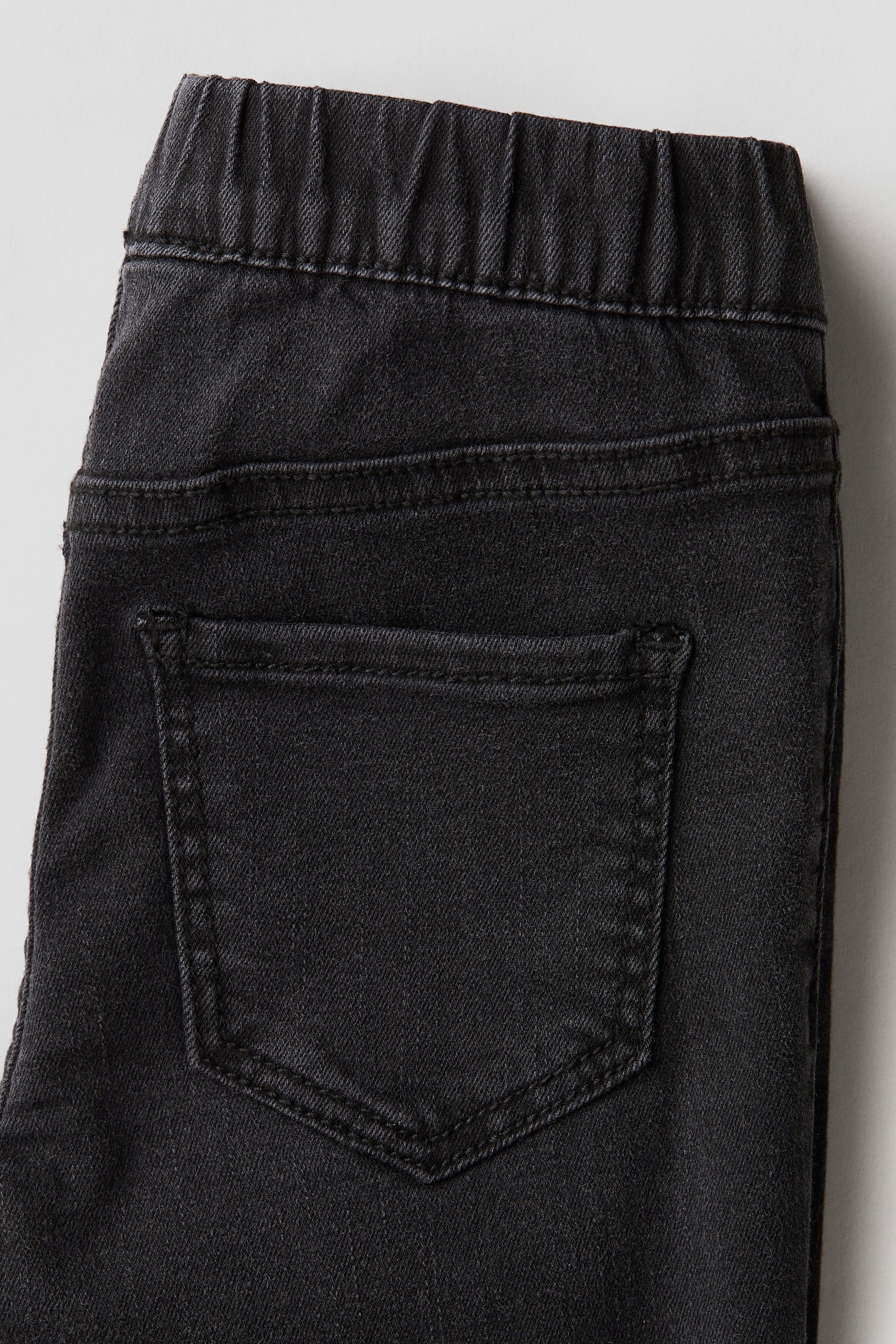 Jeggings aus gewaschenem, stretchigem Denim mit Gummizug im Bund, Ziertaschen vorn und echten Taschen hinten. Vorn ein angedeuteter Hosenschlitz.
