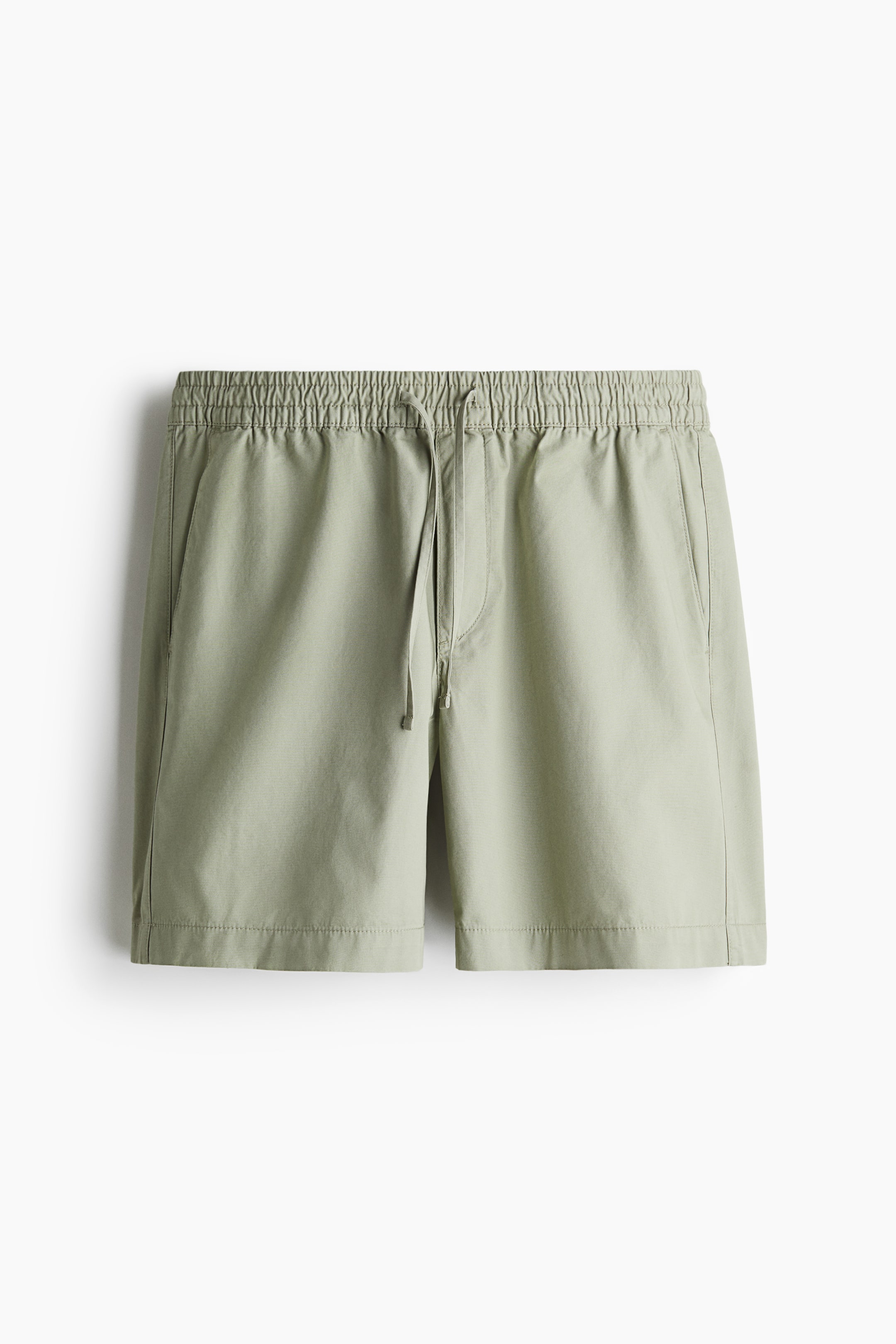 Shorts aus weichem Baumwollcanvas mit elastischem Kordelzugbund, Fake Fly, schrägen Seitentaschen und einer Leistentasche hinten. Normale Passform für den angenehmen Tragekomfort und die klassische Silhouette.