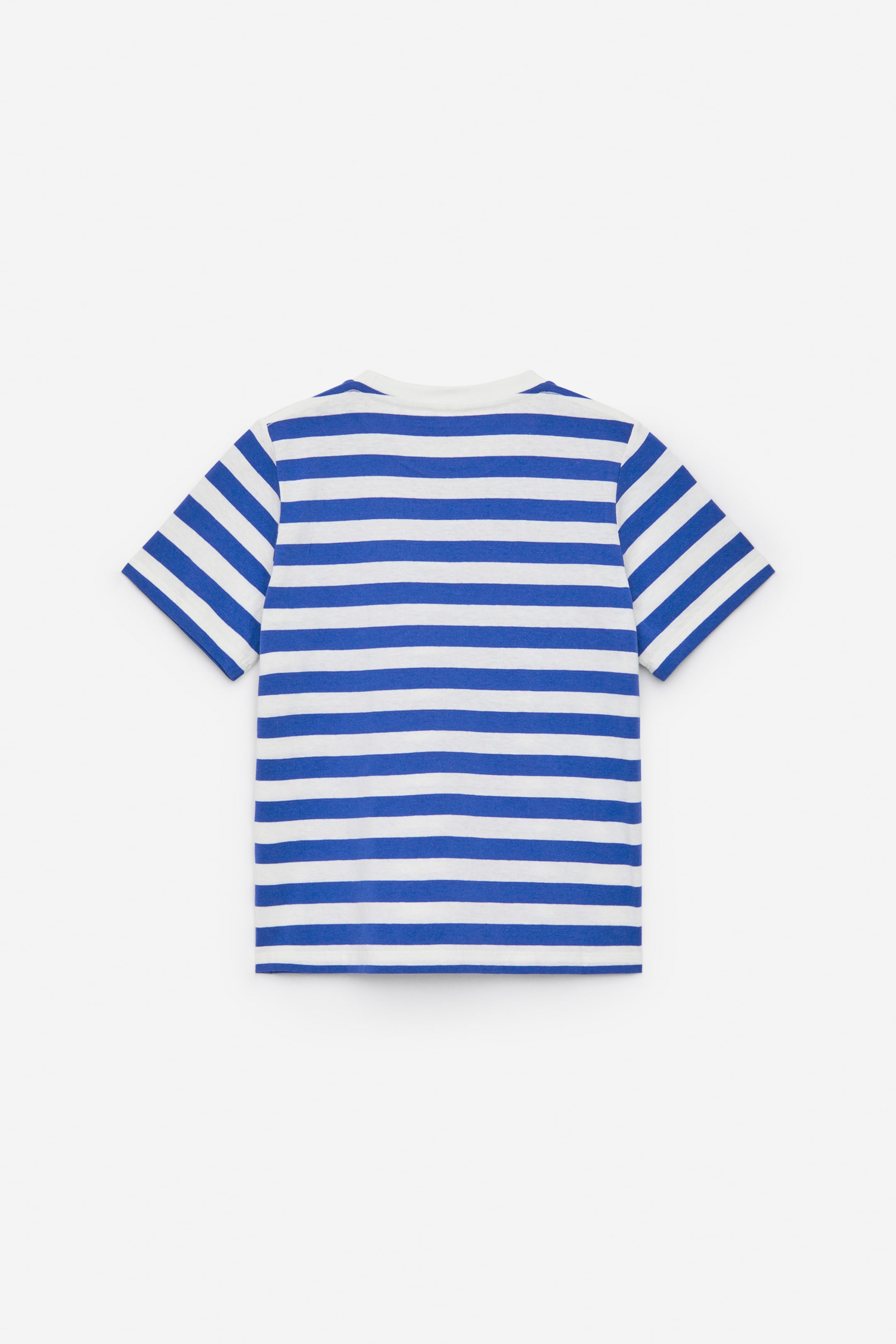 Kastiges T-Shirt aus weichem Baumwolljersey. Es weist ein garngefärbtes Streifenmuster und einen gerippten Rundhalsausschnitt auf.