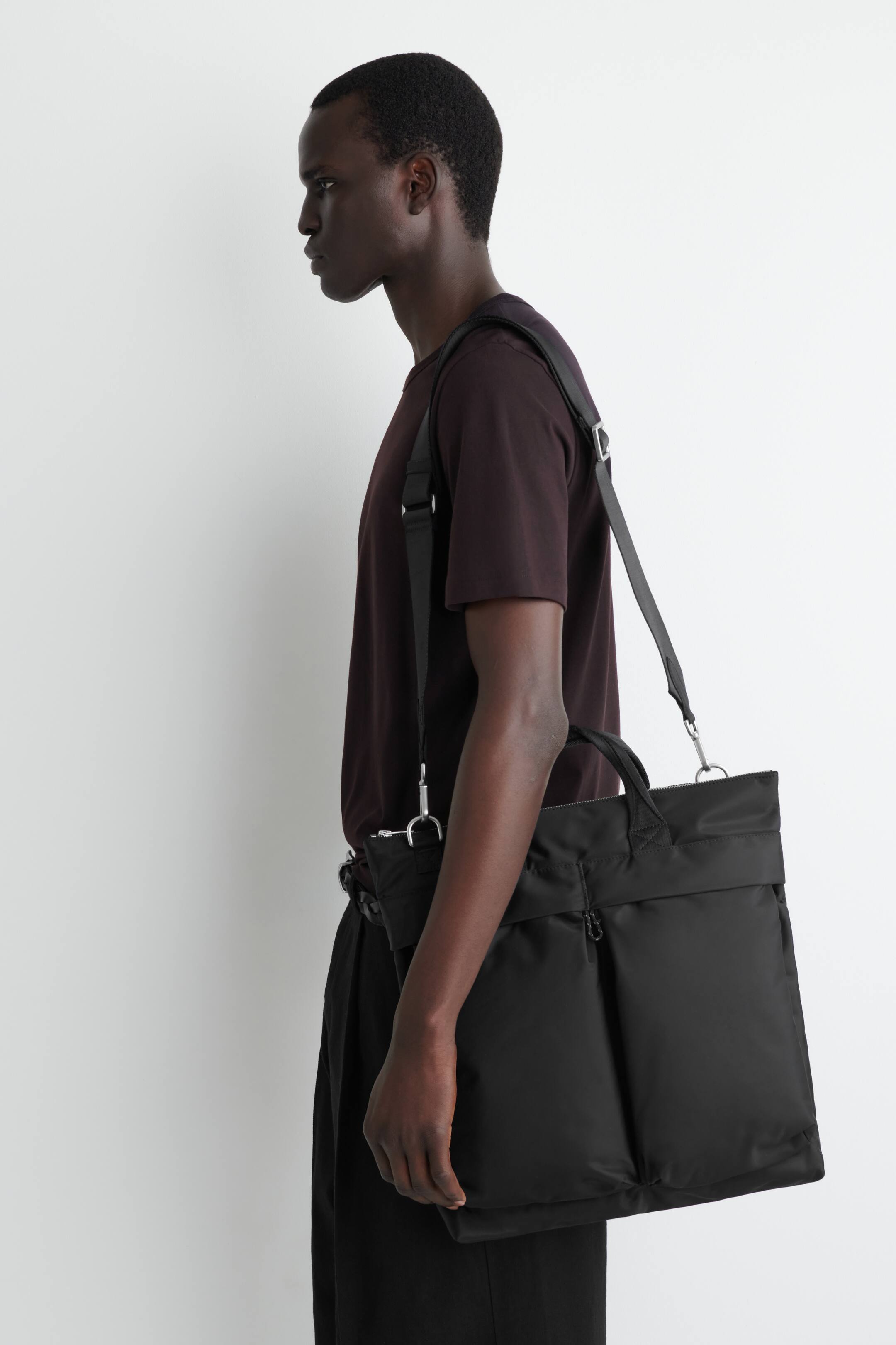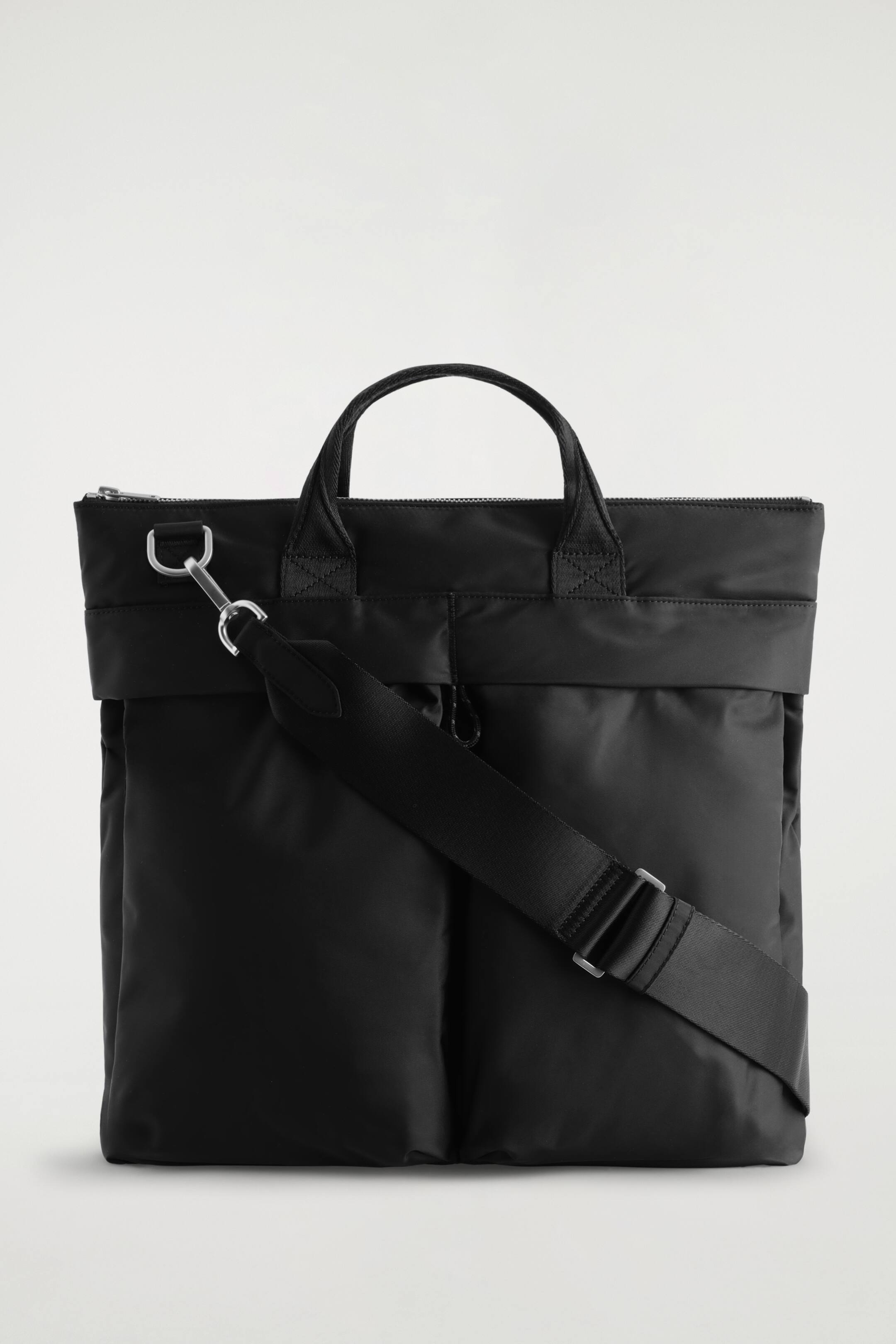 Raffiniert und dennoch praktisch: die Transit Tasche ist wie gemacht für ein bewegtes Leben. Sie besteht aus strapazierfähigem, recyceltem Nylon und ist mit zahlreichen funktionalen Details ausgestattet, von den übergroßen Taschen und den beiden oberen Griffen bis hin zum abnehmbaren Schultergurt. Reißverschluss Recyceltes Polyamid ist Polyamid, das aus Textilresten aus der Produktion hergestellt wird Obermaterial, Riemen und Futter: 100 % recyceltes Polyamid (recyceltes Nylon). Polsterung: 100 % recycelter Polyester. Details ausgenommen Höhe = 39 cm, Breite = 36 cm, Tiefe = 6 cm
