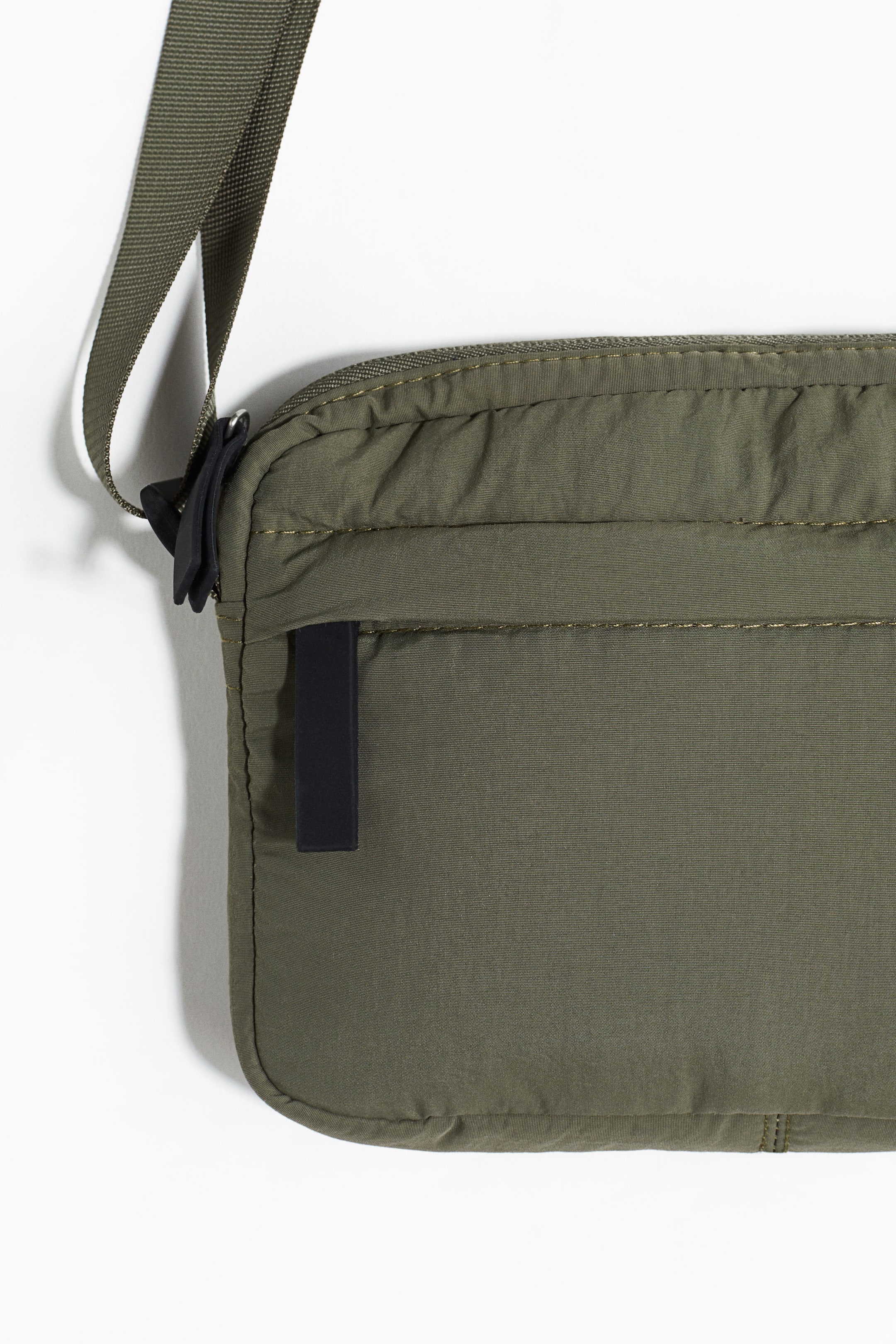 Crossbody-Tasche aus Nylon mit Reissverschluss und einem verstellbarem Schulterriemen mit einer Schiebeschnalle aus Metall. Ein Aussenfach mit Reissverschluss und zwei offene Innenfächer. Gefüttert.