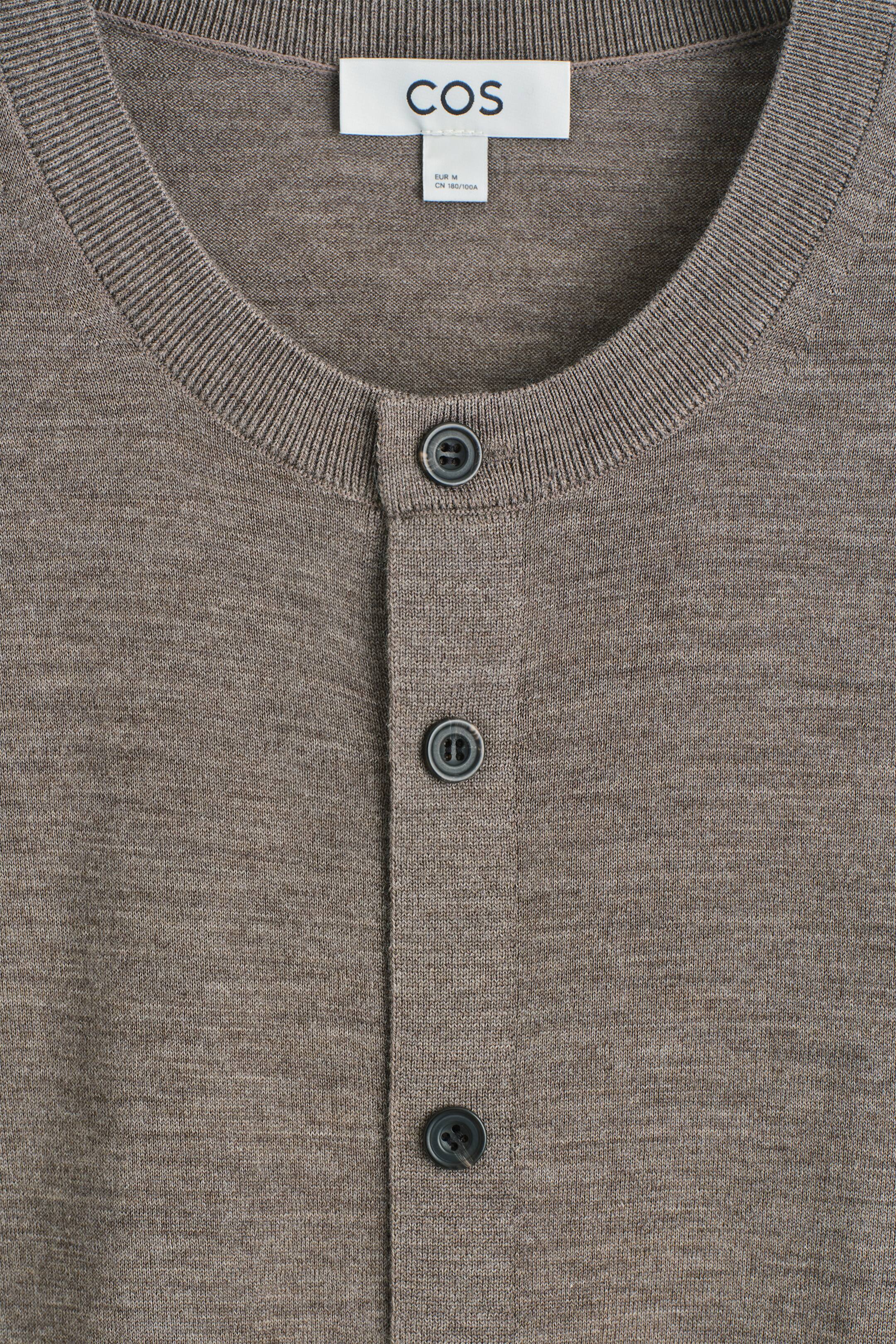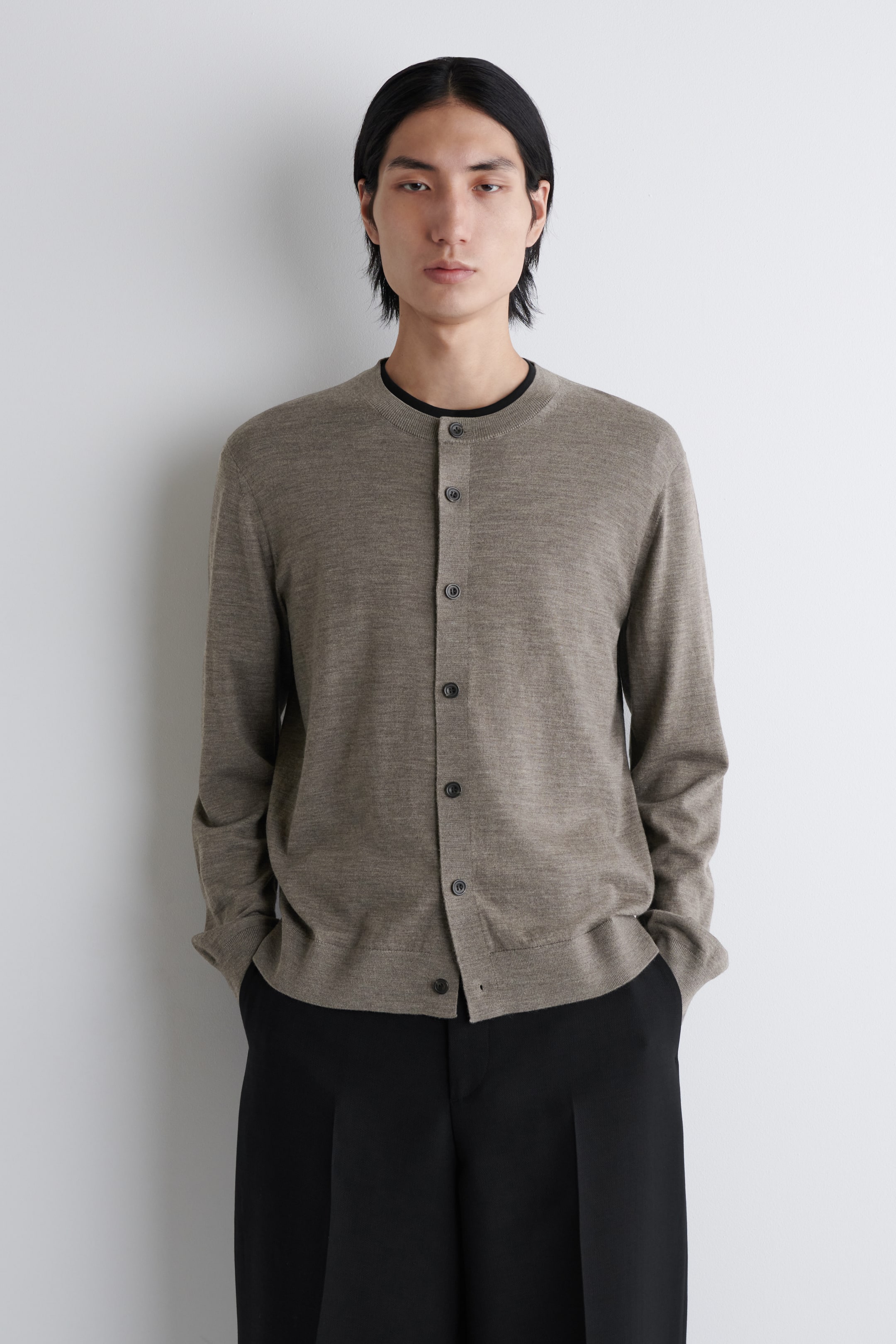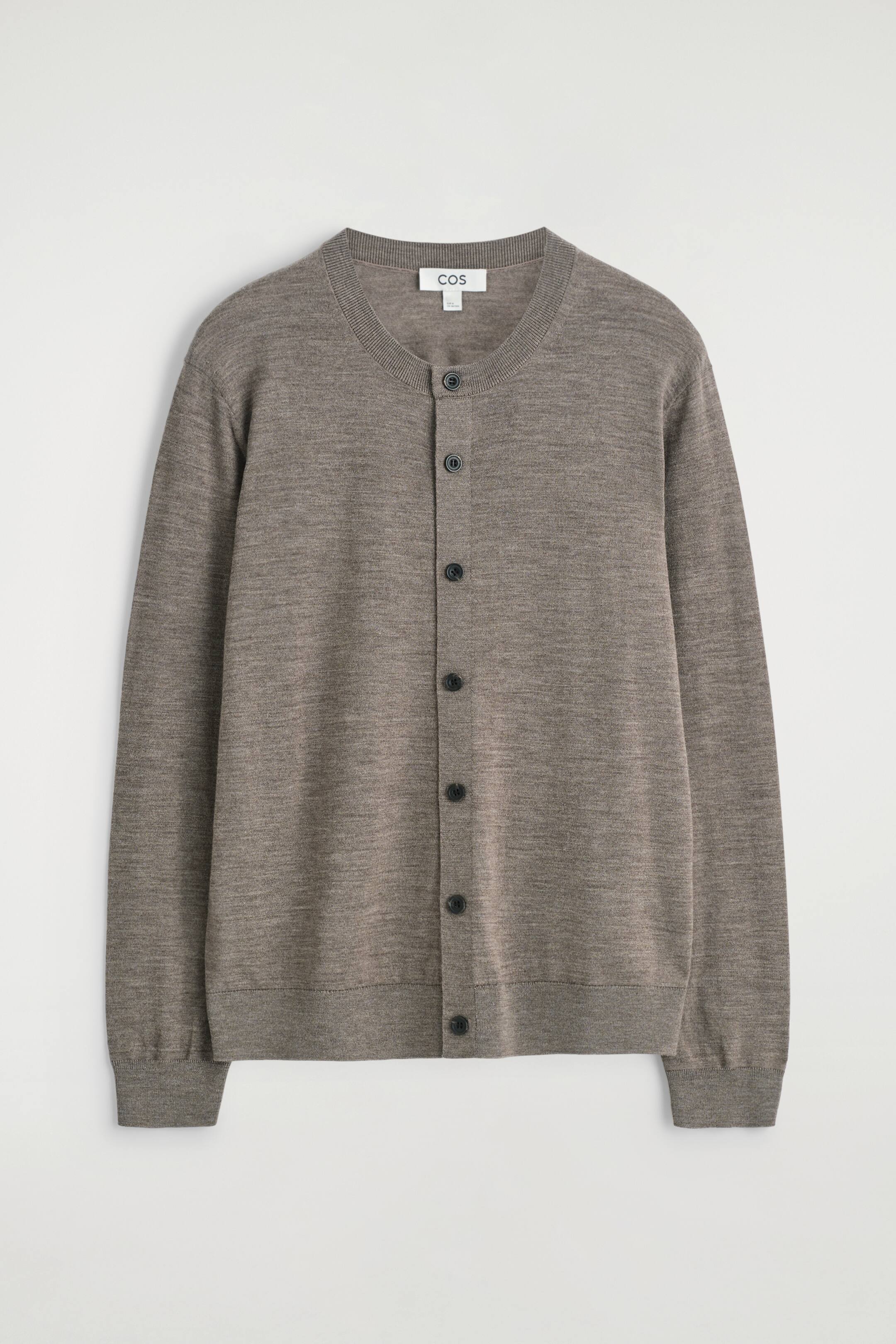 Dieser schlichte und doch raffinierte Cardigan ist ein zentraler Bestandteil der COS-Garderobe. Das Modell in Grau-Beige besteht aus besonders weicher Merinowolle, die leicht genug für die Übergangsmonate ist. Rundhalsausschnitt, Bündchen und Saum sind gerippt. Normale Passform Knopfleiste Dieser Artikel enthält Responsible Wool Standard TE-00047206 (RWS) Wollfasern aus Betrieben, die nach Tierschutz- und Landwirtschaftsanforderungen zertifiziert sind Obermaterial: 100 % Merinowolle. Details ausgenommen/Maschinenwäsche Rückenlänge in Größe S = 63 cm/Das Model trägt Größe S