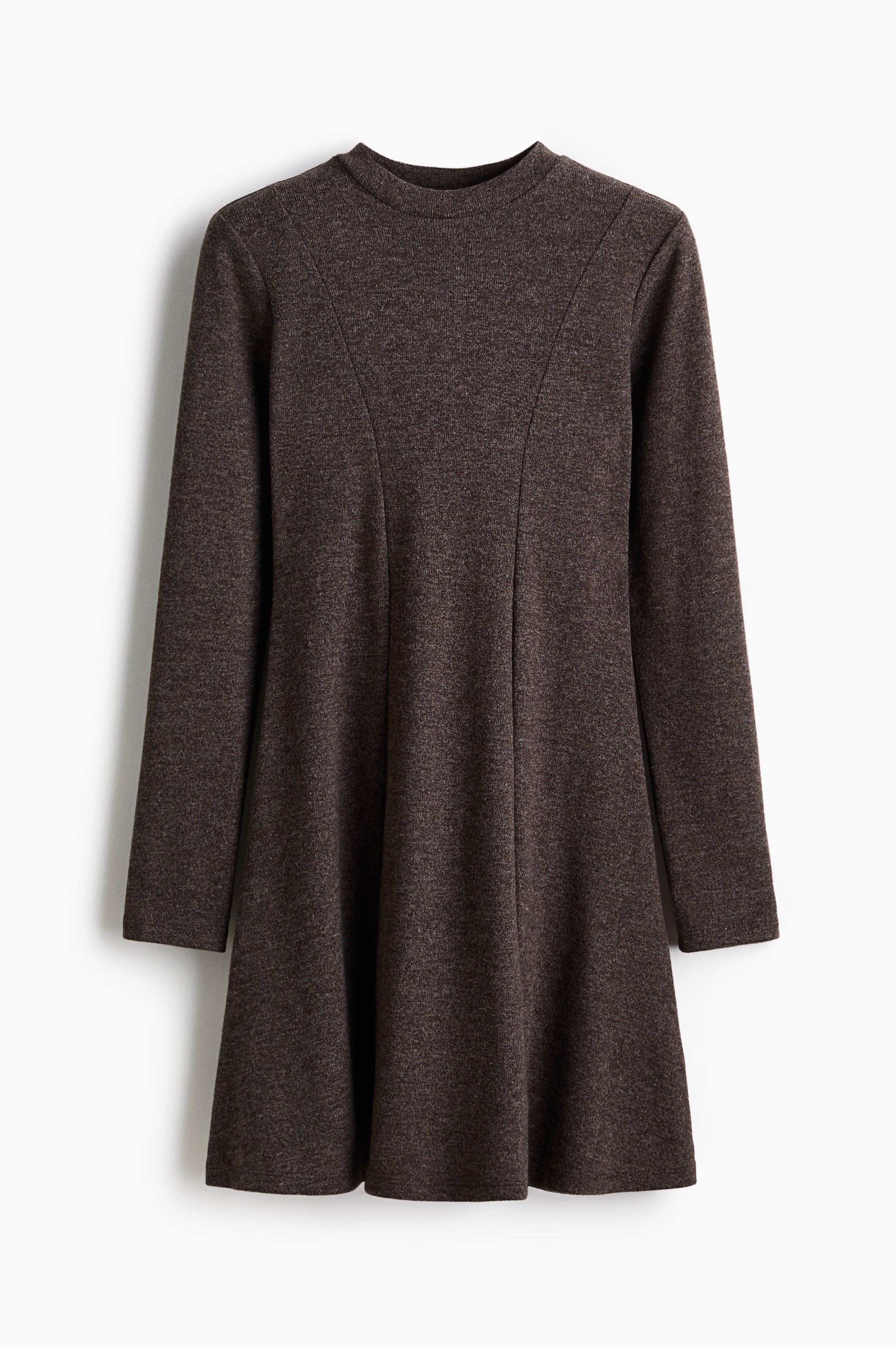 Langärmliges Minikleid aus weichem Feinstrick mit Rundausschnitt, sichtbaren Nähte vorne, formenden Abnähern im Rücken und einem ausgestellten Saum.