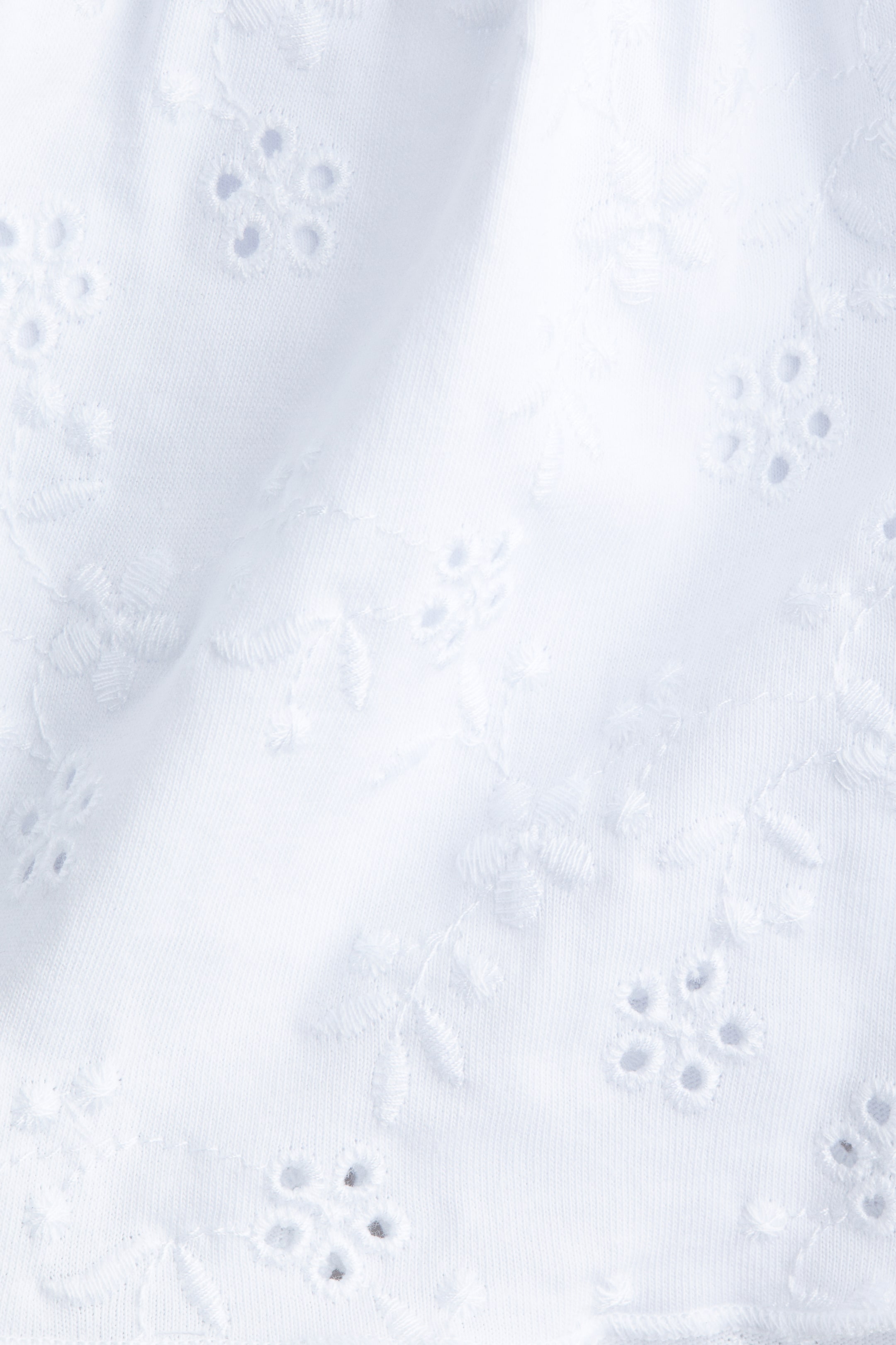 Jupe aus weichem Baumwolljersey mit Broderie Anglaise und breitem, angesetztem Bund mit verdecktem Gummizug.
