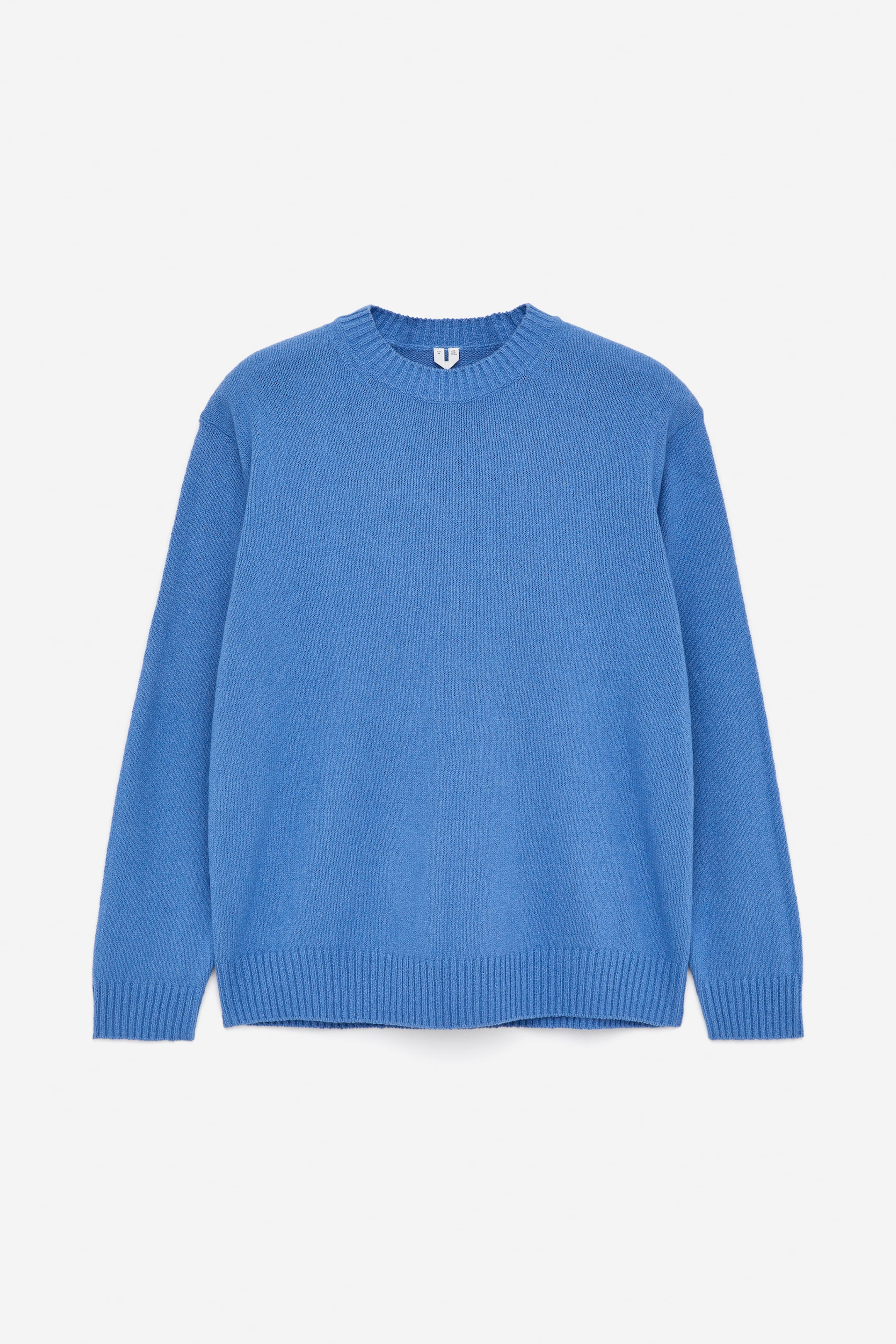 Rundhalspullover mit leicht überschnittenen Schultern und gerippten Abschlüssen an Bündchen, Hals und Saum. Hergestellt aus einer luxuriösen Mischung aus Baumwolle, recyceltem Polyester, Leinen und Maulbeerseide.