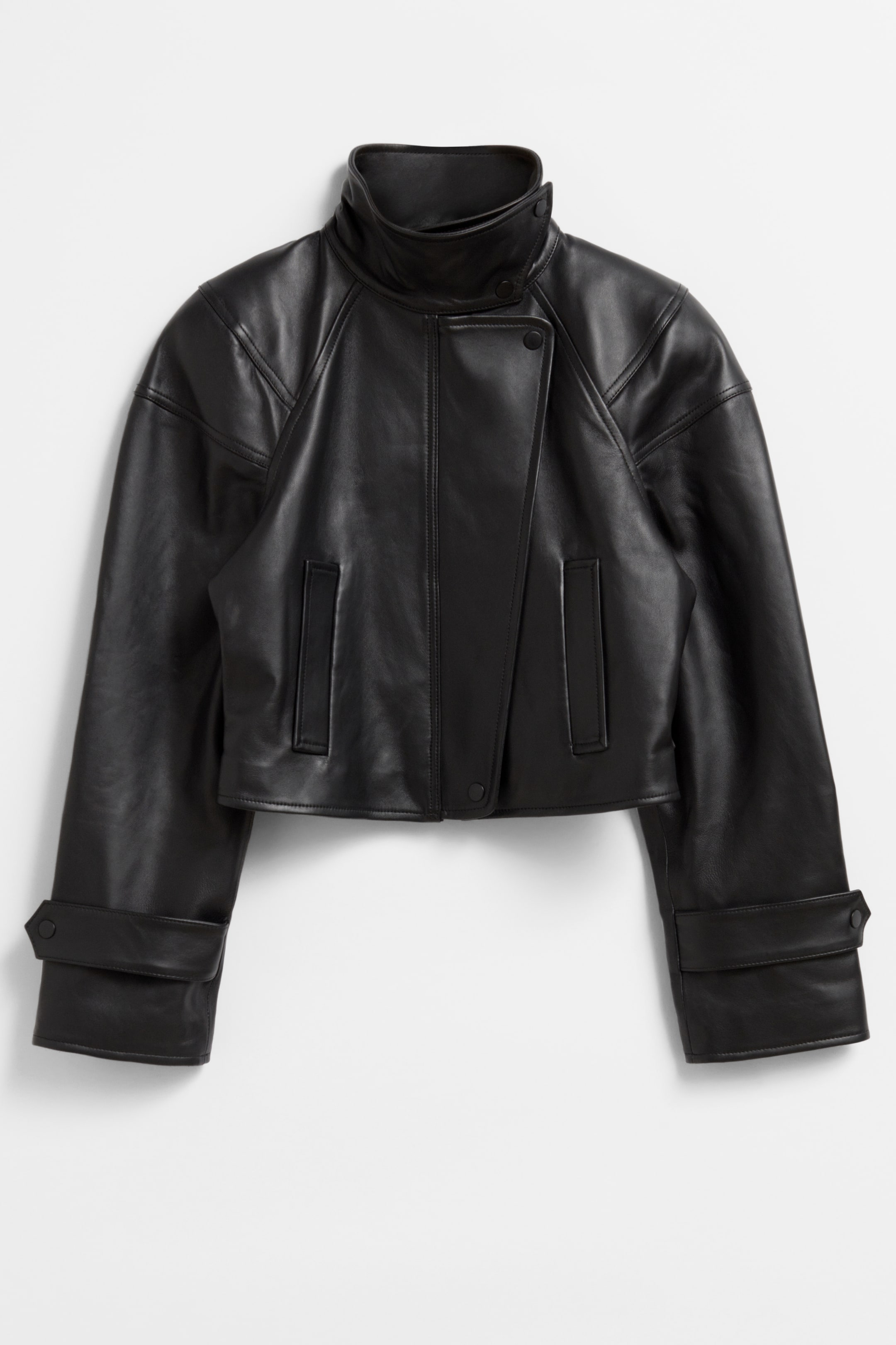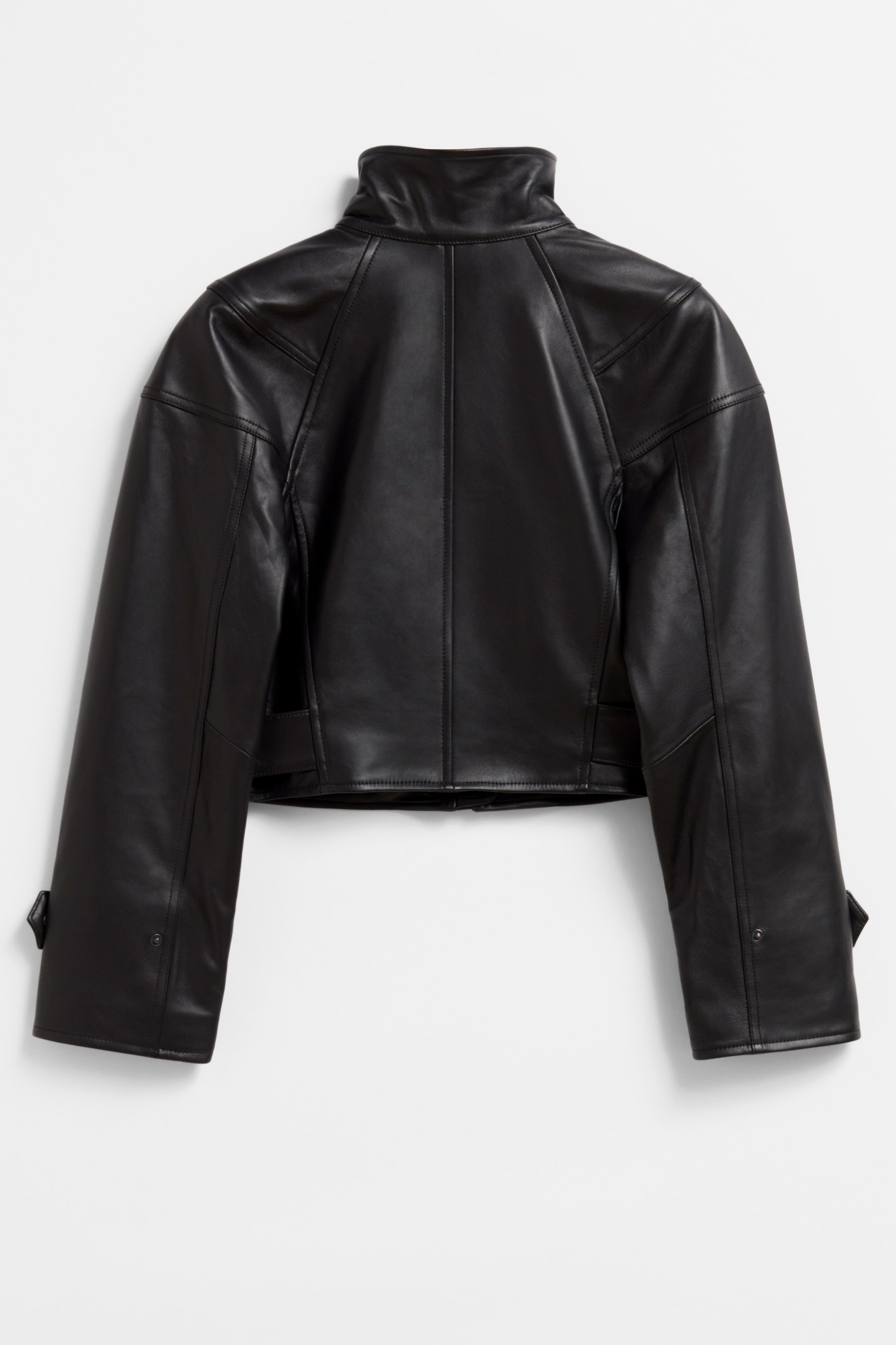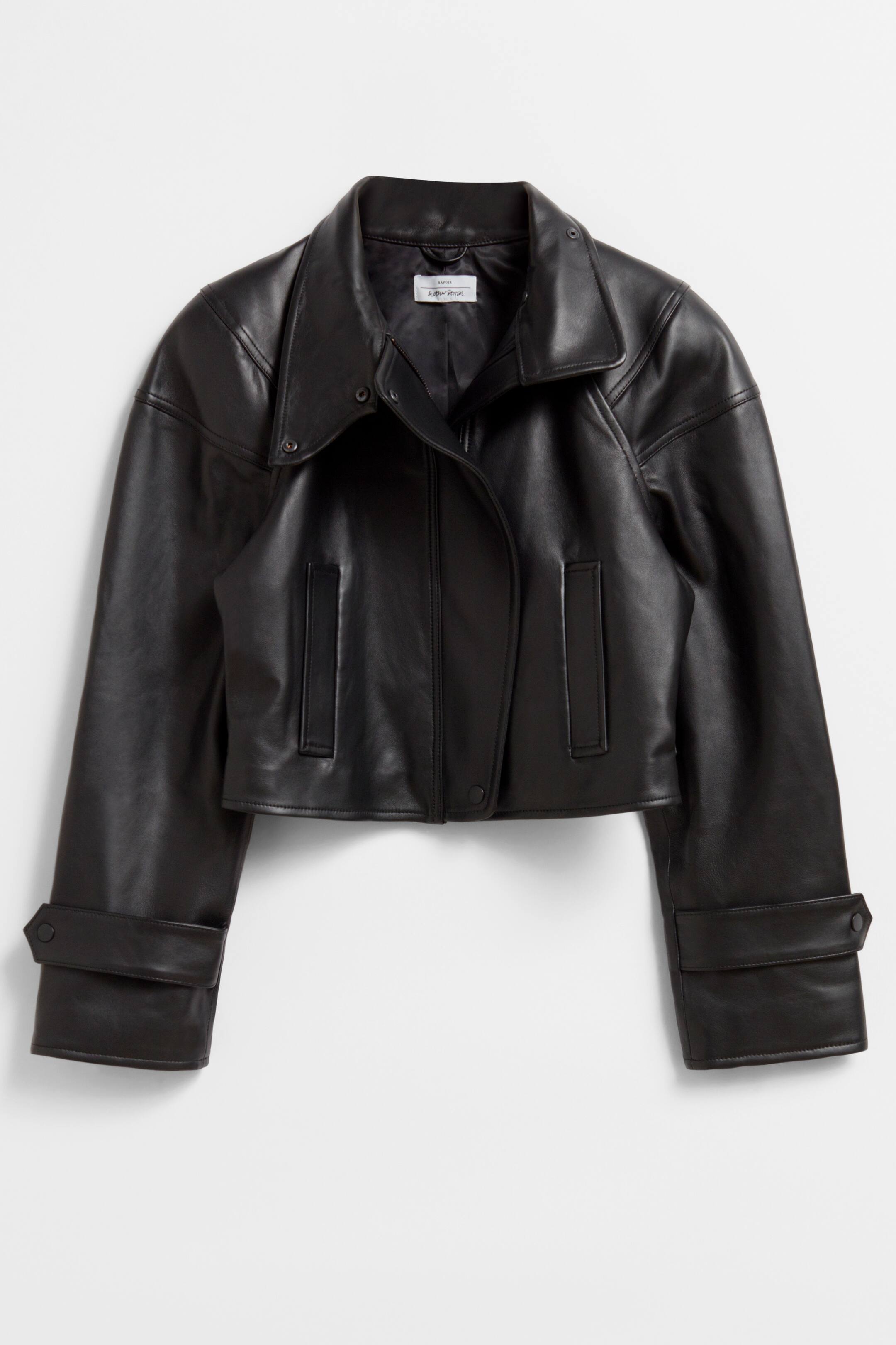 Verkürzte Lederjacke mit glatter Oberfläche, abgerundeten Schultern und zwei Eingrifftaschen. Reißverschluss und drei Druckknöpfe Laschen mit Druckknöpfen an den Manschetten Gepolsterte Schultern Gefüttert Länge der Jacke: 45 cm (EU 36 / UK 8 / US 4) Savoir ist der Name unserer limitierten Kollektion, mit der wir das Know-how unserer Designateliers feiern. In jeder Saison präsentieren wir neue Statement-Styles, die in der Modewelt richtungsweisend sind.