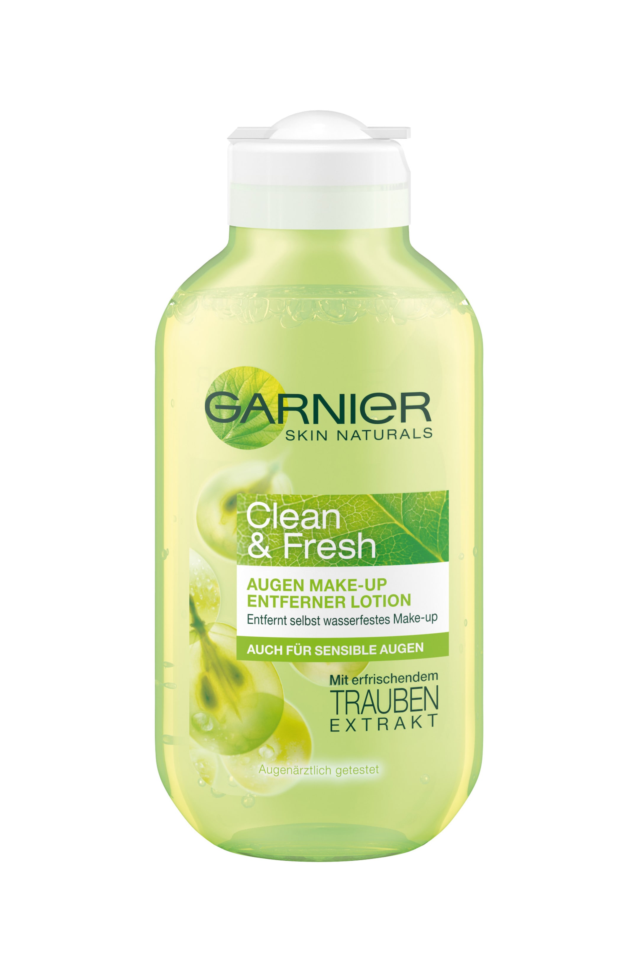 Sensible Augen brauchen einen besonders schonenden Make-up-Entferner. Die Garnier Fresh & Clean Augen Make-up Entferner Lotion befreit die empfindliche Augenpartie gründlich von Mascara, Make-up und Co. Selbst wasserfestes Make-up lässt sich einfach entfernen ohne starkes Rubbeln und Reiben. Die sanft-reinigende Formel mit erfrischendem Trauben-Extrakt belebt die Haut und hinterlässt ein angenehmes, frisches Gefühl. Aus der Flasche direkt aufs Wattepad – das ist die Garnier Fresh & Clean Augen Make-up Entferner Lotion für frische und perfekt abgeschminkte, empfindliche Augen.