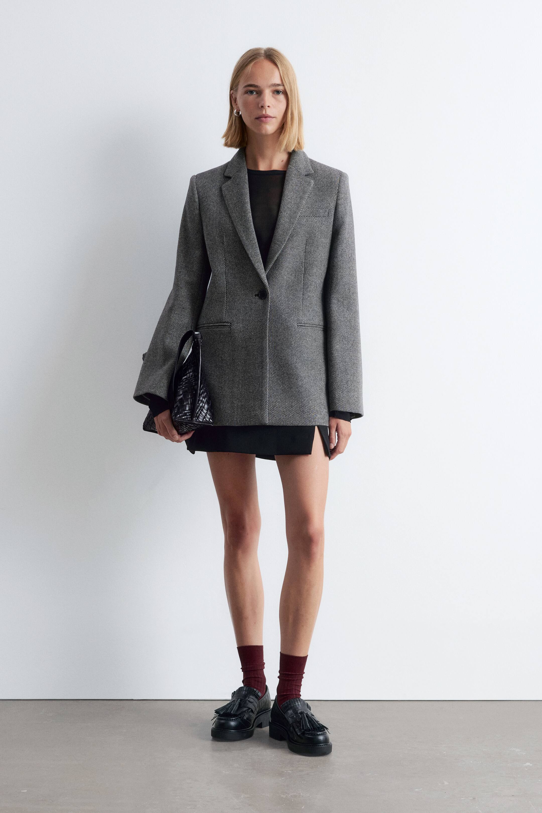 Einreihiger Blazer aus einer Wollmischung mit schmalem Gürtel. • Gefüttert • V-Ausschnitt • Leistentasche an der Brust • Zwei Leistentaschen • 71 % RWS-Wolle (TE-00047206)• Länge des Blazers:74,5 cm (EU 36/UK 8/US 4)