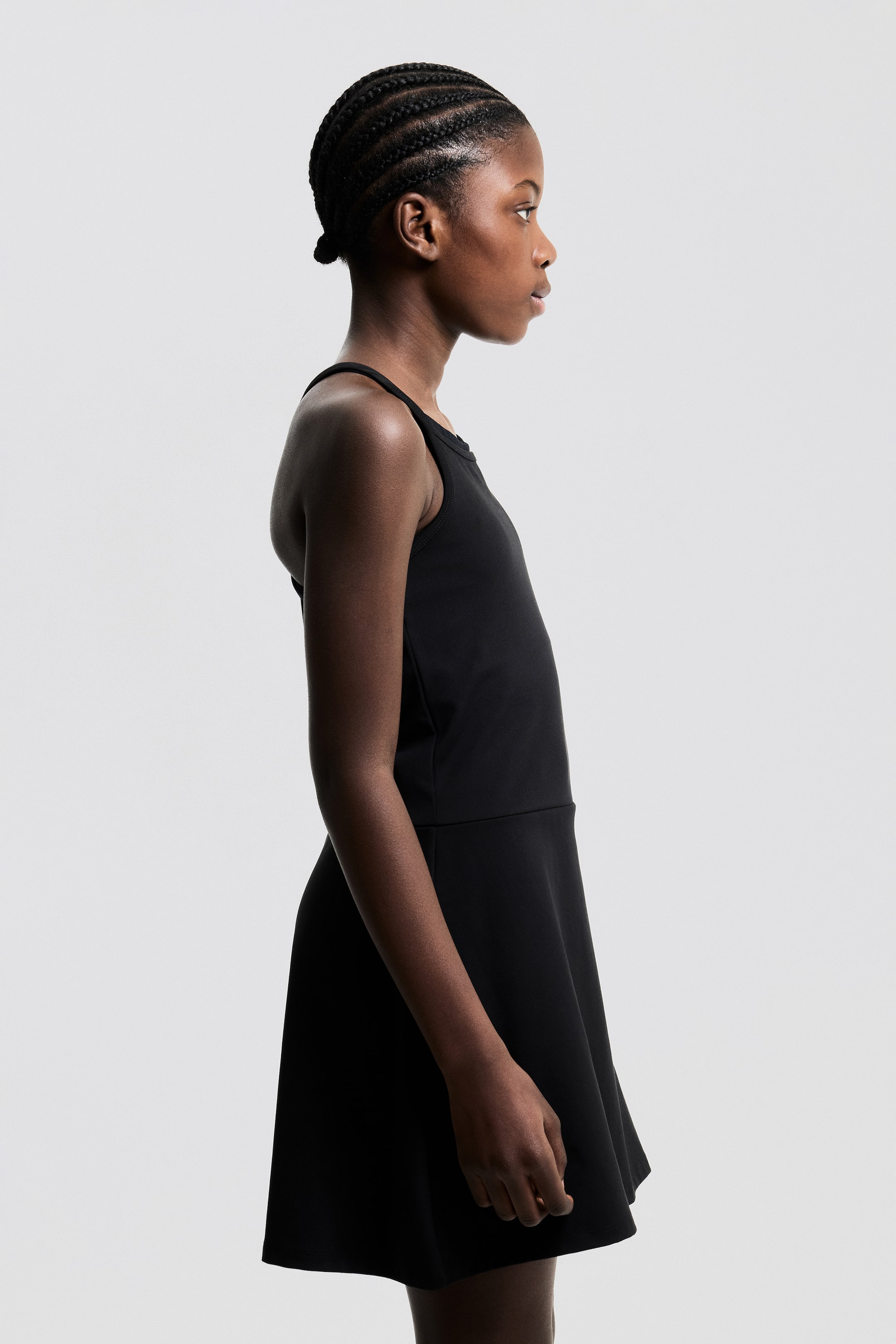 Sportkleid aus einem Funktionsmaterial mit DryMove™, das Feuchtigkeit von der Haut ableitet, damit du angenehm trocken bleibst, wenn du in Bewegung bist. Schmale, im Rücken zusammenlaufende Träger und ein ausgestelltes Rockteil. Darunter eine Radlershorts aus Jersey mit einer offenen Beintasche. Gefüttert.