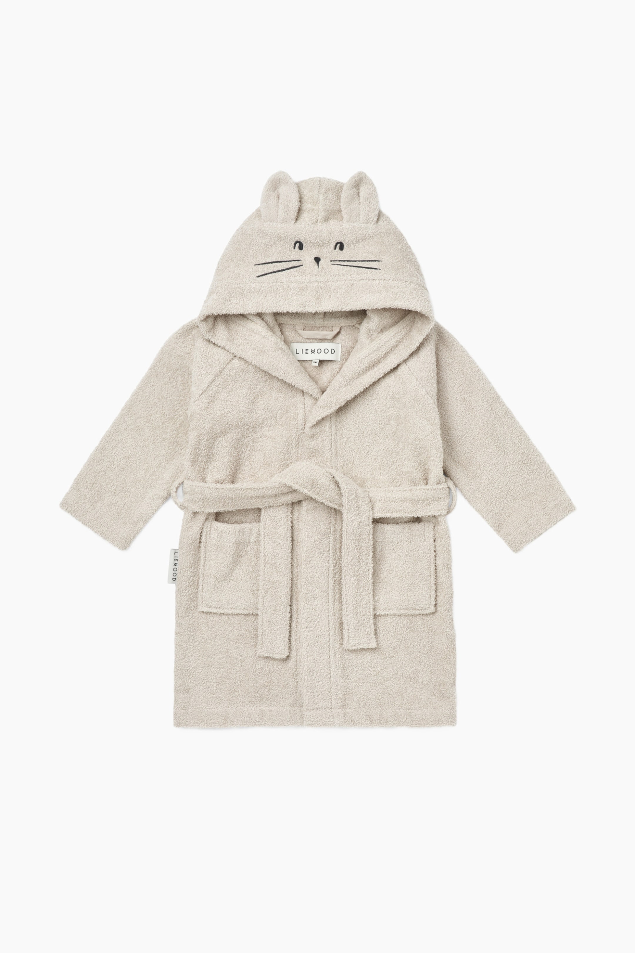 Kinderbademantel mit Ohren aus 100% Bio-Baumwollfrottee. Mit fester Kapuze mit Ohren und verspielter Stickerei, Taschen auf der Vorderseite und einem Bindegürtel für einen bequemen Sitz.