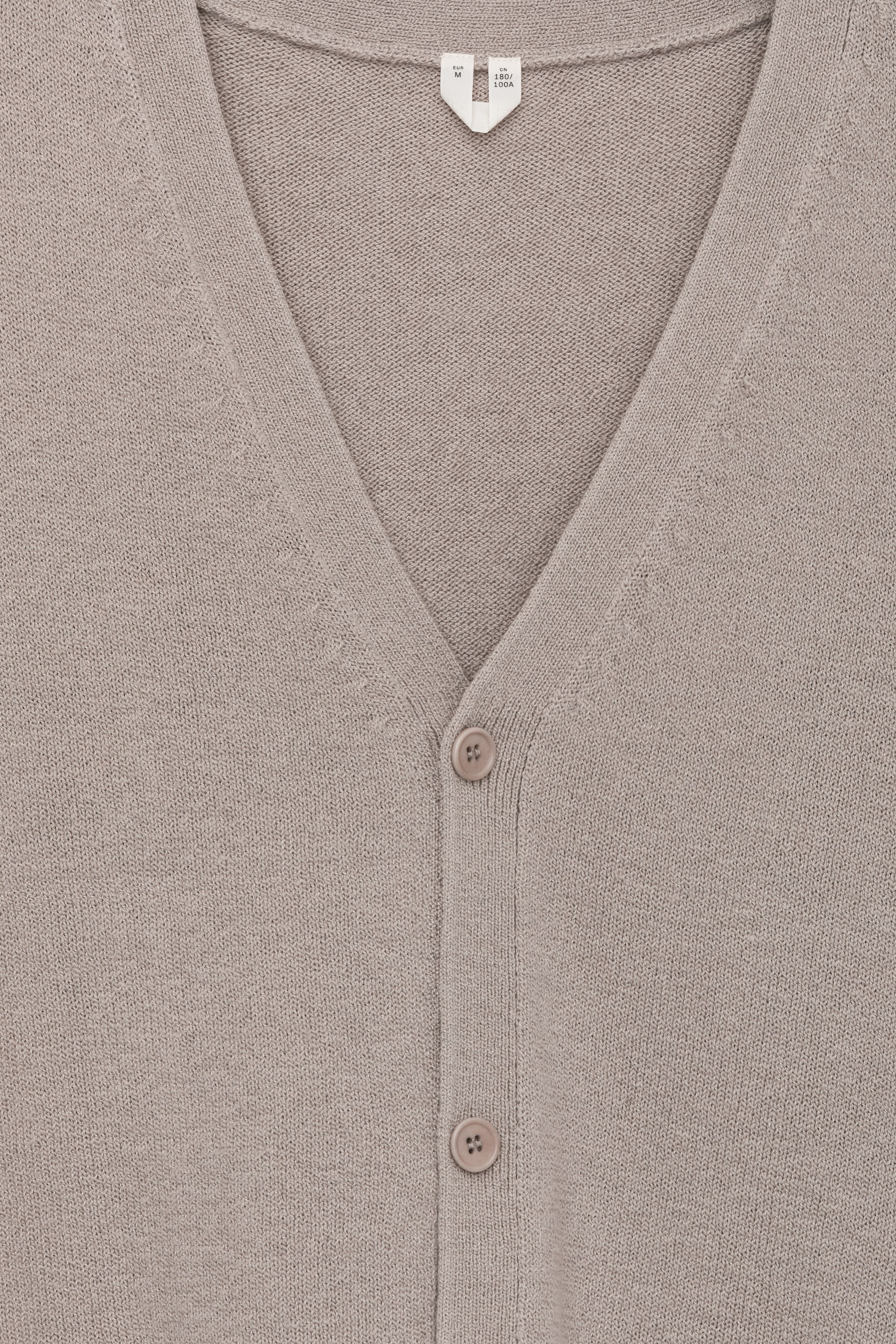 Leicht strukturierte Strickweste aus einer Mischung aus Wolle und Baumwolle. Ein Style mit V-Ausschnitt, Knopfleiste auf der Vorderseite und gerippten Abschlüssen.