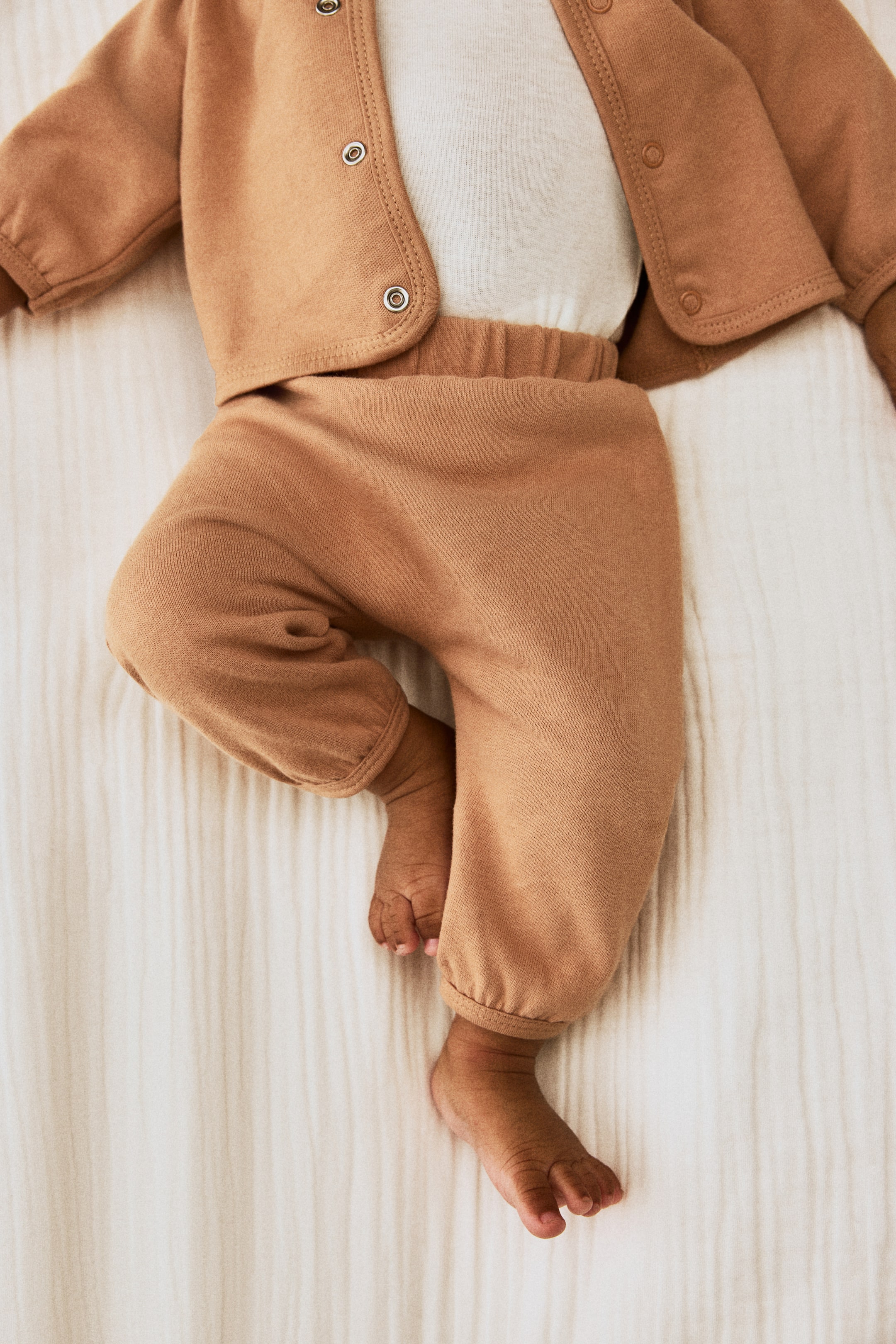 Set mit einem Cardigan und einer Hose aus weichem Baumwolljersey. Cardigan mit Rundausschnitt, Druckknöpfen vorn und langen Raglanärmeln mit schmalem Gummizug. Hose mit Gummizug an Bund und Beinabschlüssen. Supersoft Drop ist eine Kollektion von samtig weichen Essentials für Neugeborene, die der zarten Babyhaut schmeicheln. Alle Artikel dieser liebevoll entworfenen Kollektion bestehen aus unserem allerweichsten, fein angerauten Baumwolljersey und umhüllen das Baby wie eine wärmende Umarmung.